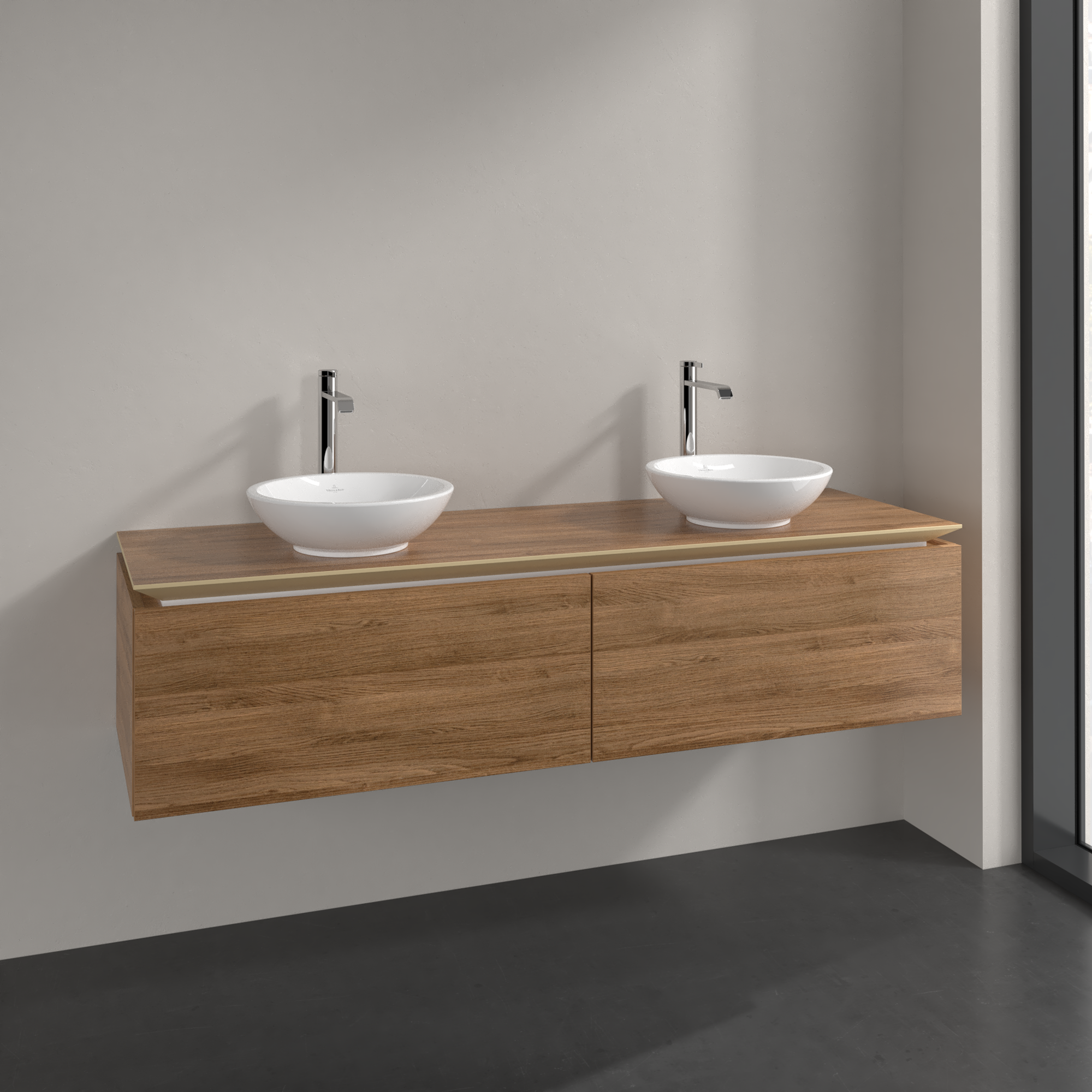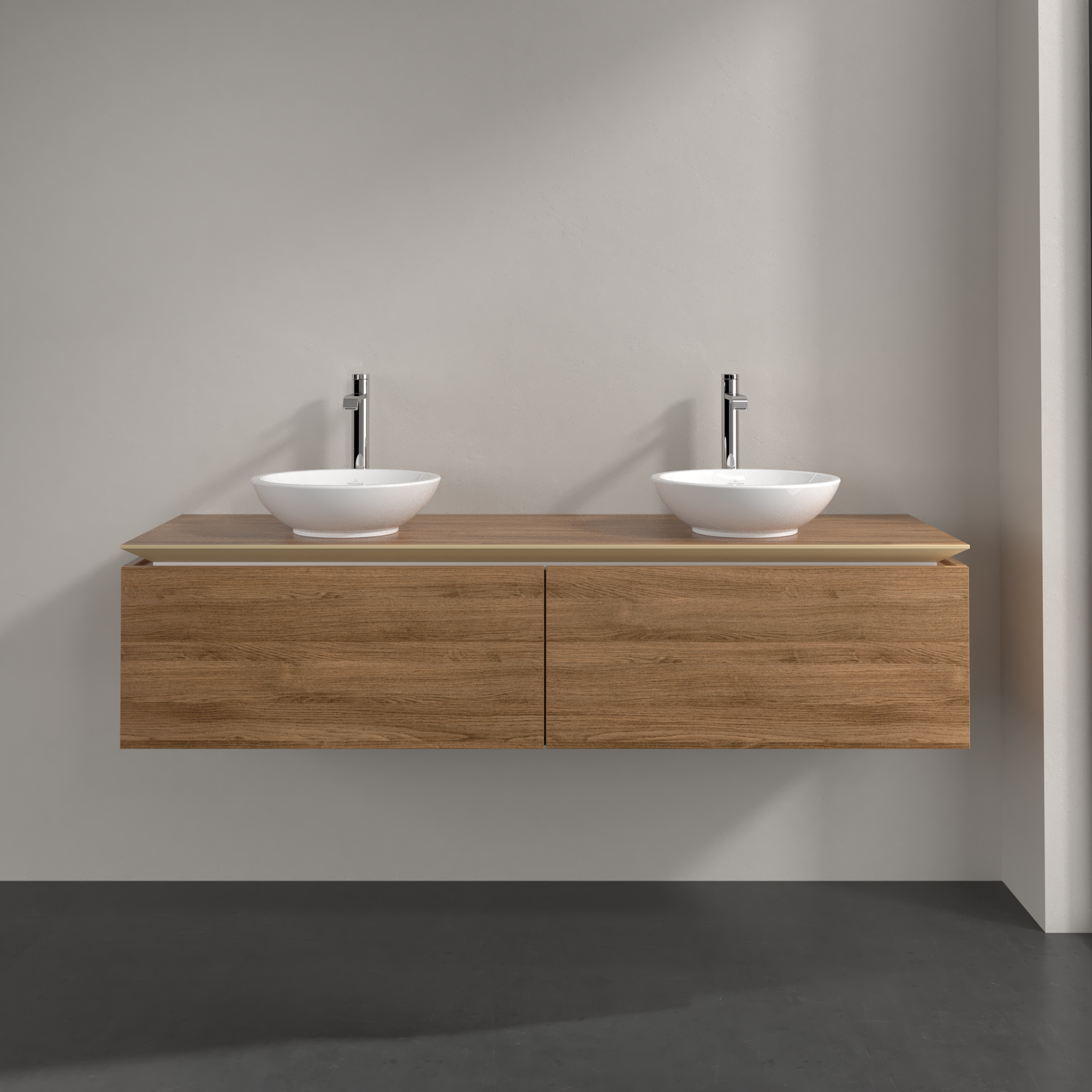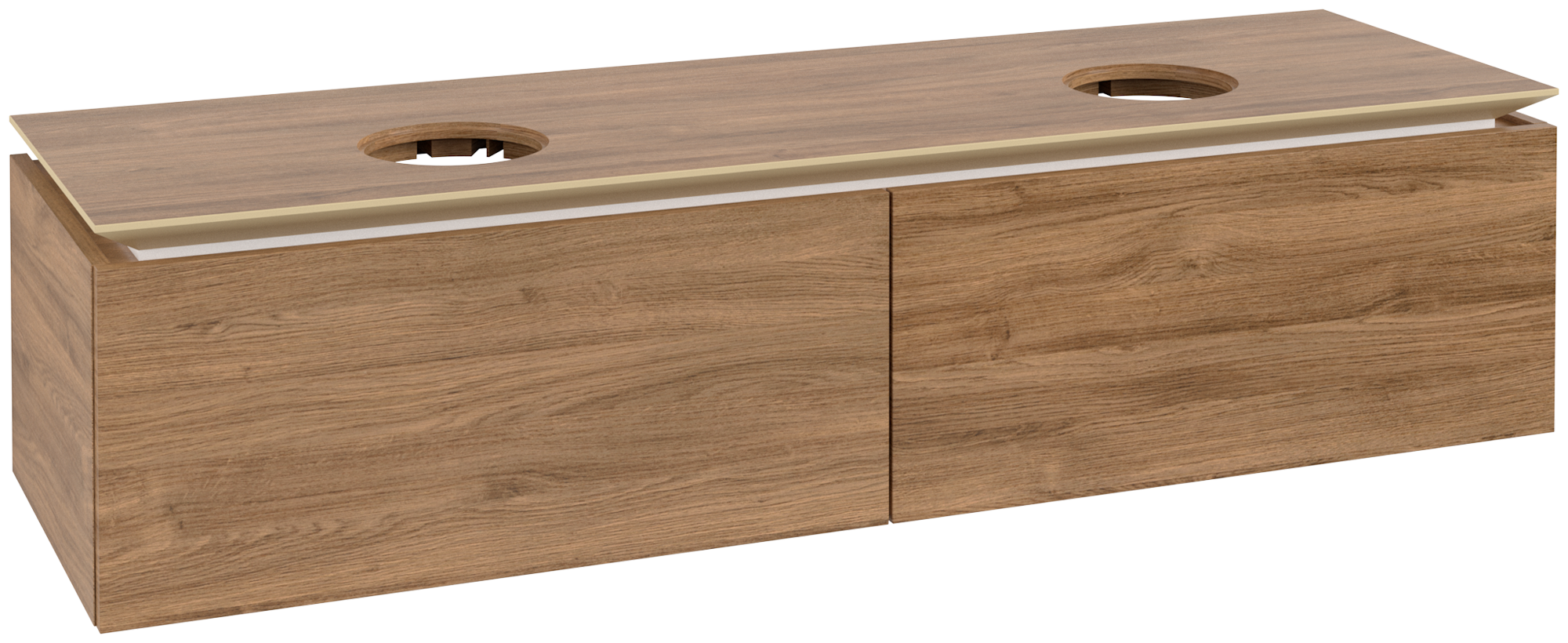 Legato Meuble sous plan, 2 tiroirs sur rails, 1600x380x500mm, Caisson: Oak Kansas, Façade: Oak Kansas