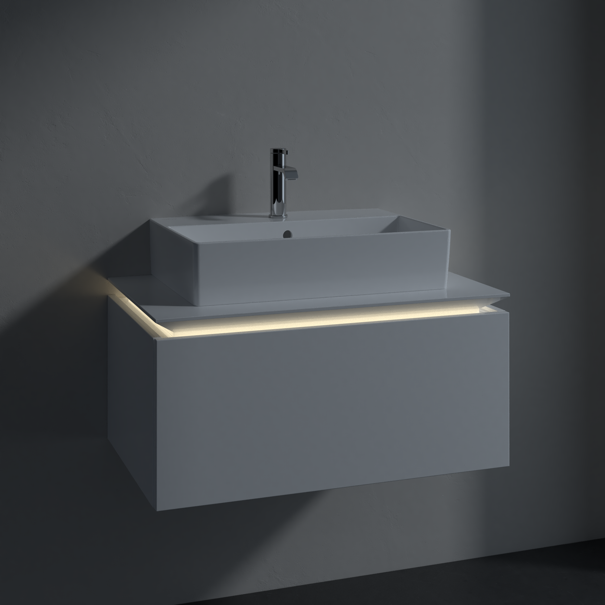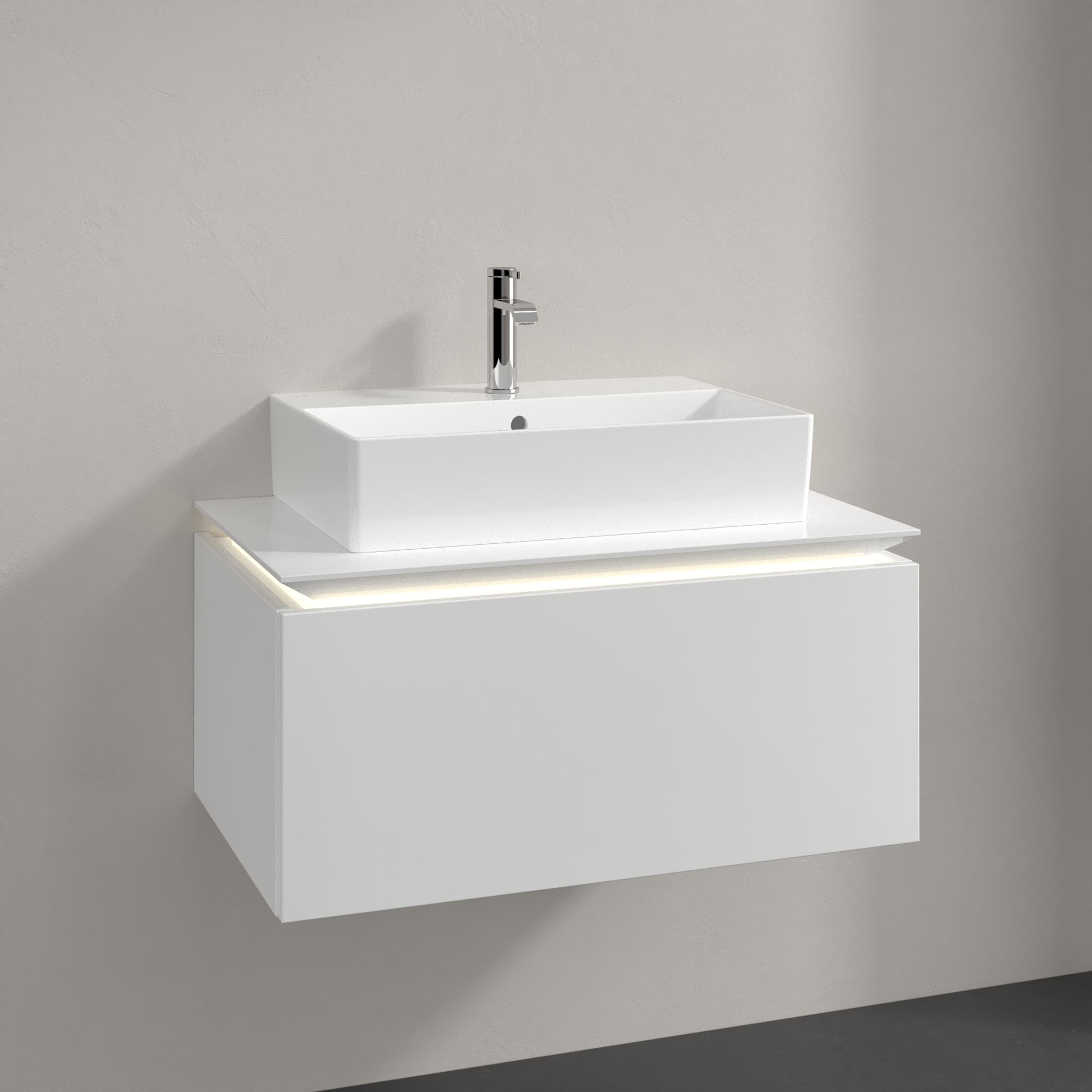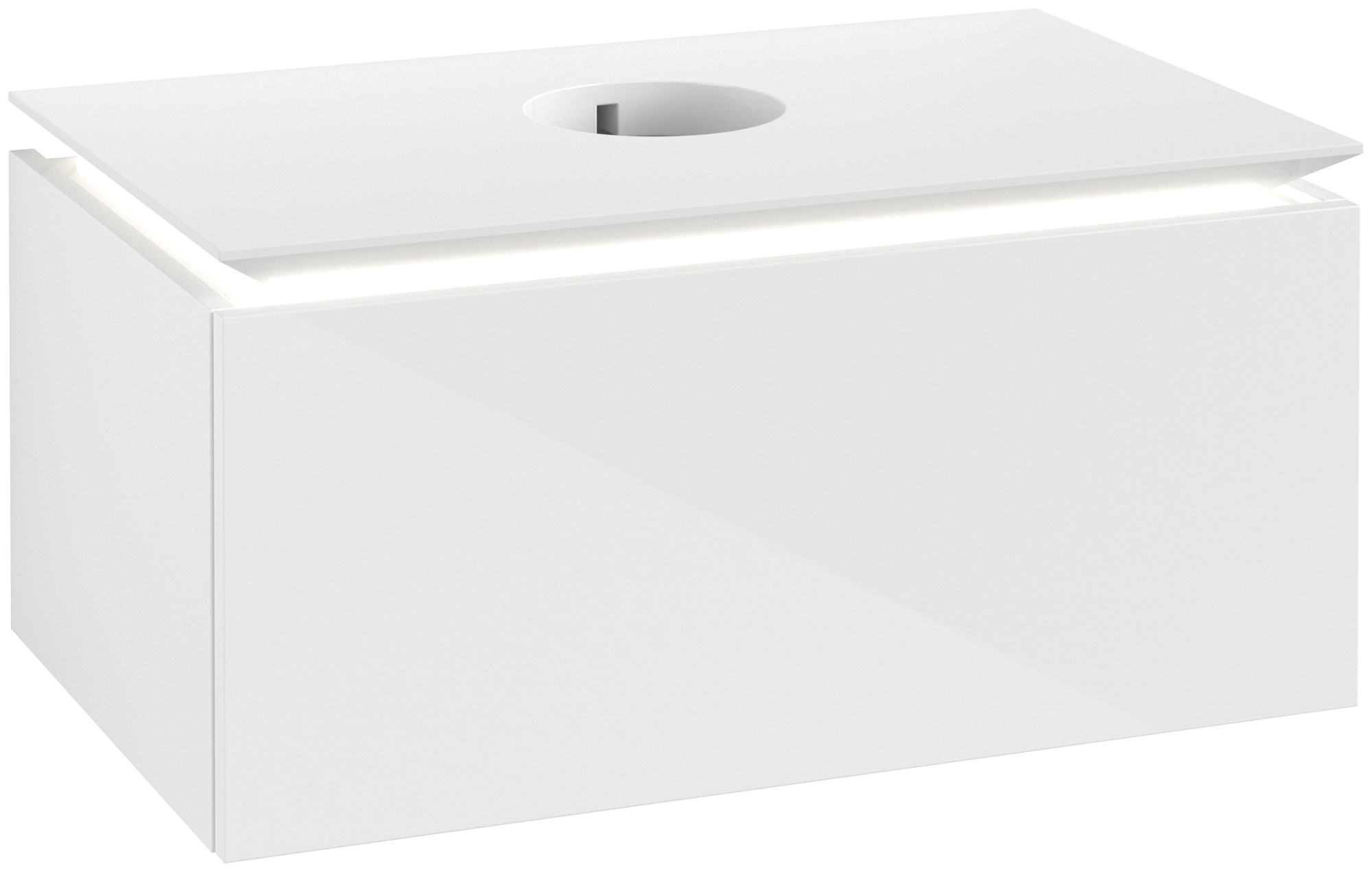 Legato Meuble sous plan, avec éclairage, 1 tiroir sur rails, 800x380x500mm, Caisson: Glossy White, Façade: Glossy White