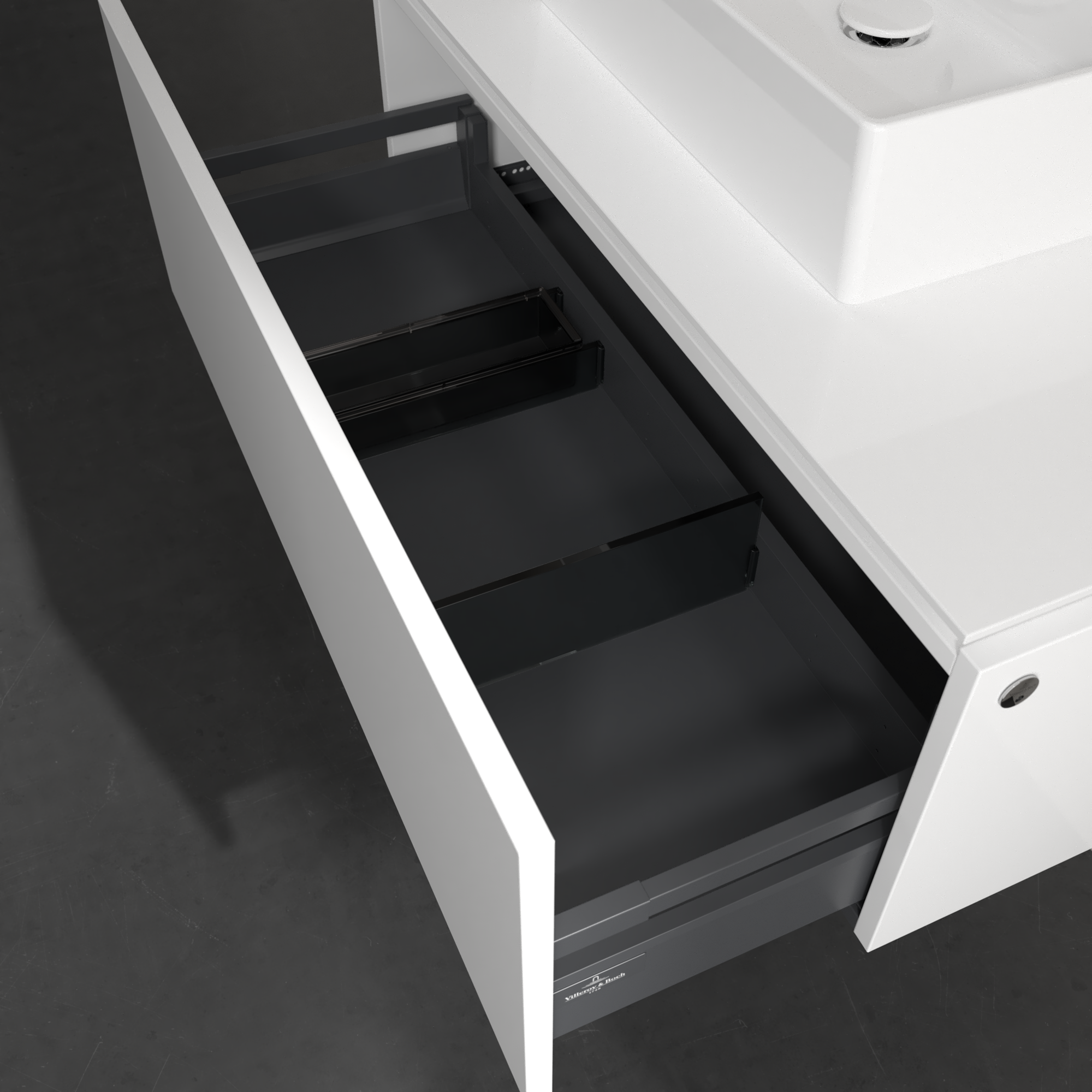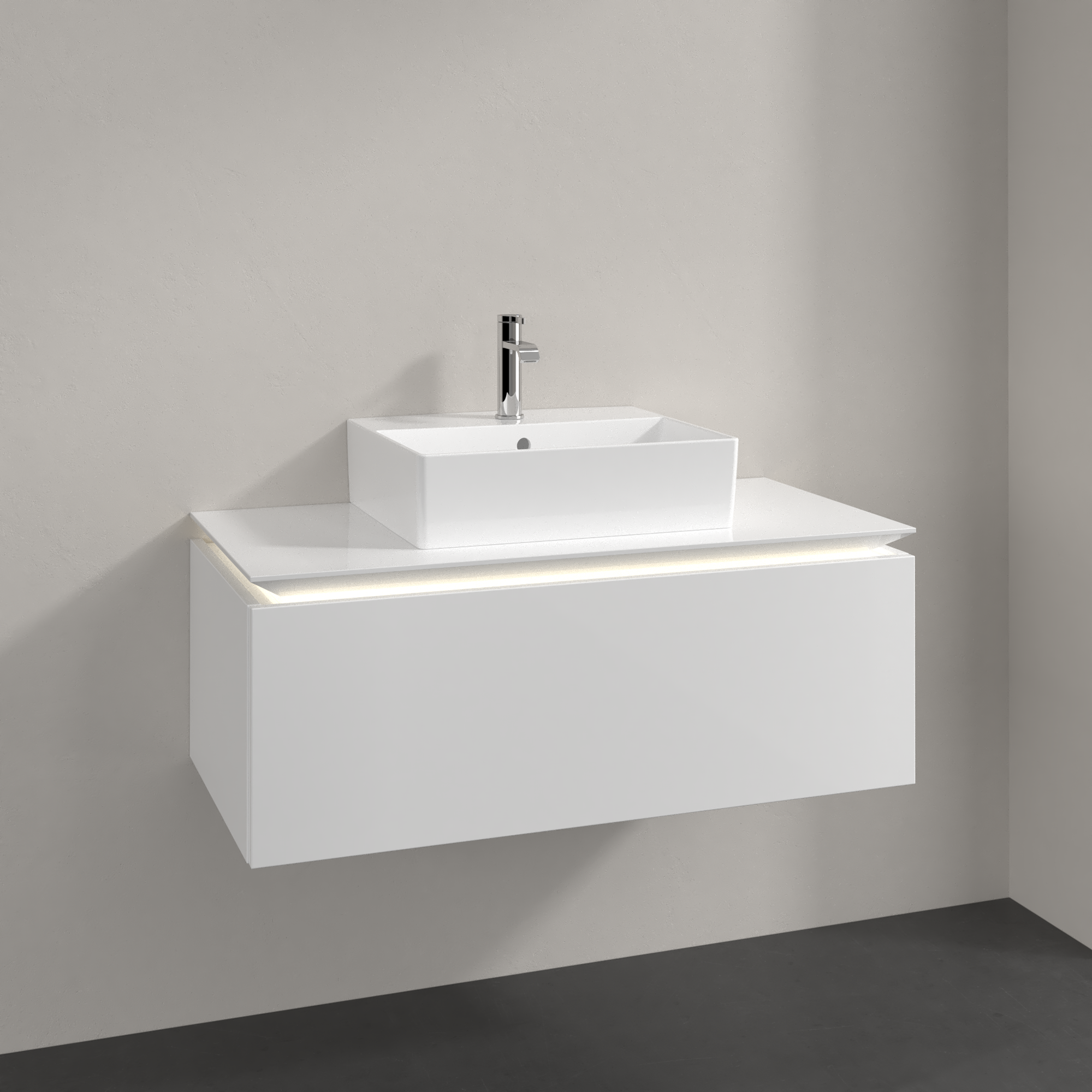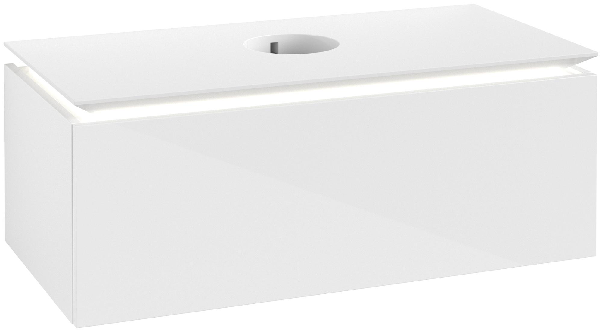 Legato Meuble sous plan, avec éclairage, 1 tiroir sur rails, 1000x380x500mm, Caisson: Glossy White, Façade: Glossy White