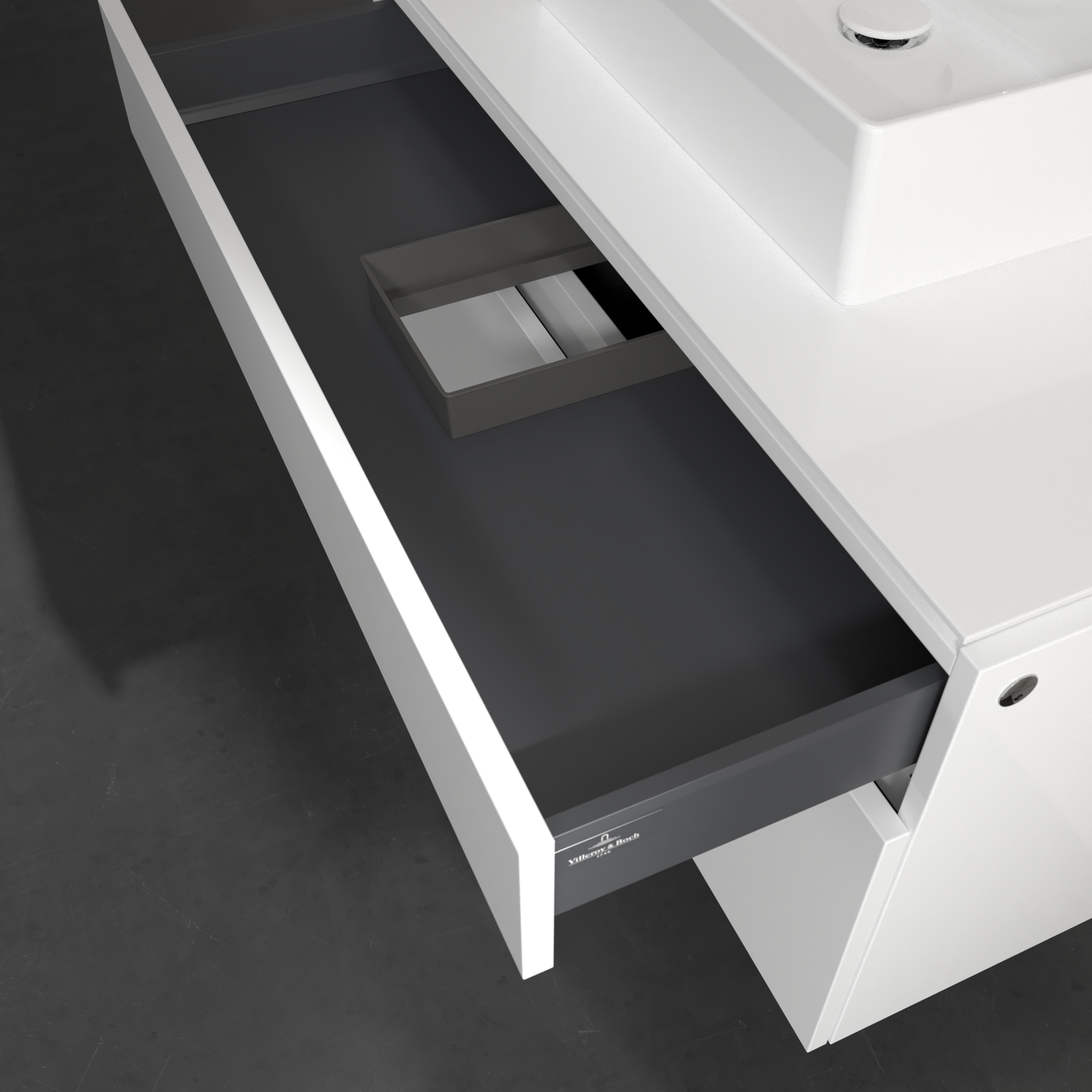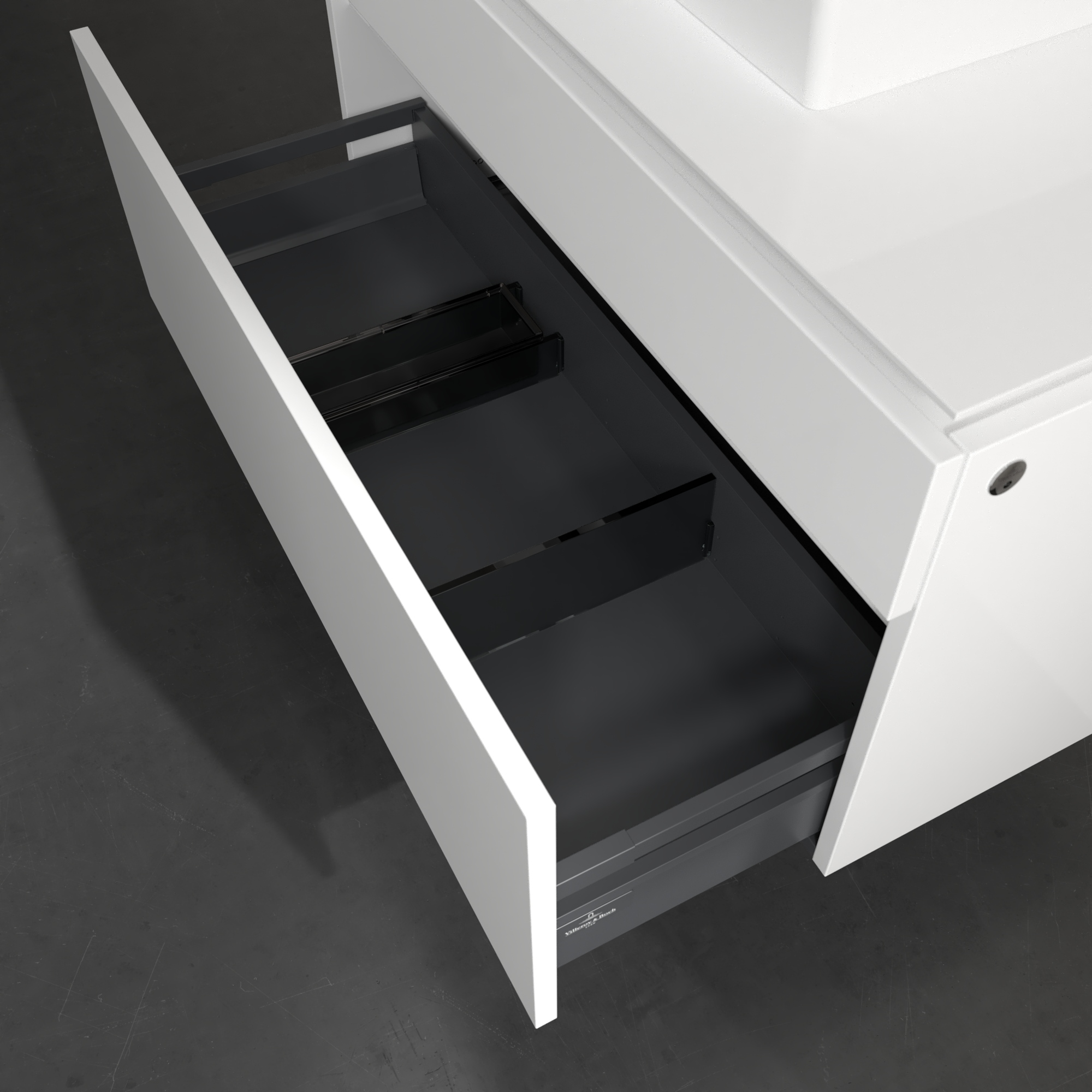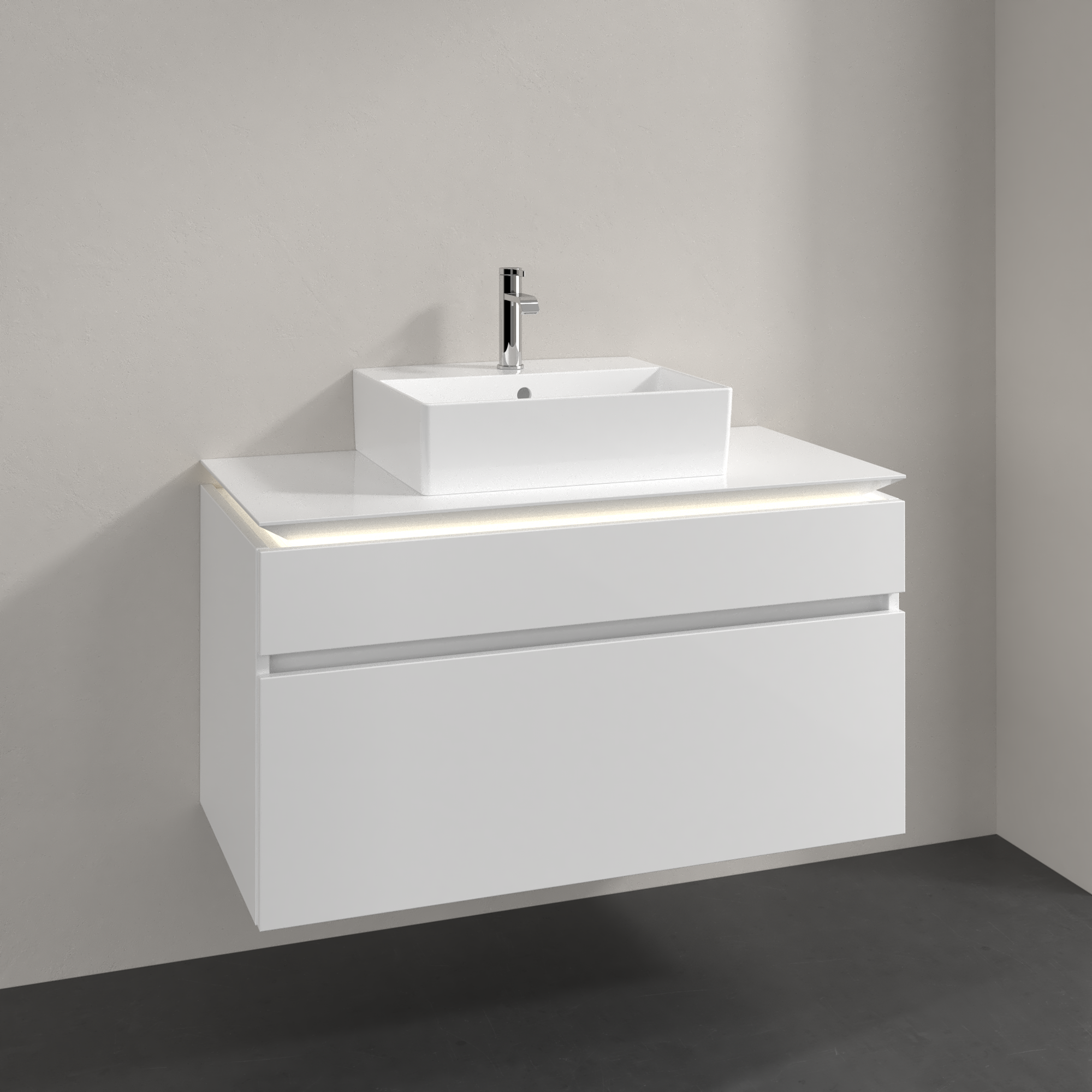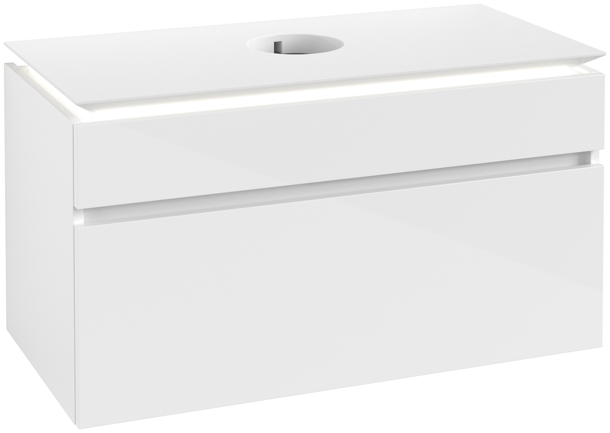 Legato Meuble sous plan, avec éclairage, 2 tiroirs sur rails, 1000x550x500mm, Caisson: Glossy White, Façade: Glossy White