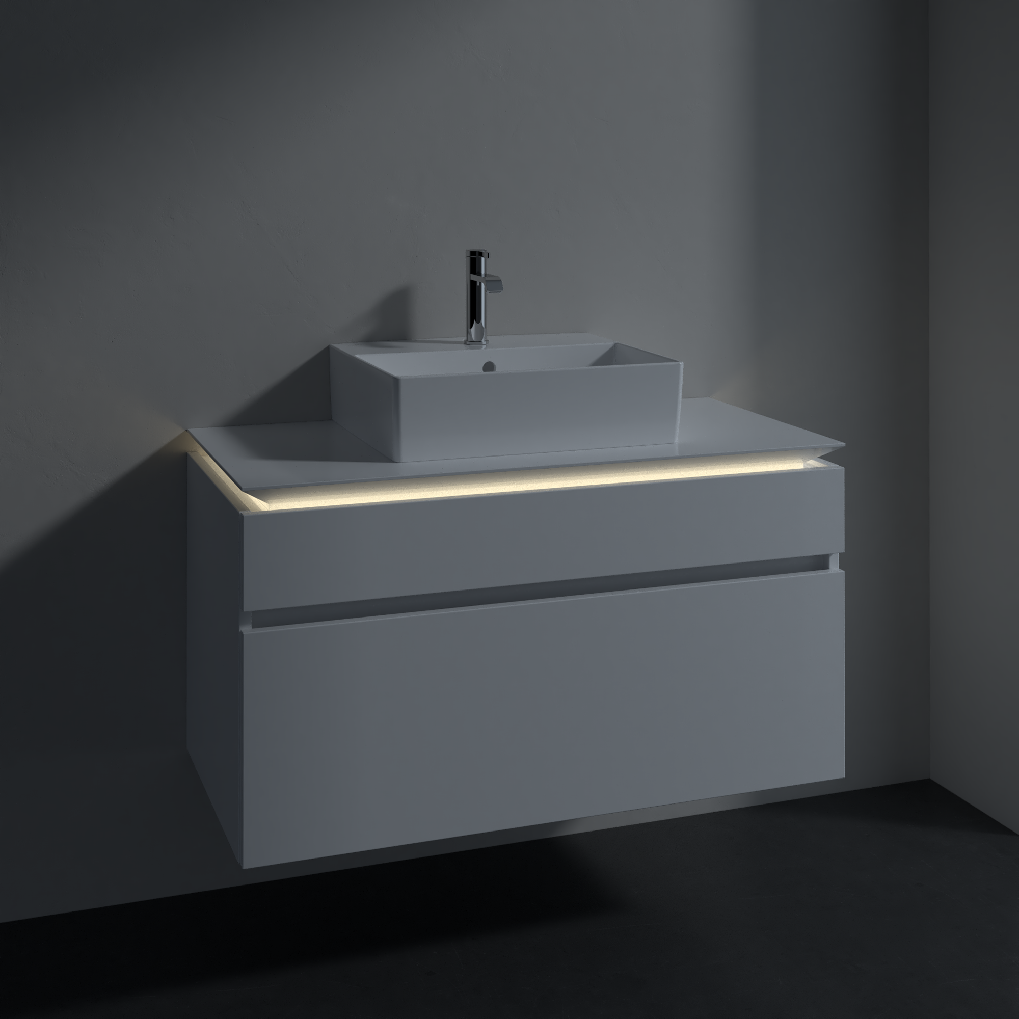 avec éclairage LED sous le plan de lavabo