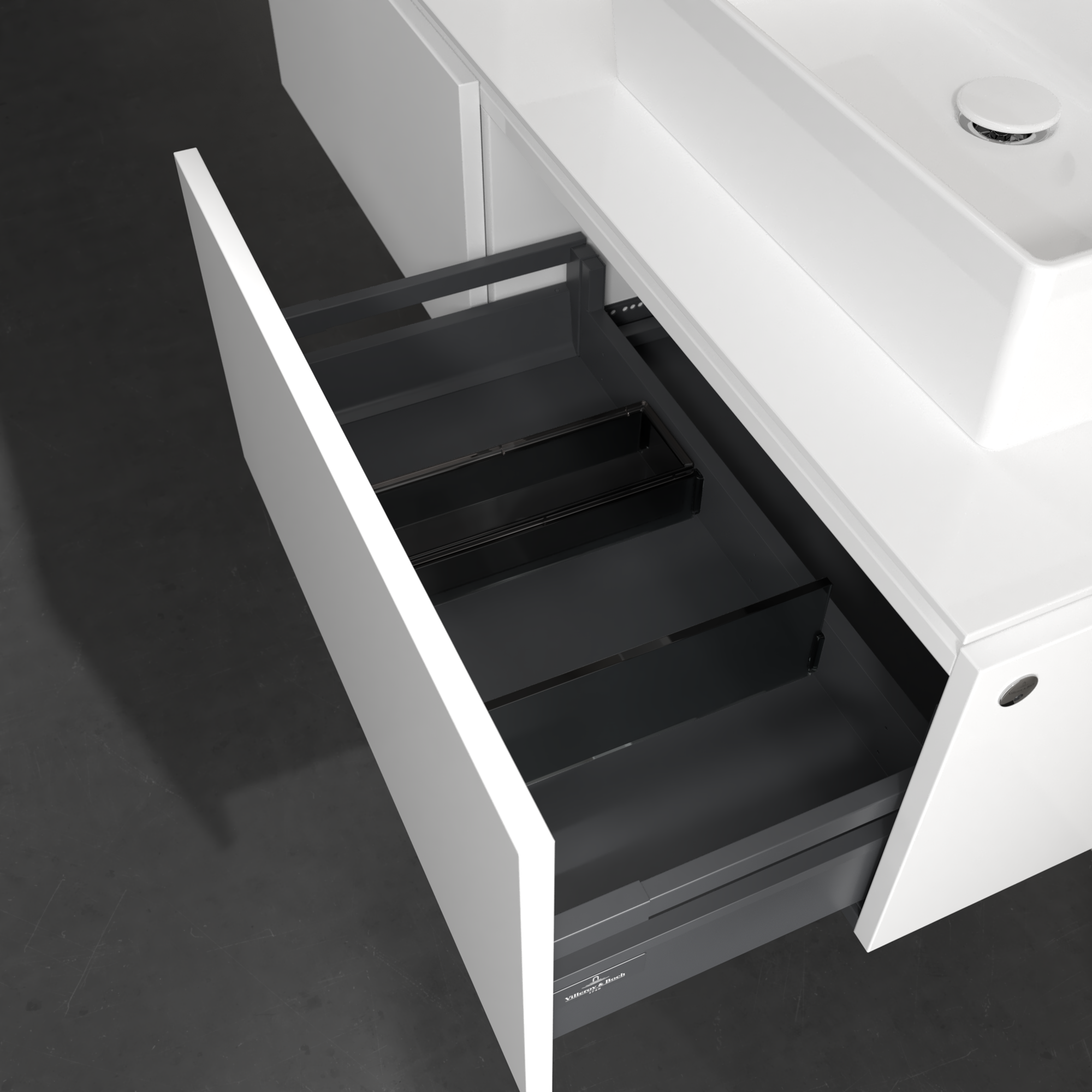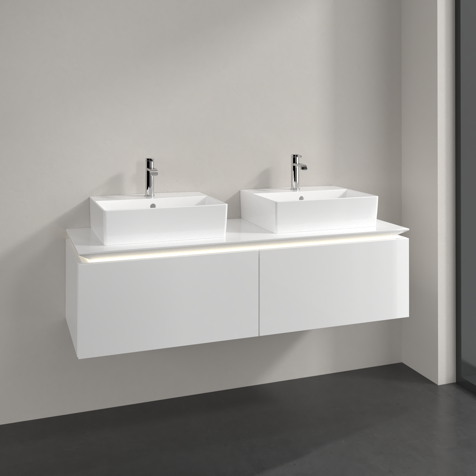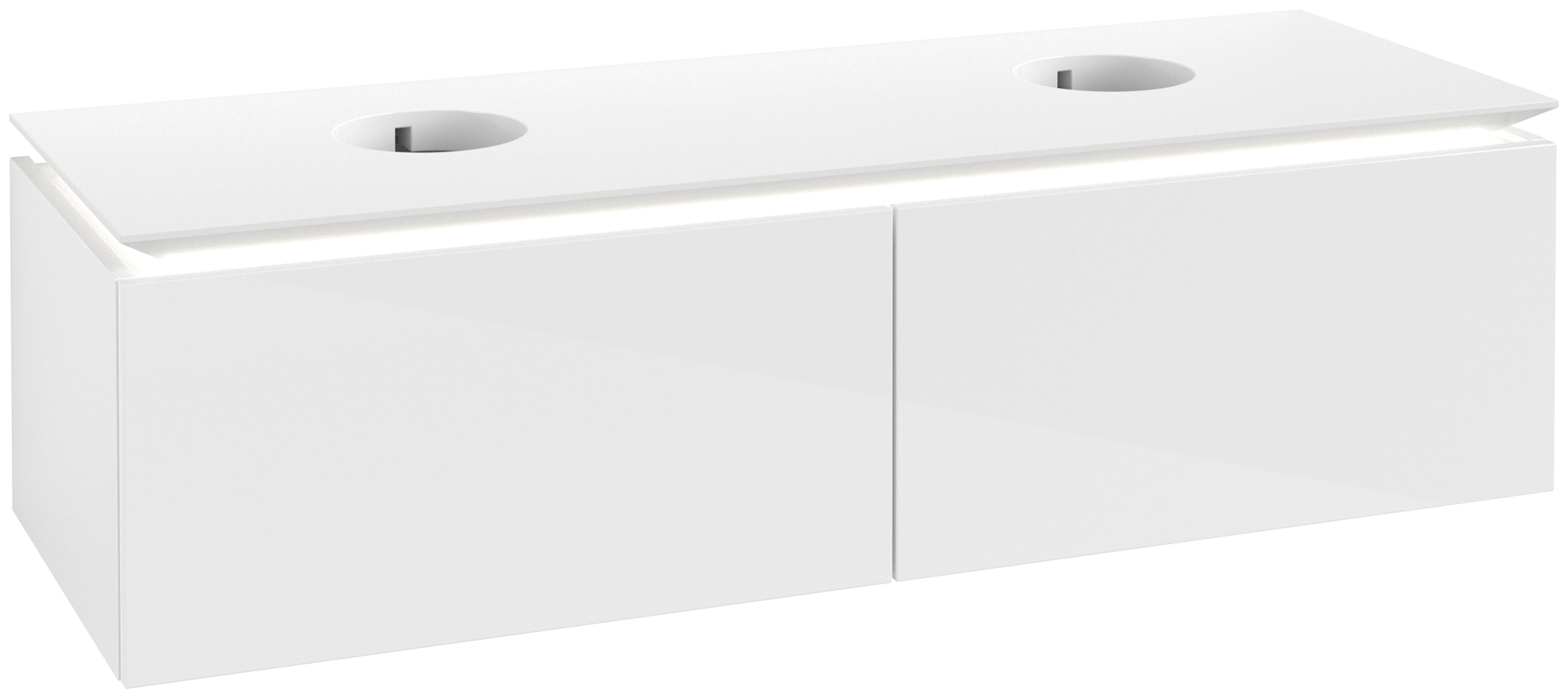 Legato Meuble sous plan, avec éclairage, 2 tiroirs sur rails, 1400x380x500mm, Caisson: Glossy White, Façade: Glossy White