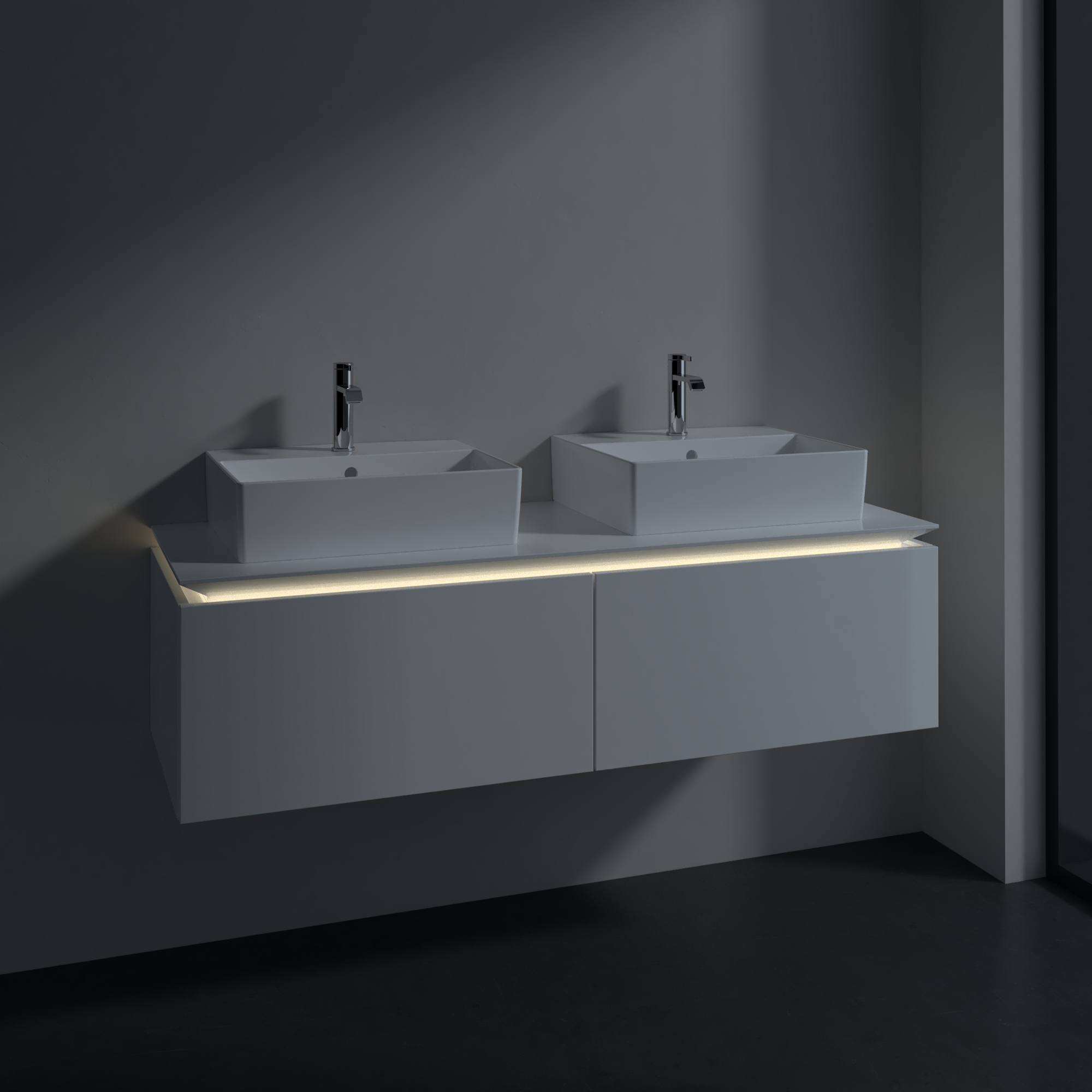 avec éclairage LED sous le plan de lavabo