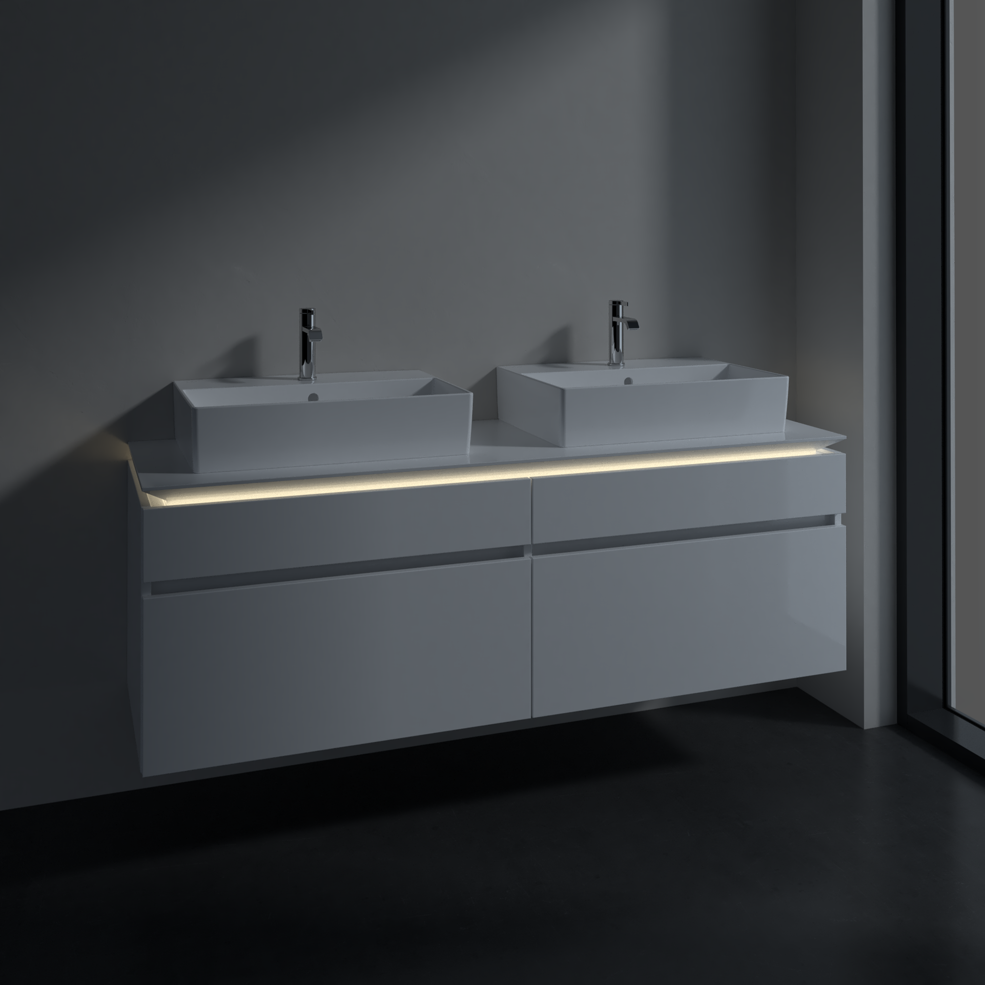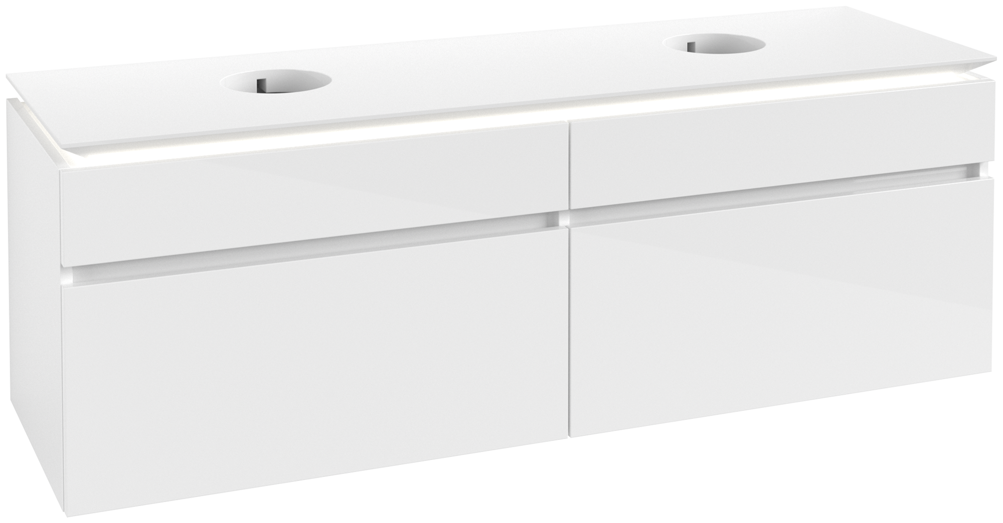 Legato Meuble sous plan, avec éclairage, 4 tiroirs sur rails, 1600x550x500mm, Caisson: Glossy White, Façade: Glossy White