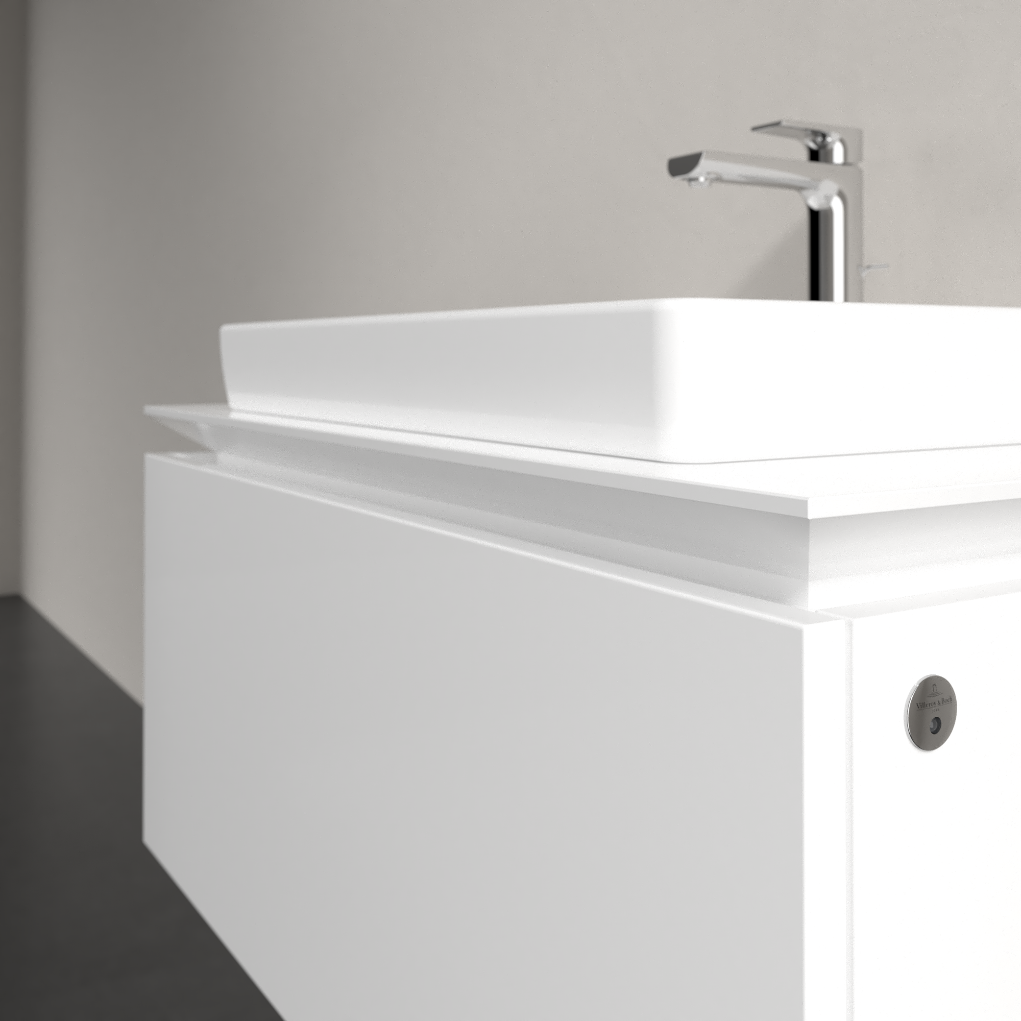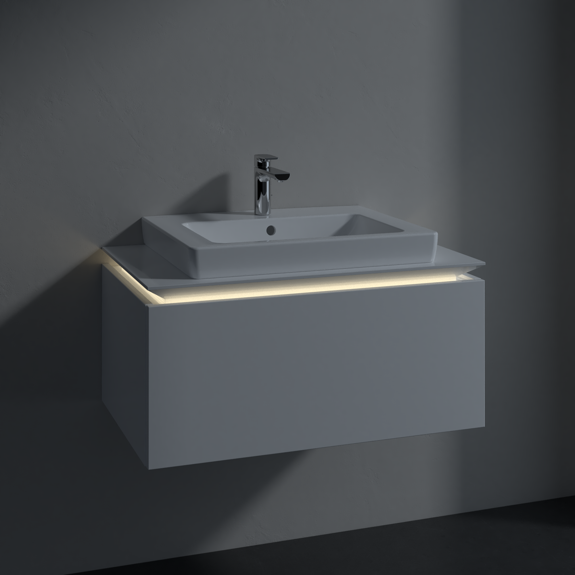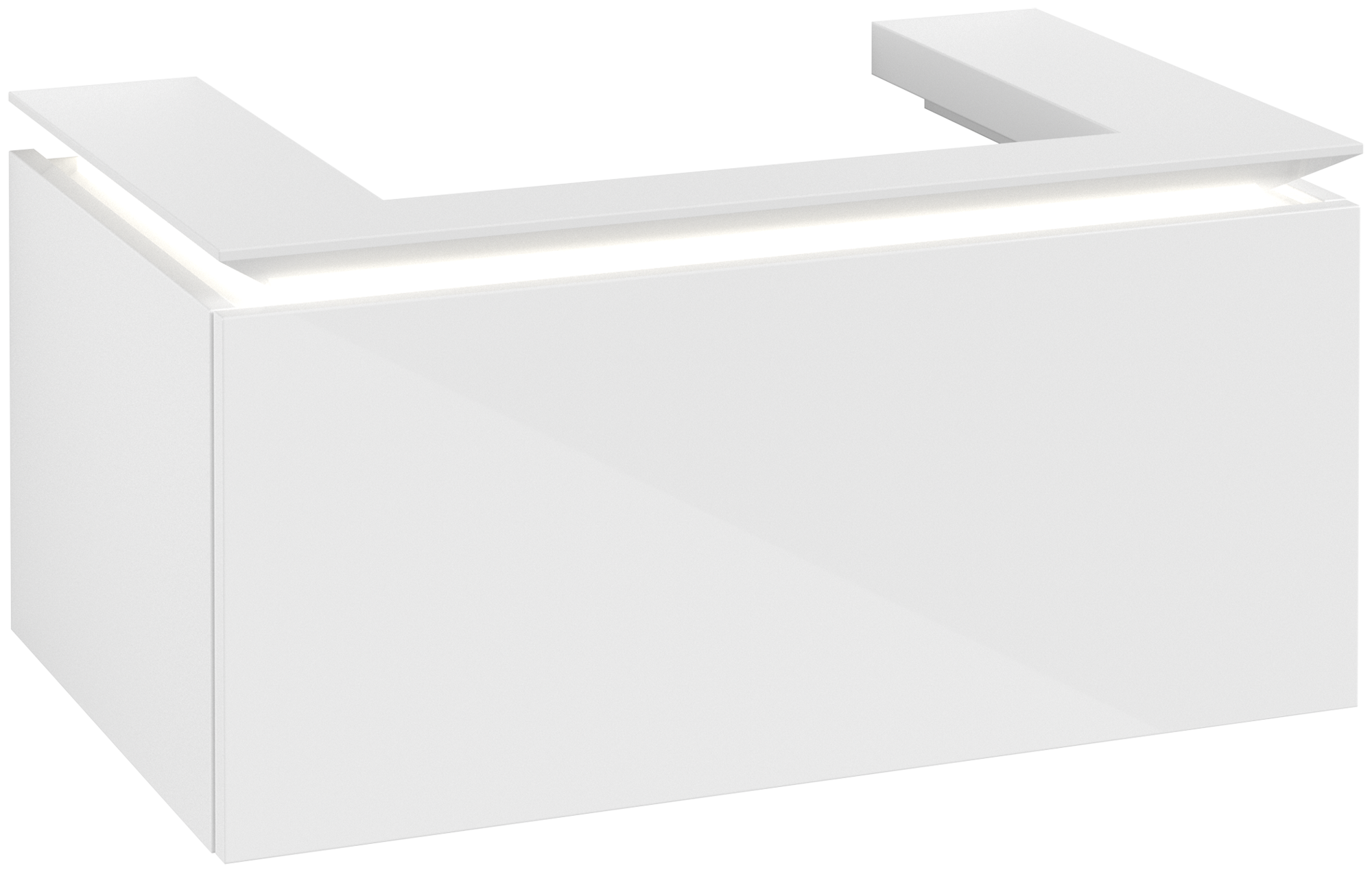 Legato Meuble sous plan, avec éclairage, 1 tiroir sur rails, 800x380x500mm, Caisson: Glossy White, Façade: Glossy White