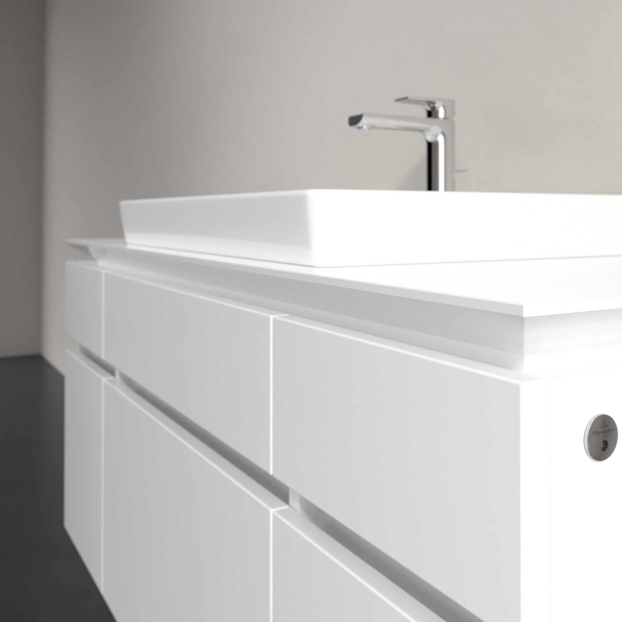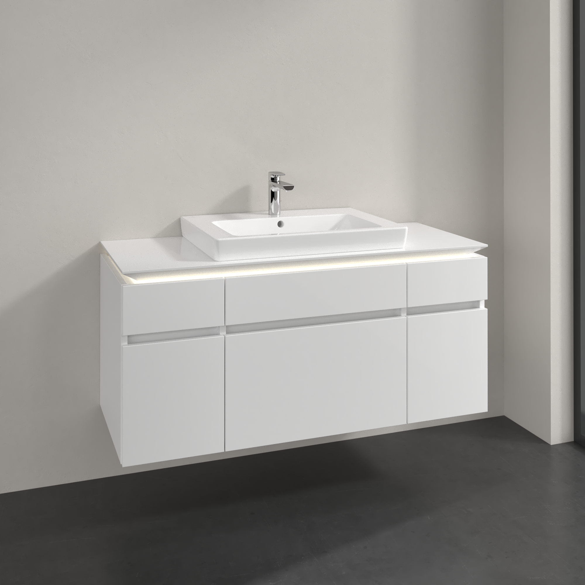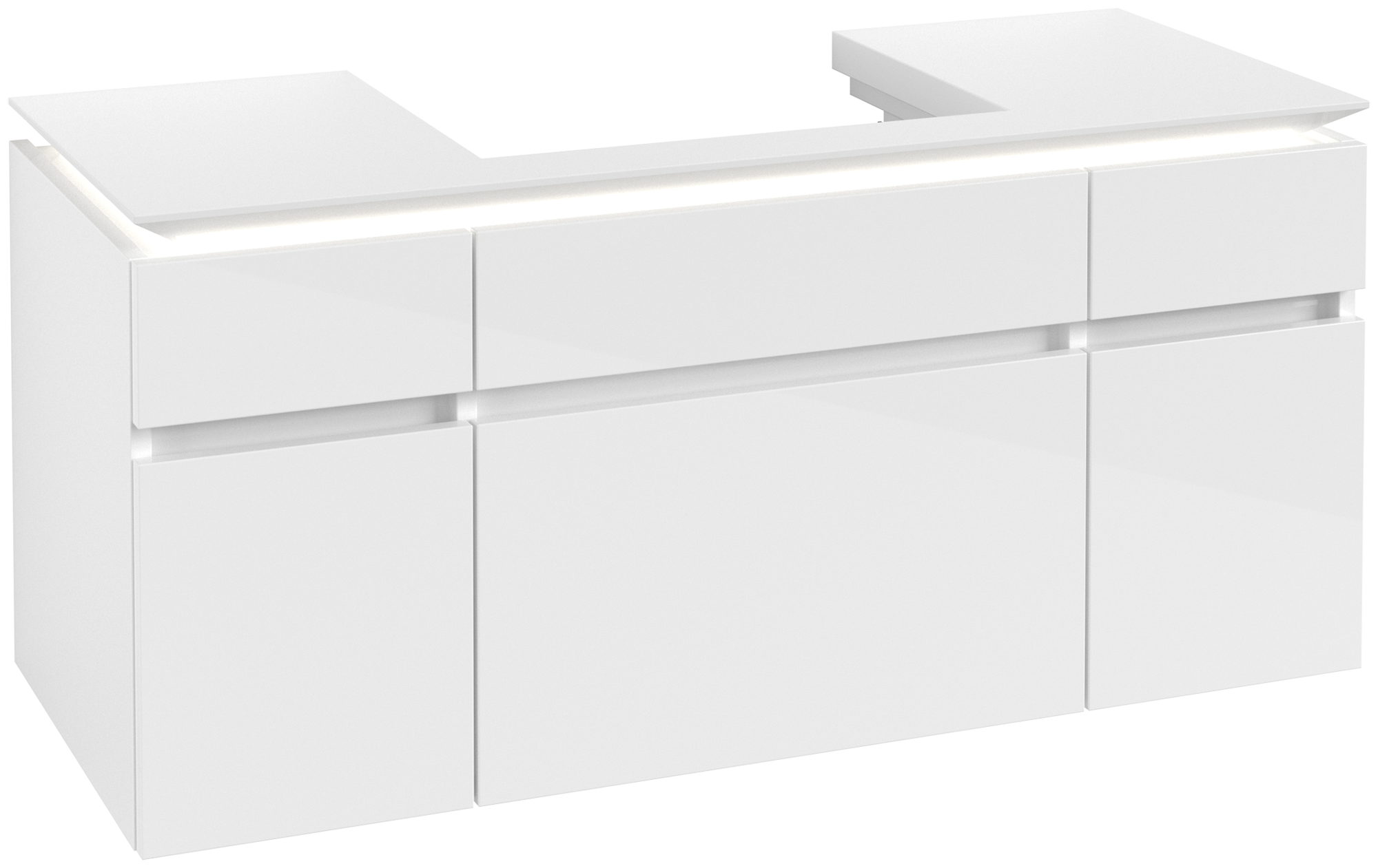 Legato Meuble sous plan, avec éclairage, 5 tiroirs sur rails, 1200x550x500mm, Caisson: Glossy White, Façade: Glossy White