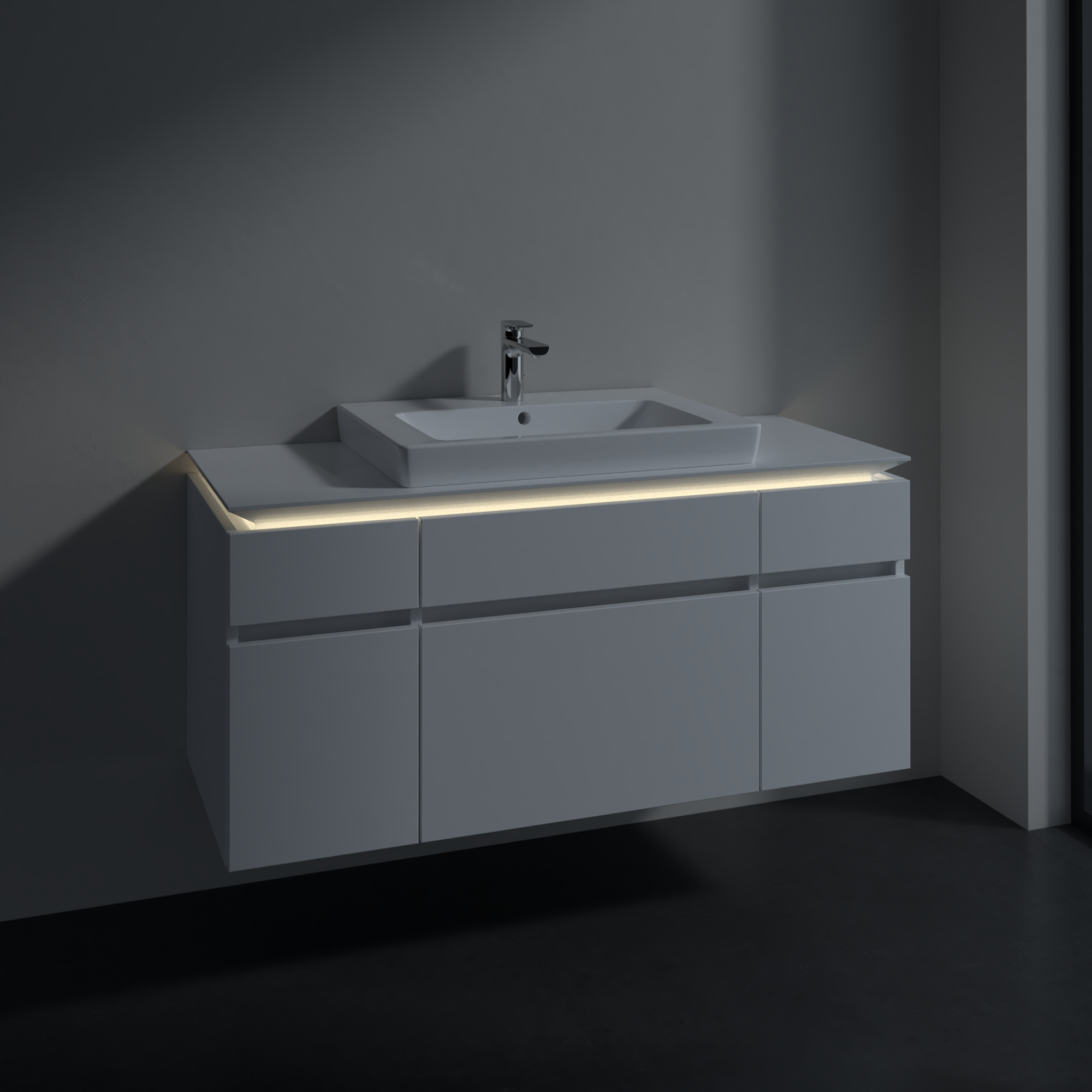 avec éclairage LED sous le plan de lavabo
