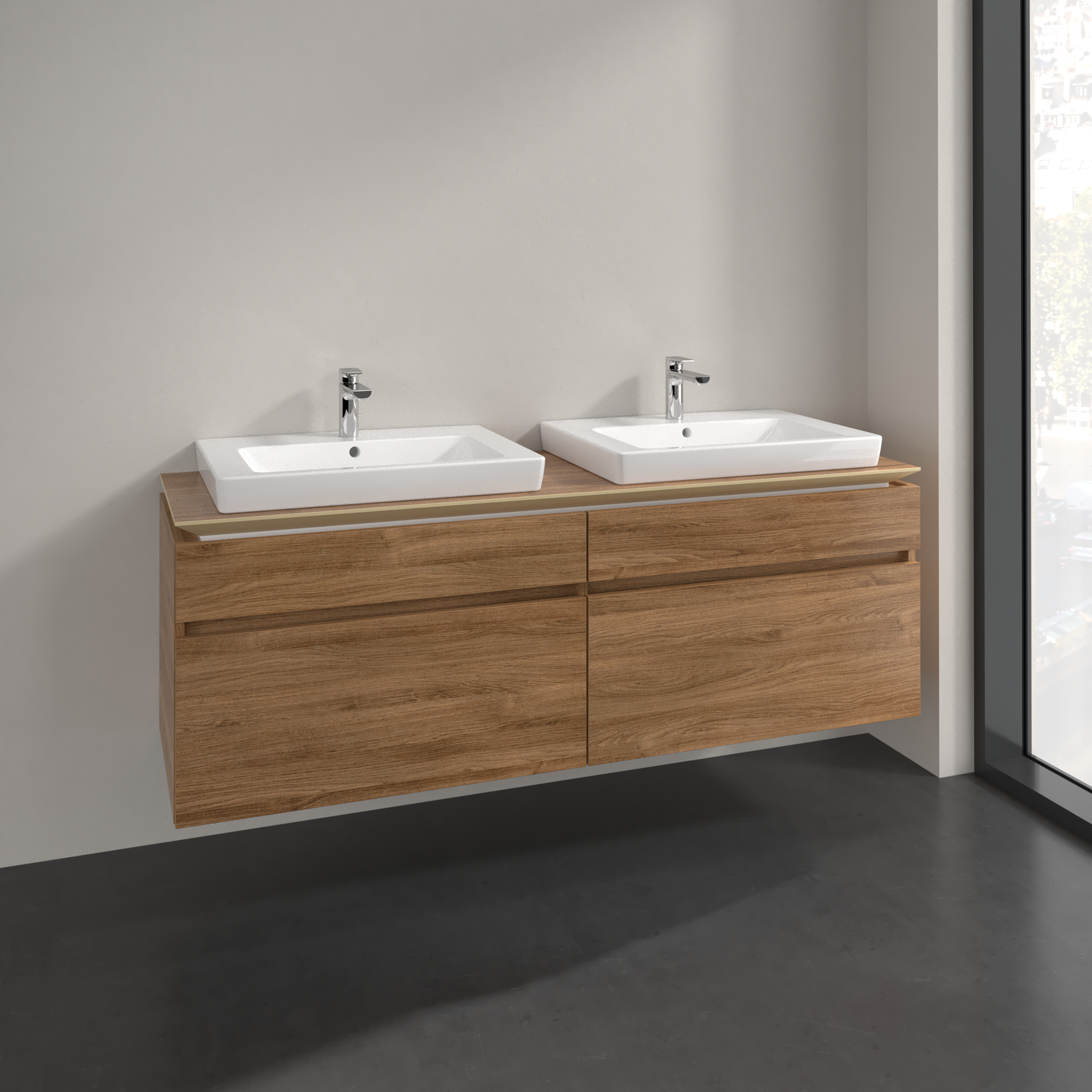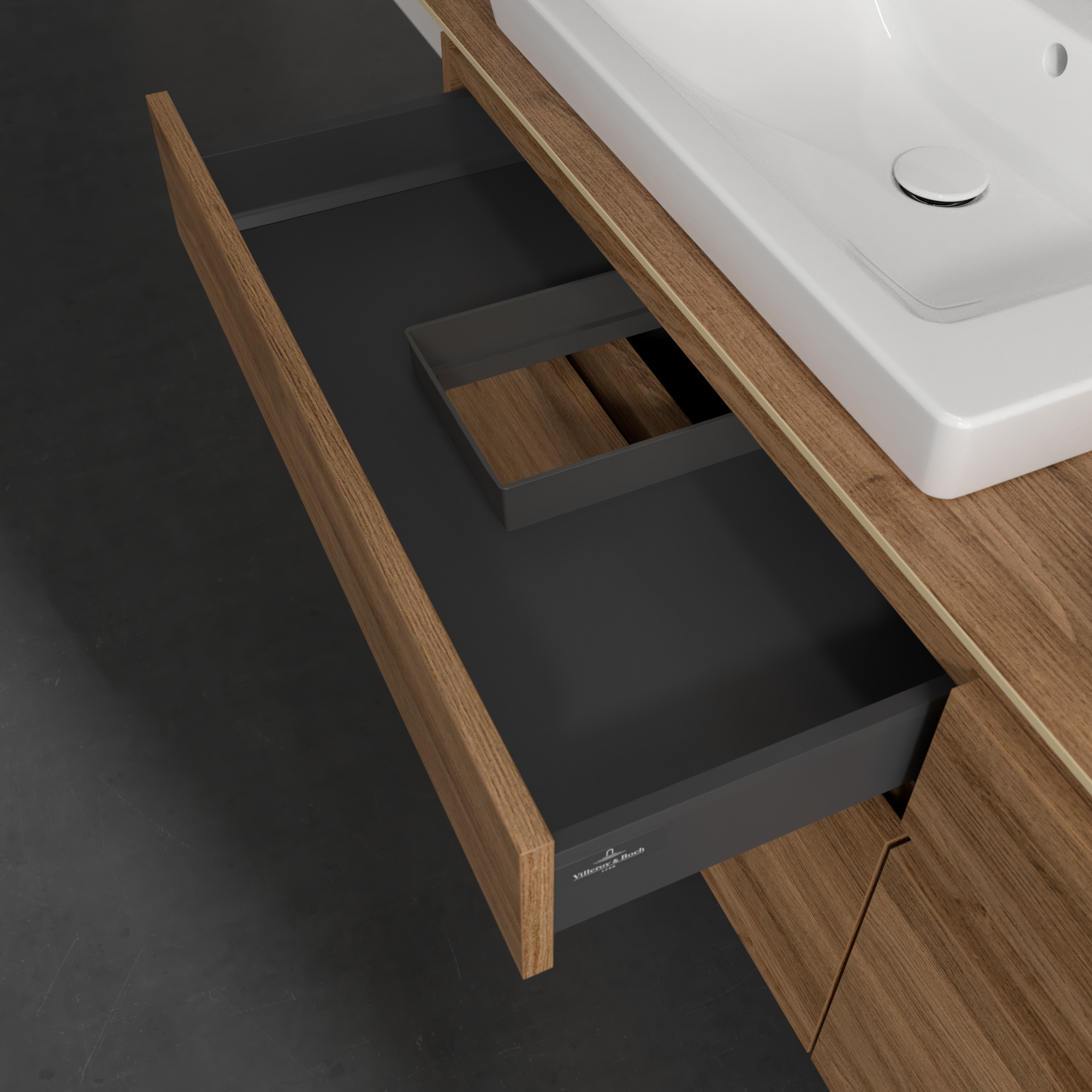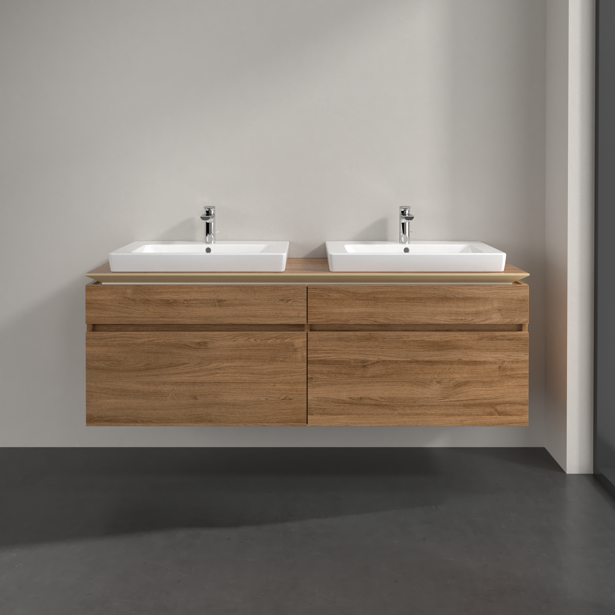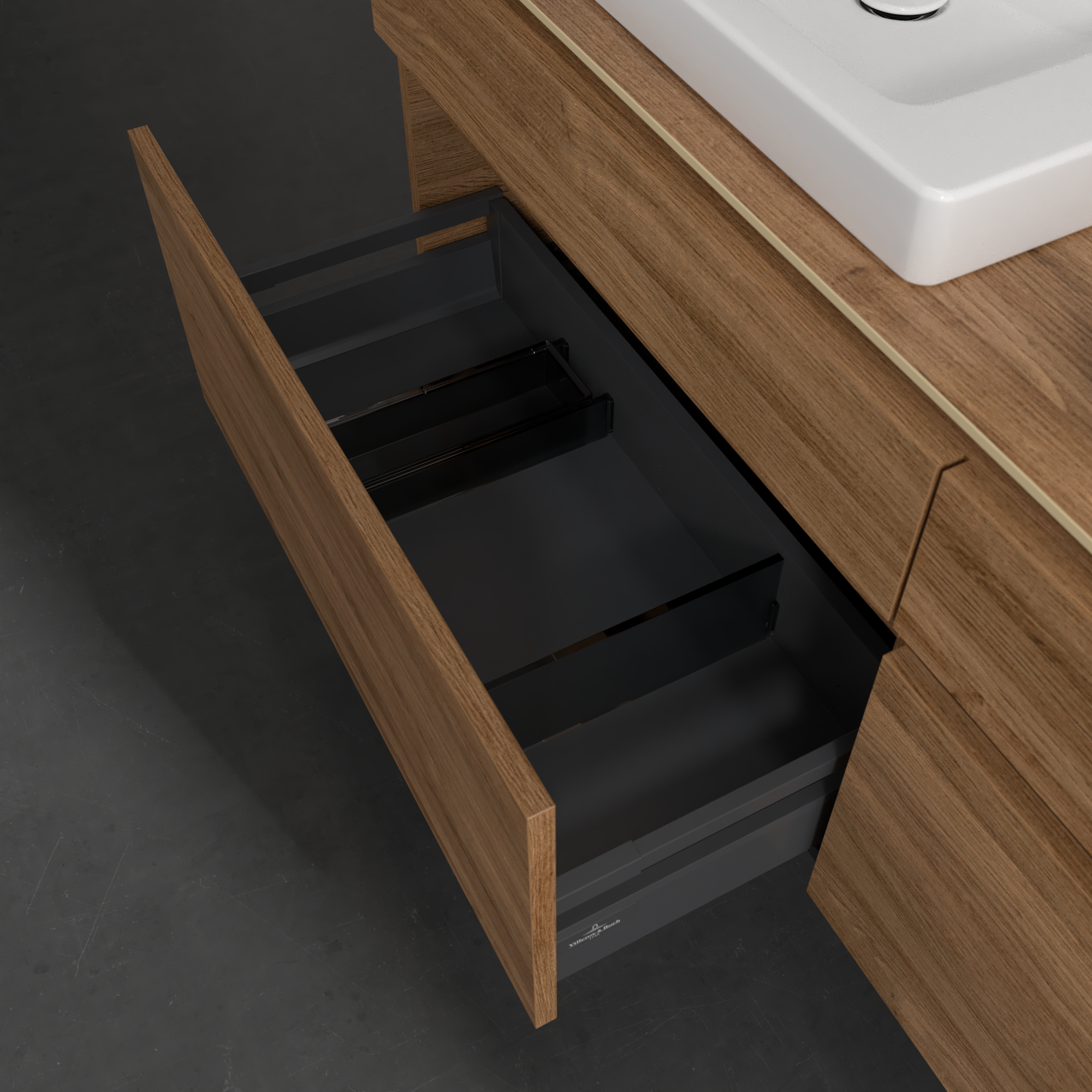 Legato Meuble sous plan, 4 tiroirs sur rails, 1600x550x500mm, Caisson: Oak Kansas, Façade: Oak Kansas