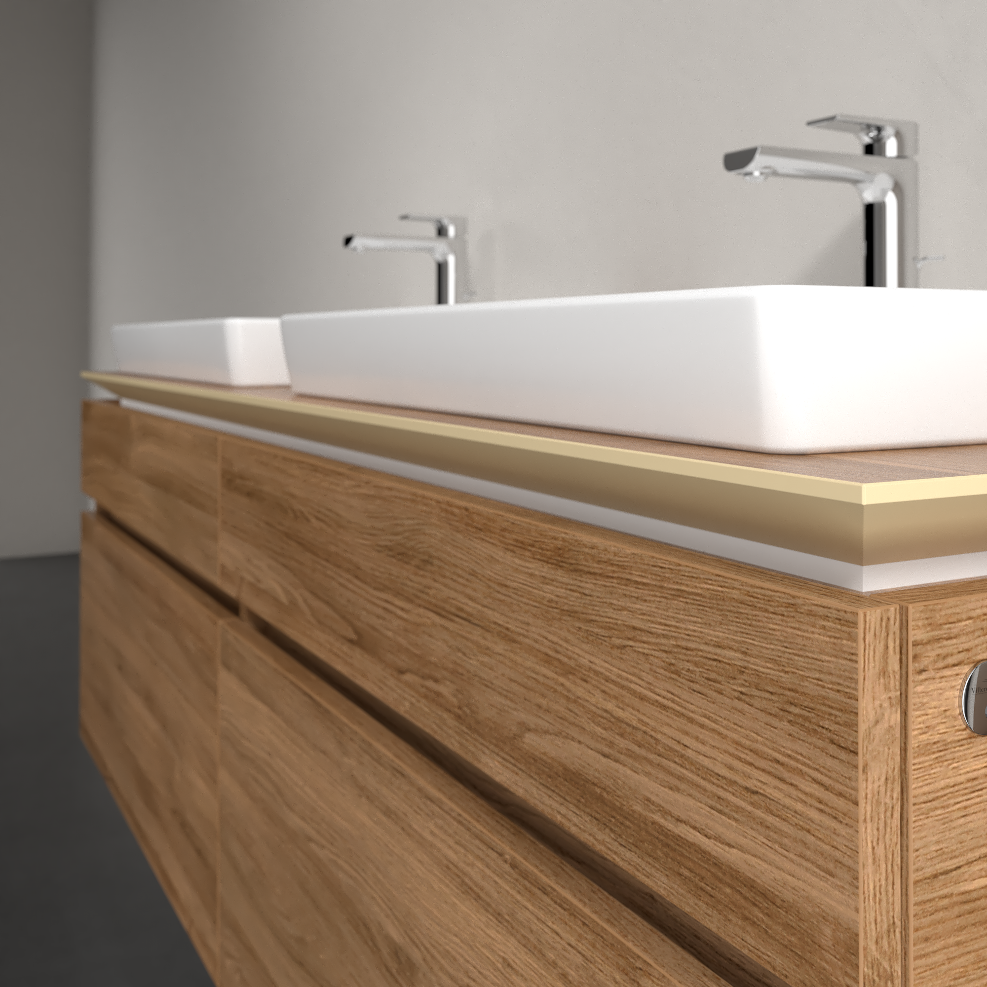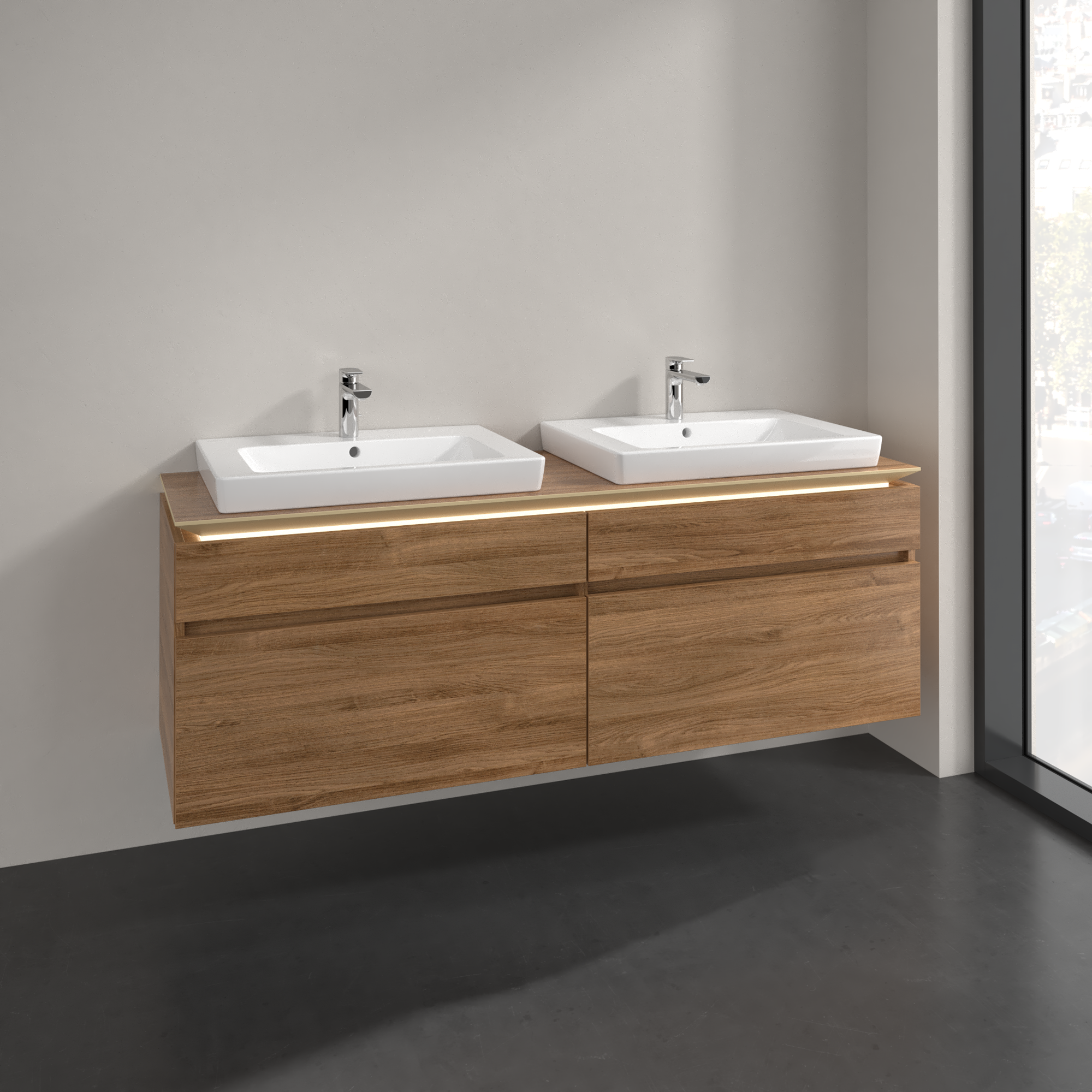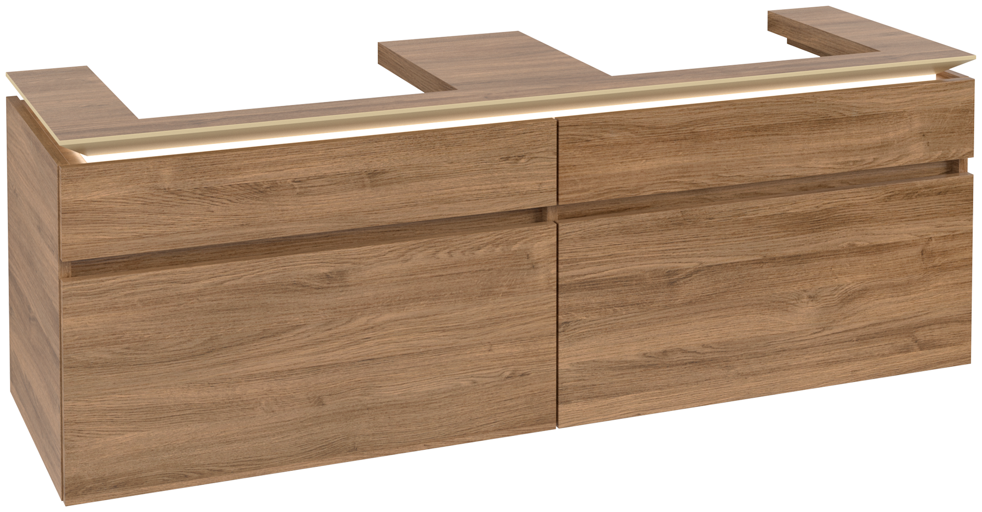 Legato Meuble sous plan, avec éclairage, 4 tiroirs sur rails, 1600x550x500mm, Caisson: Oak Kansas, Façade: Oak Kansas