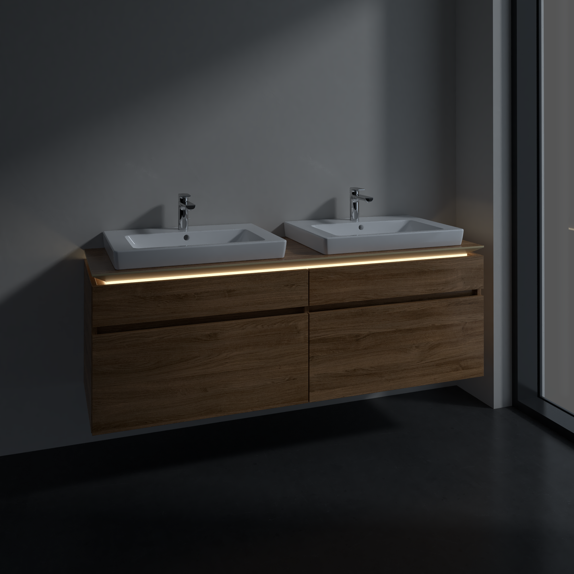 avec éclairage LED sous le plan de lavabo