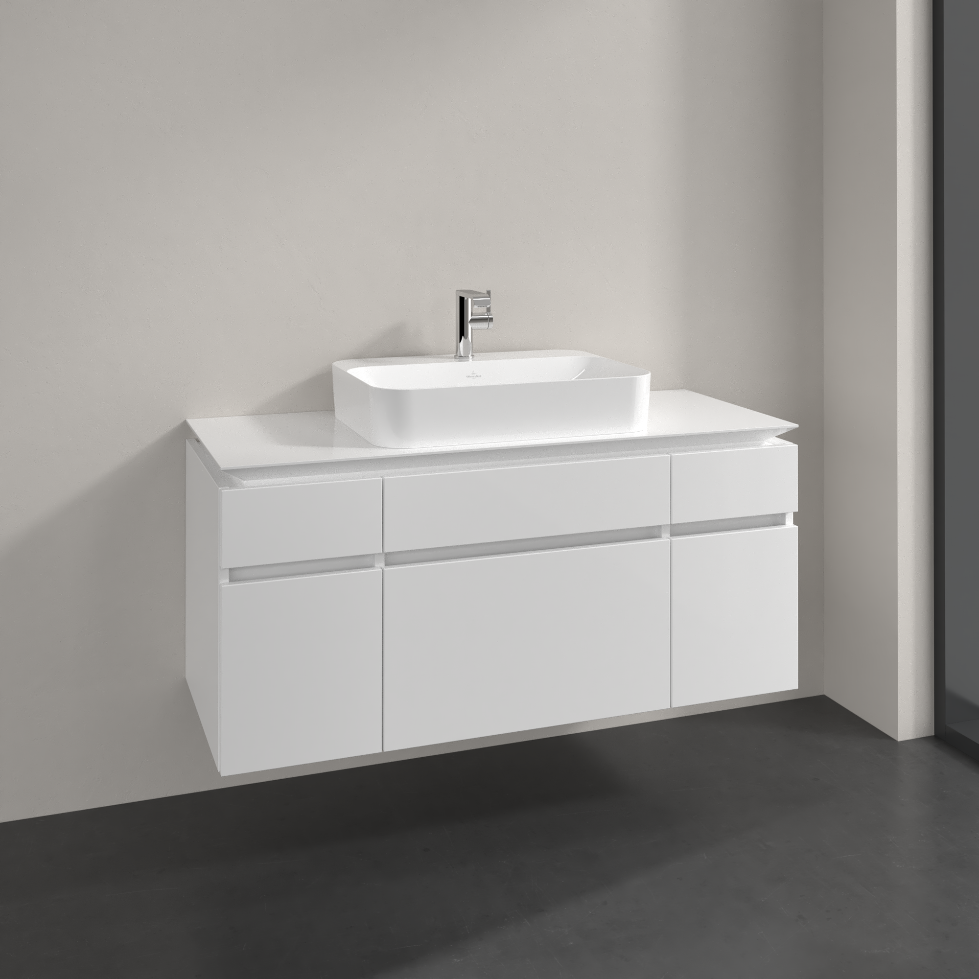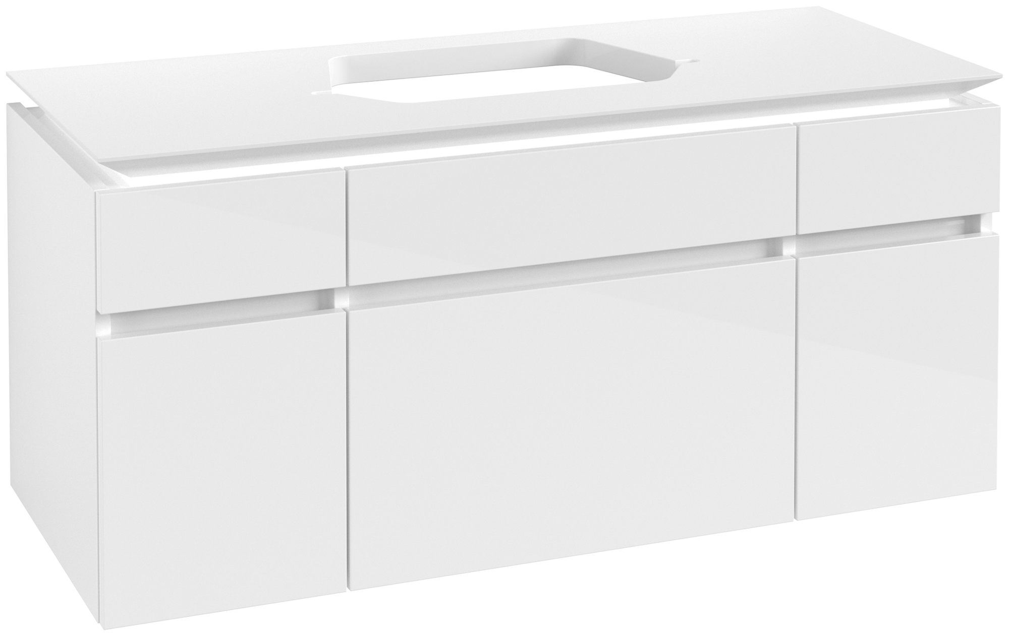 Legato Meuble sous plan, 5 tiroirs sur rails, 1200x550x500mm, Caisson: Glossy White, Façade: Glossy White