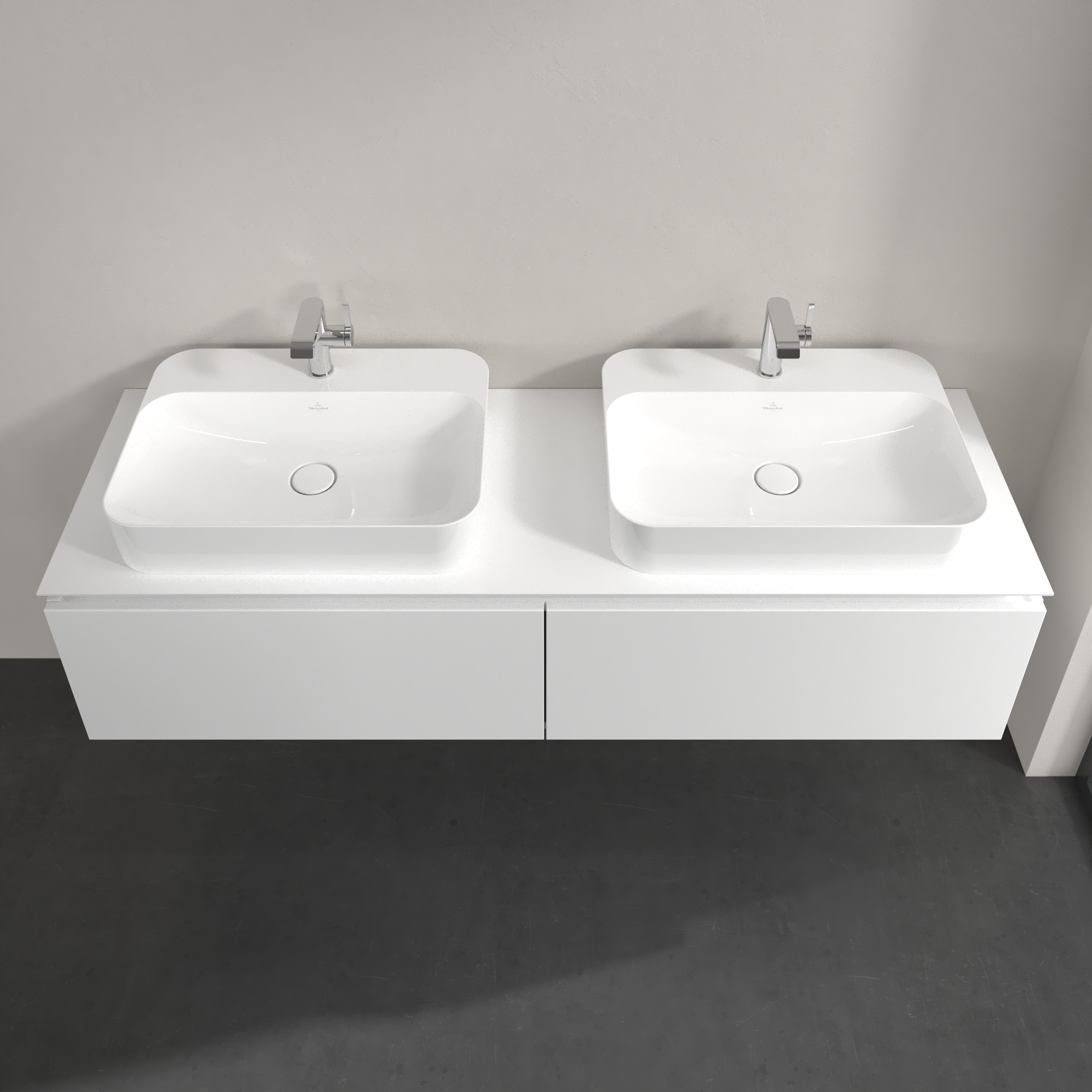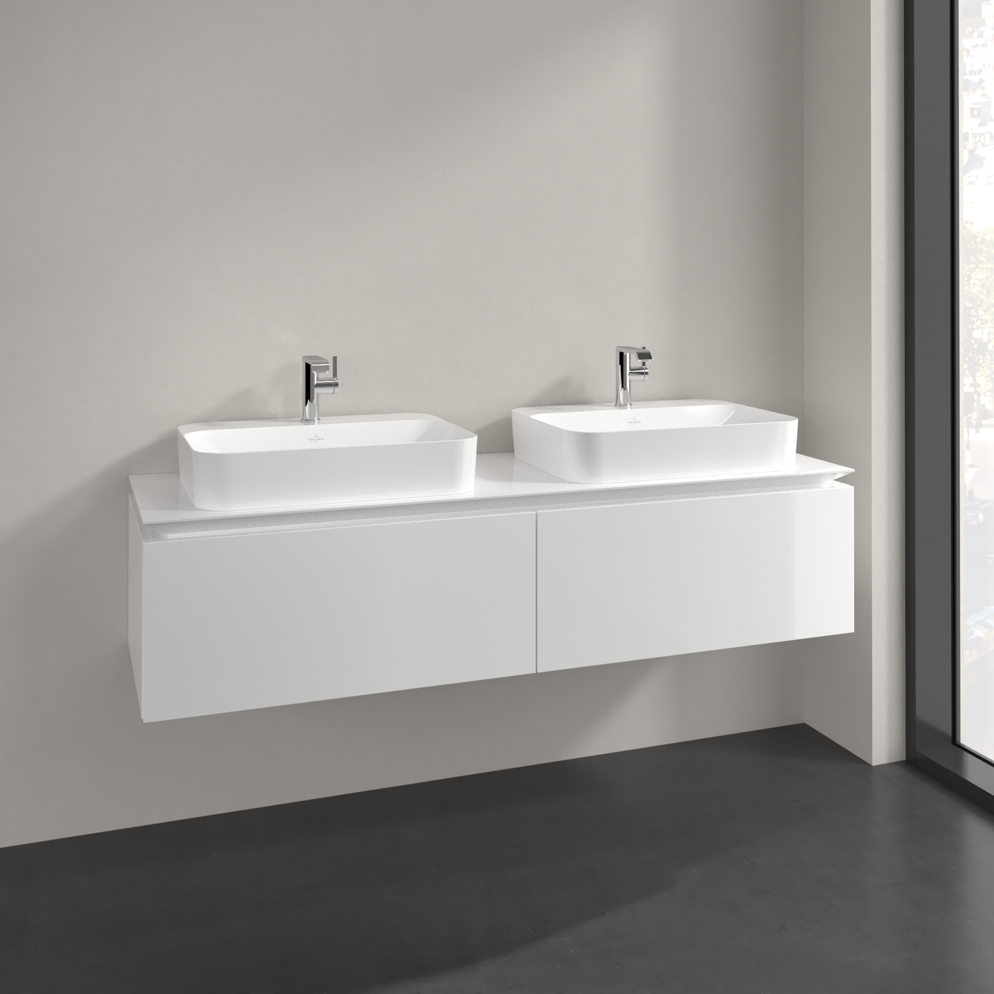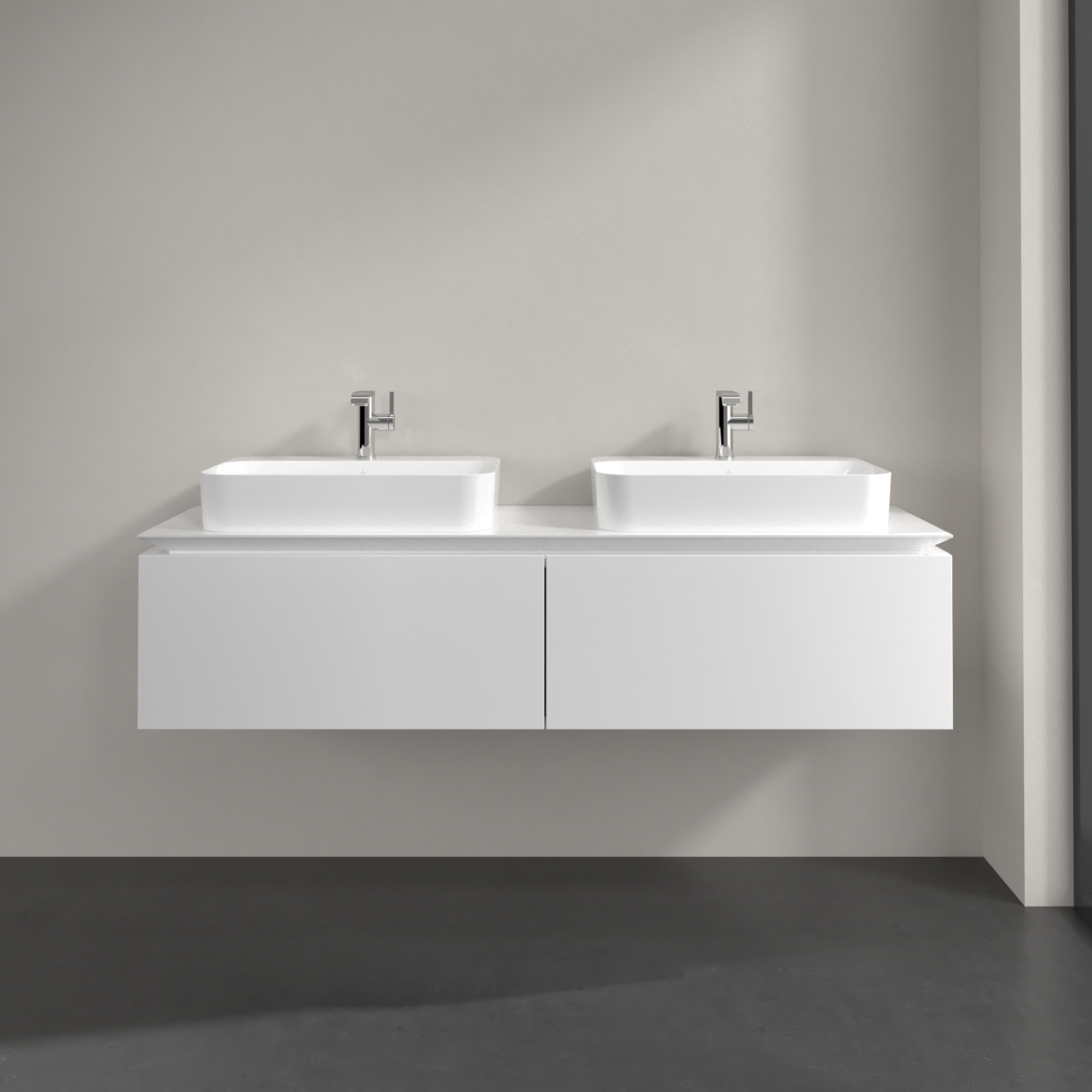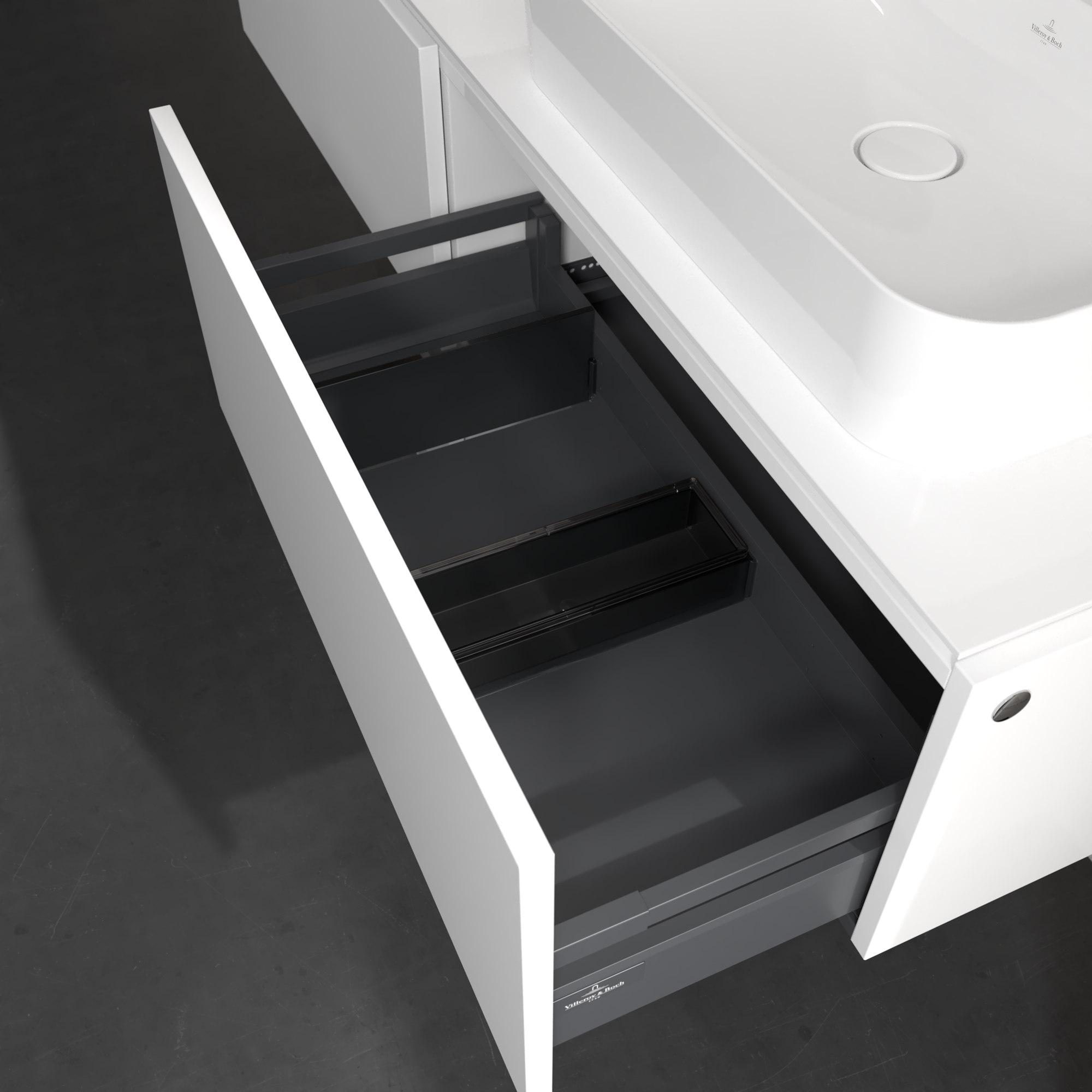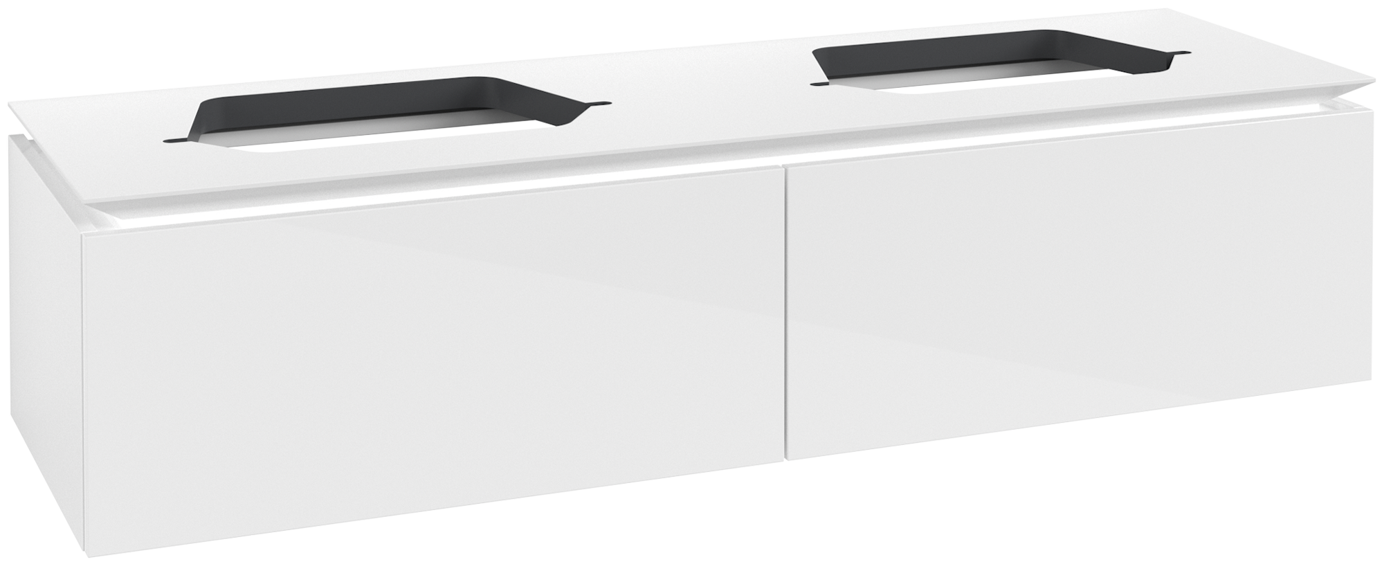 Legato Meuble sous plan, 2 tiroirs sur rails, 1600x380x500mm, Caisson: Glossy White, Façade: Glossy White