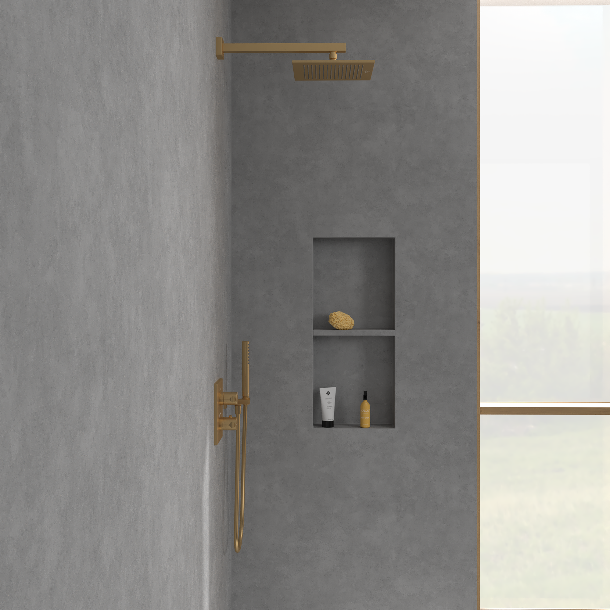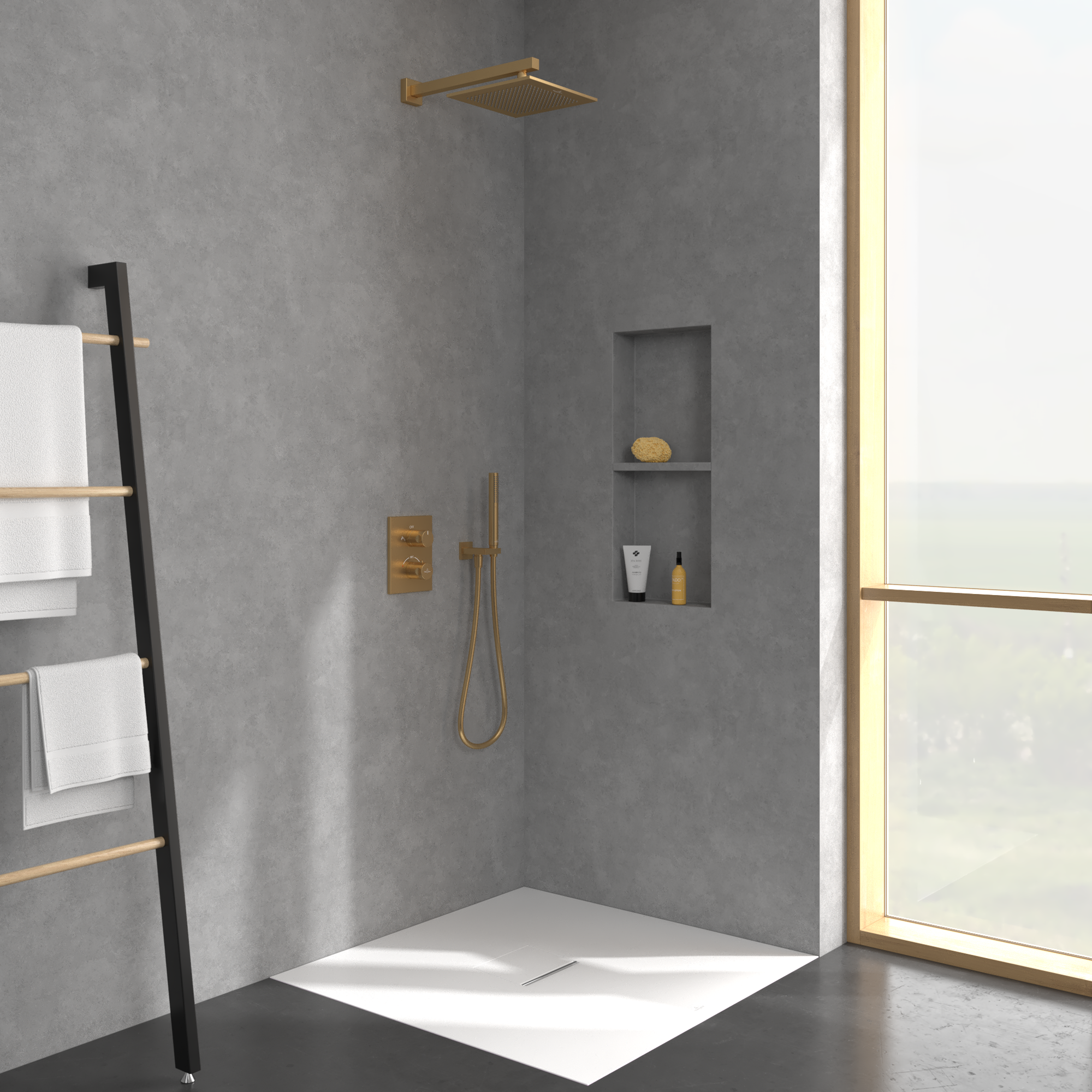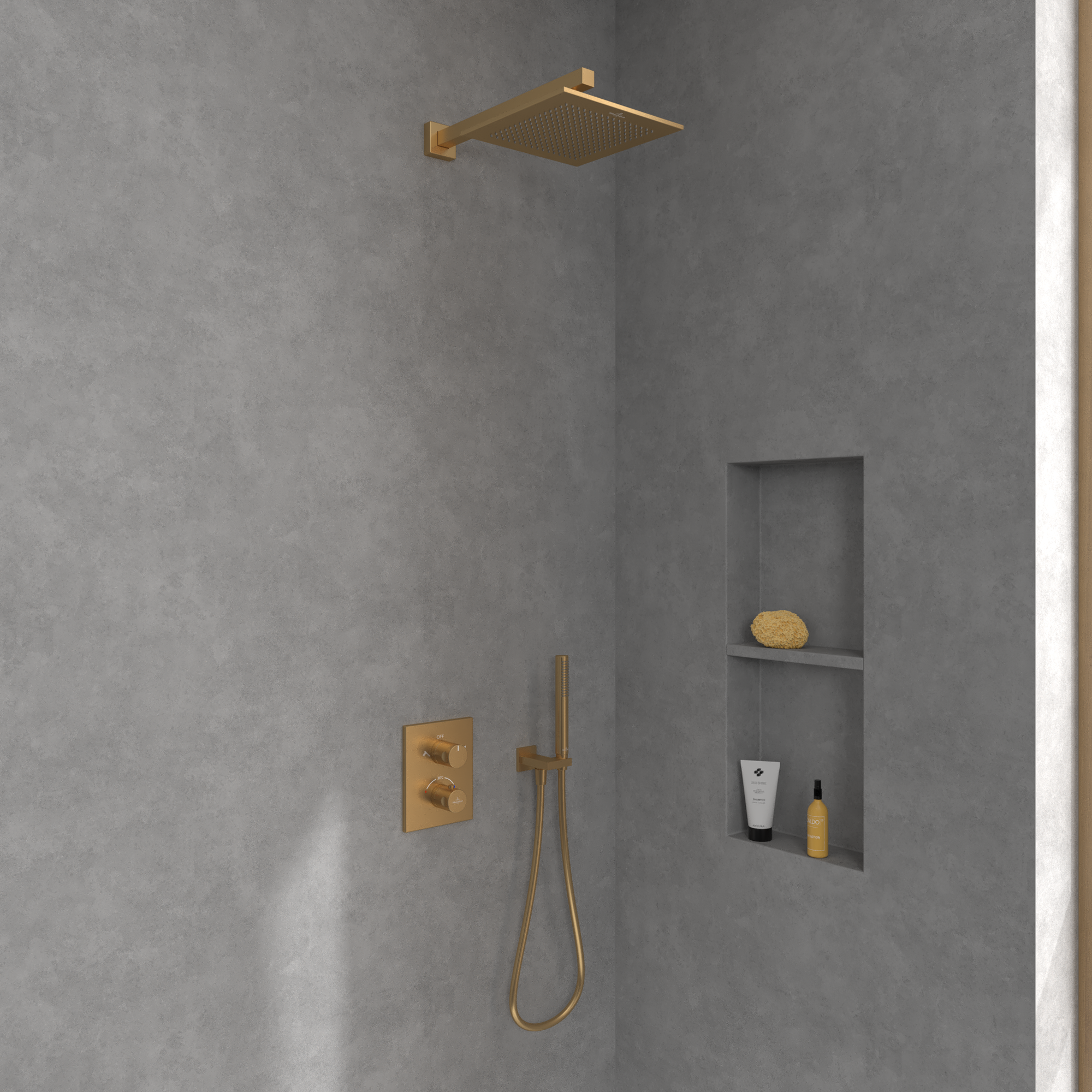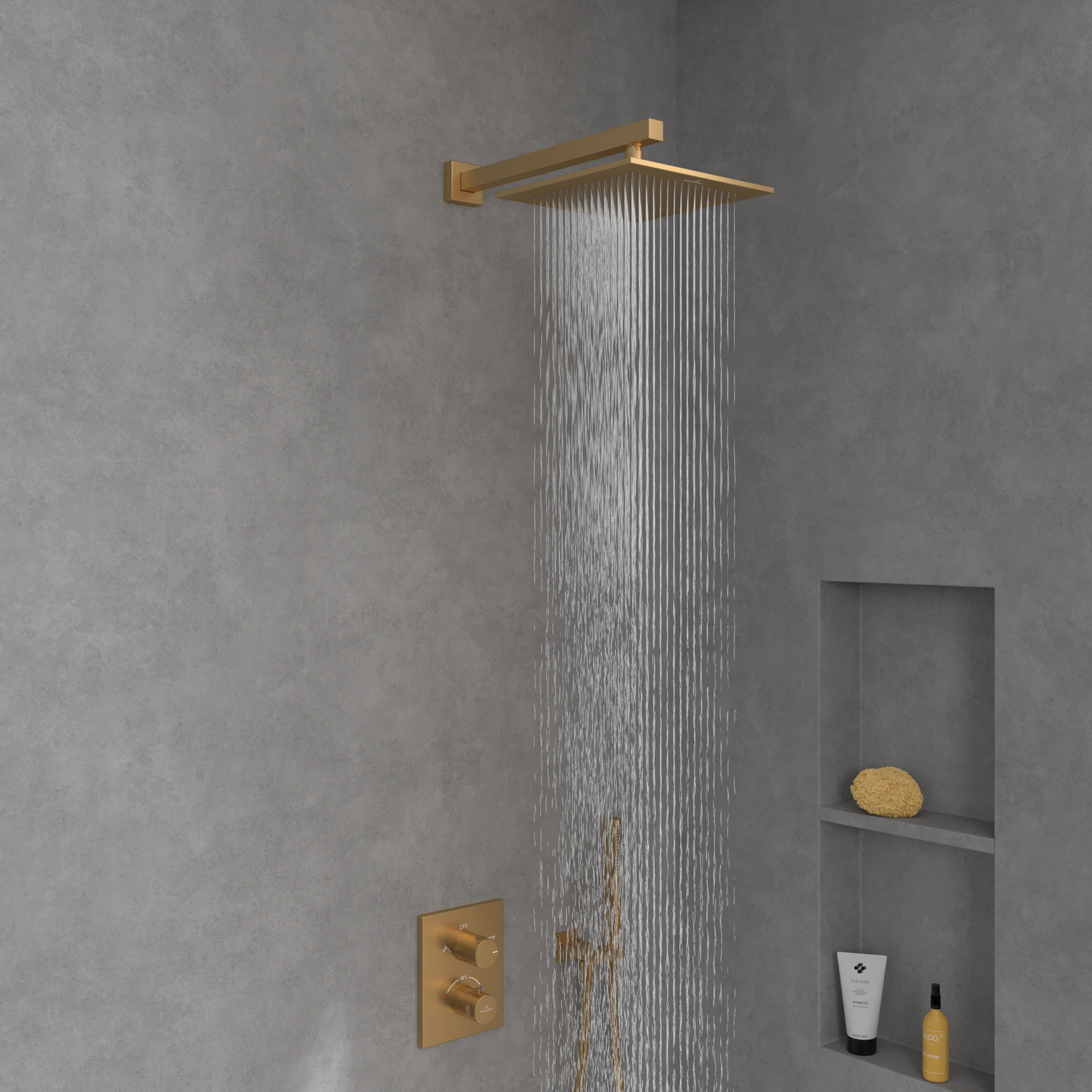 Universal Showers Ciel de pluie, Rectangulaire, Brushed Gold