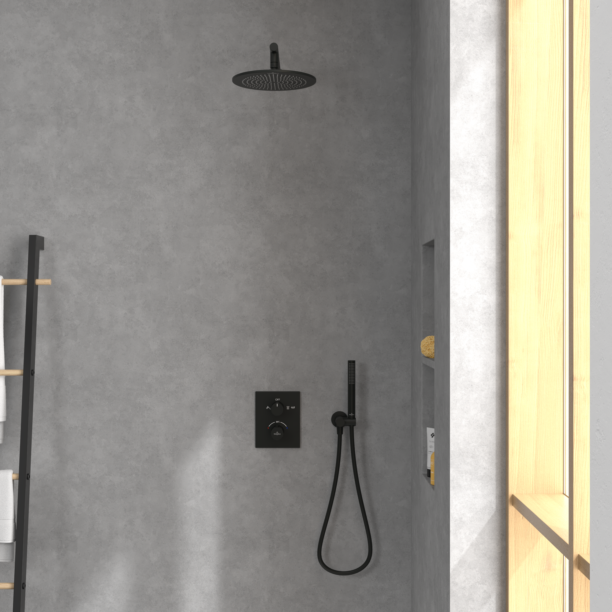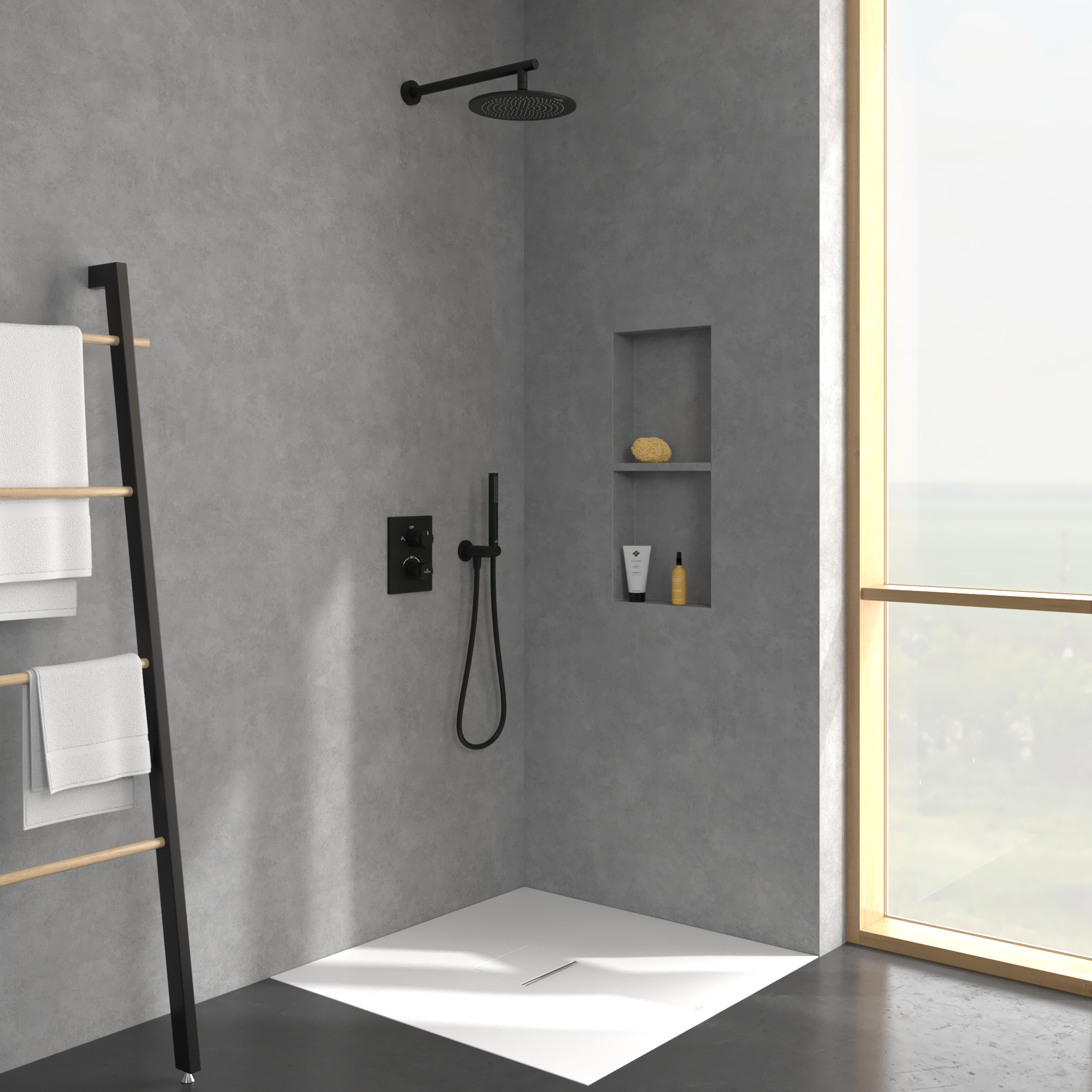 Universal Showers Ciel de pluie, Rond, Matt Black