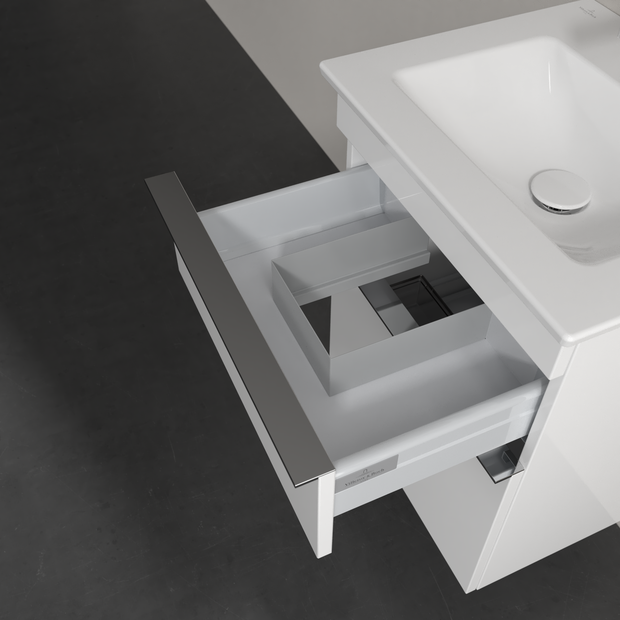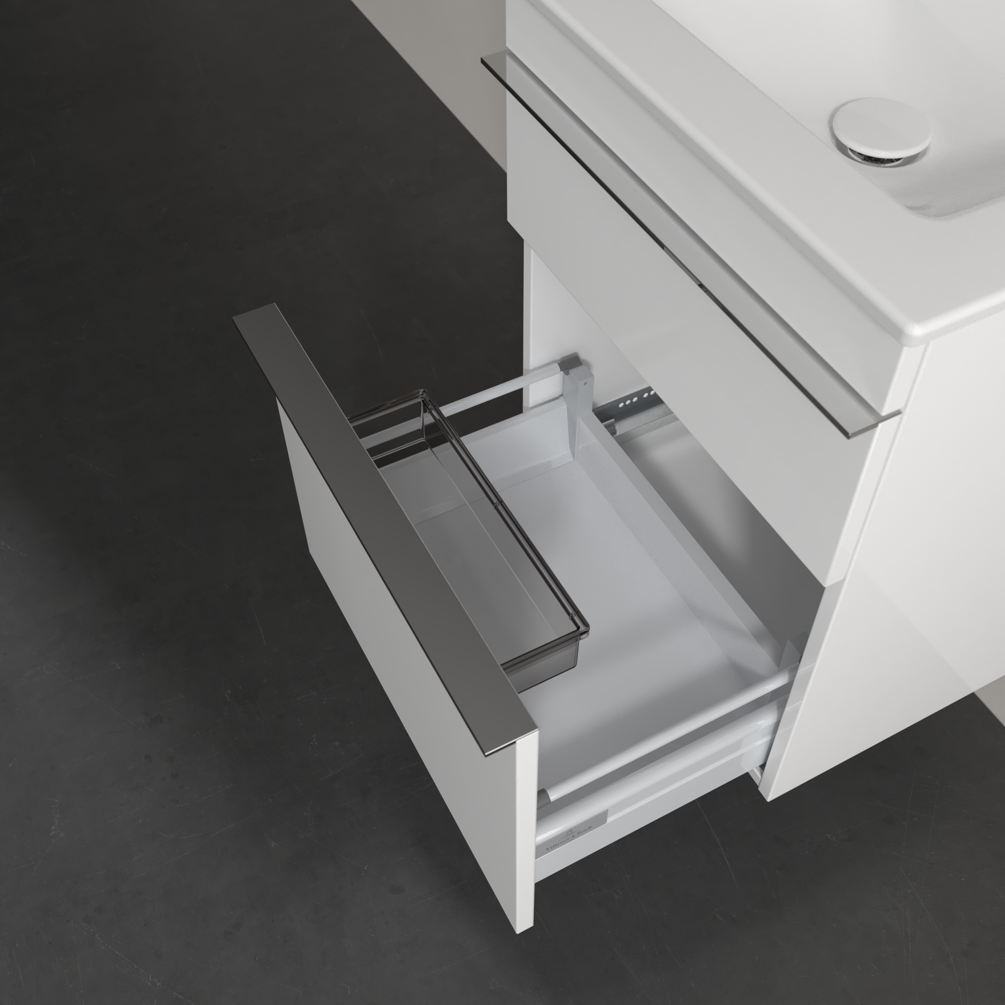 Venticello Meuble sous plan, 2 tiroirs sur rails, 466x590x425mm, Caisson: Glossy White, Façade: Glossy White