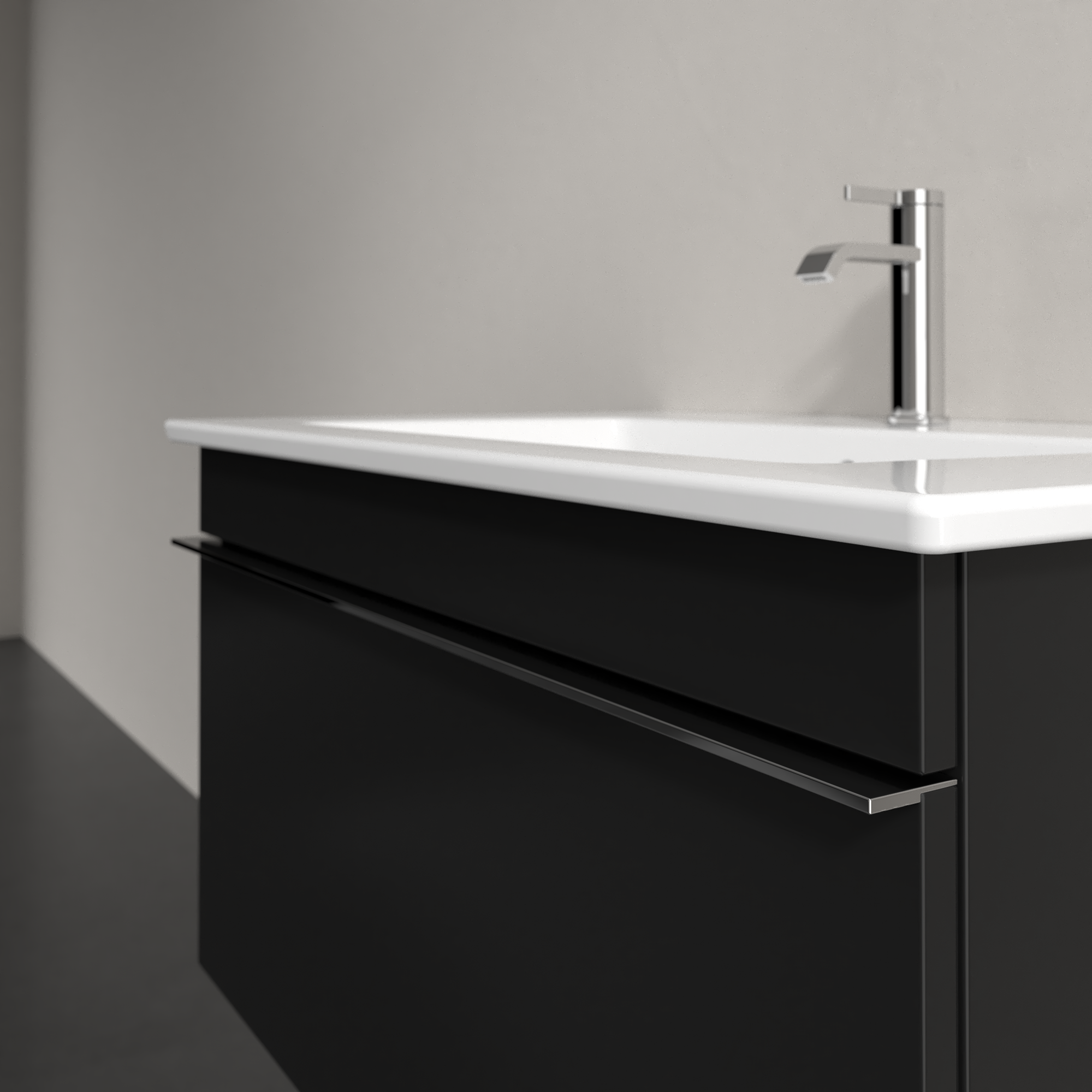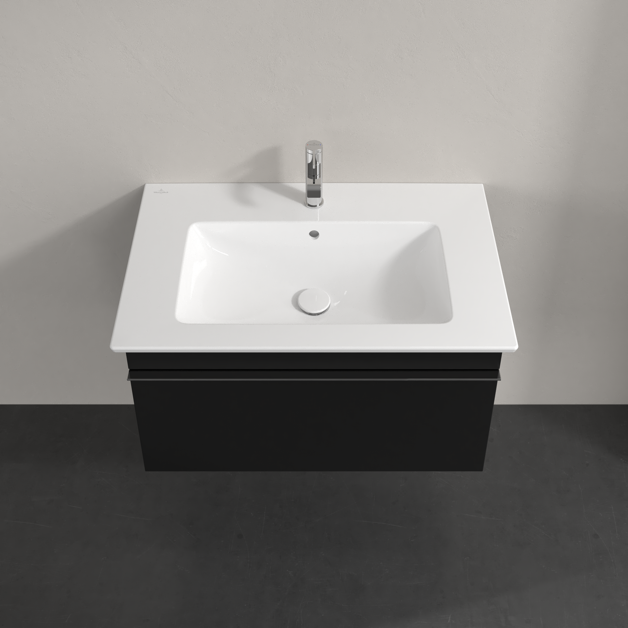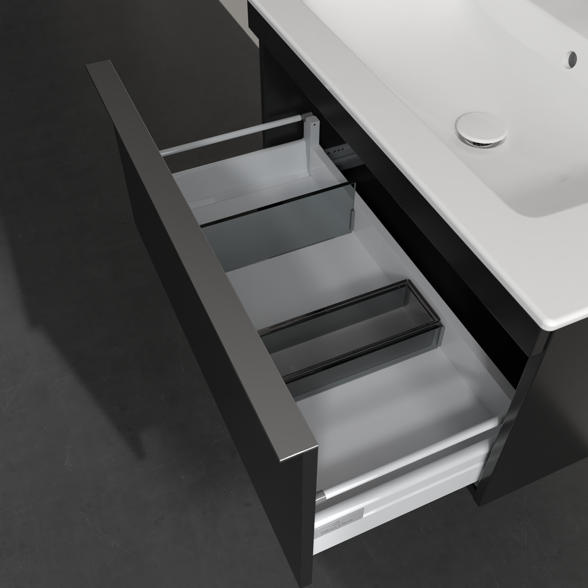 Venticello Meuble sous plan, 1 tiroir sur rails, 753x420x477mm, Caisson: Volcano Black, Façade: Volcano Black