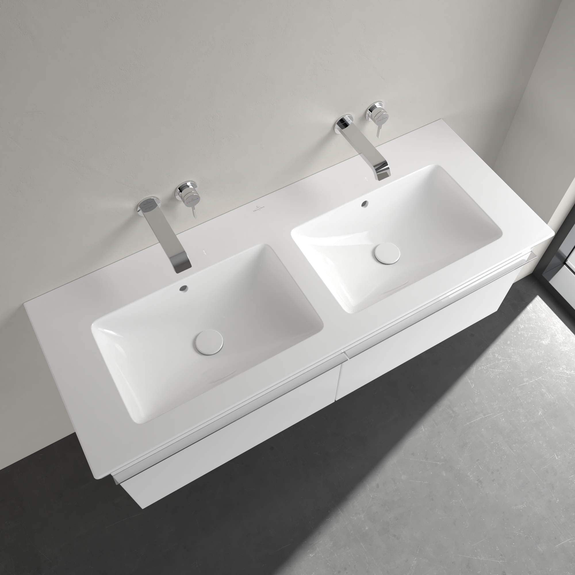 Venticello Plan de toilette double, 1300x500x170mm, avec trop-plein, Blanc CeramicPlus