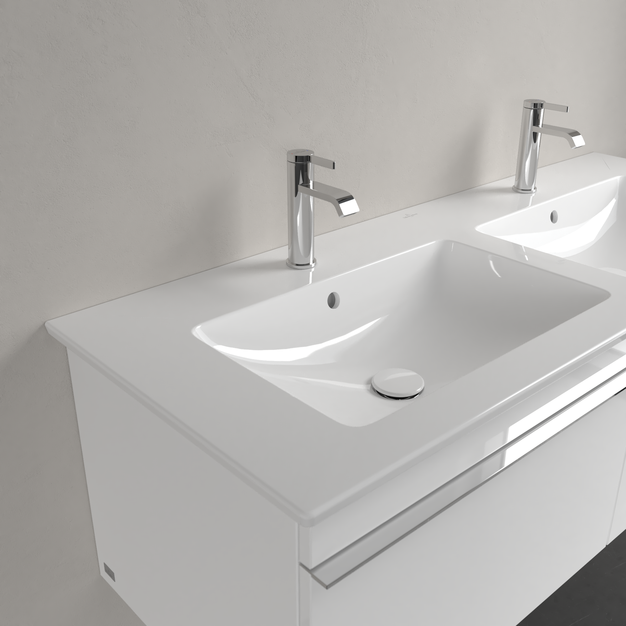 Venticello Plan de toilette double, 1300x500x170mm, avec trop-plein, Blanc
