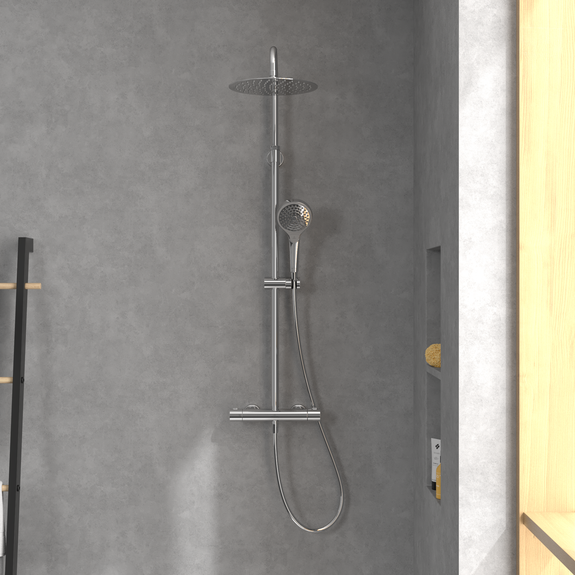 Verve Showers Système de douche avec trois fonctions, pour montage mural, Chrome