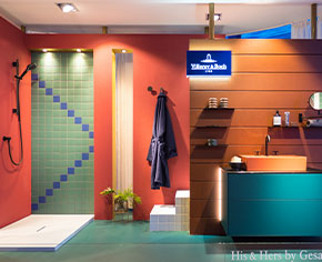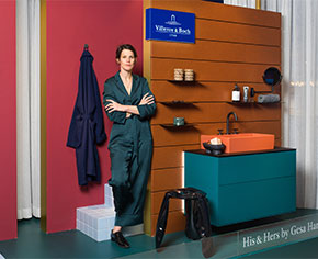 Dans le contexte du débat sur les genres et la parité, la designer Gesa Hansen, qui collabore depuis plusieurs années déjà avec Villeroy & Boch, s’est intéressée au thème « salle de bains pour les hommes/salles de bains pour les femmes », qui inclut également des aspects du Colour Blocking. Le fruit de son travail est le concept de salles de bains « His & Hers », qui a été présenté sur le stand de Villeroy & Boch sur le salon ISH 2019 de Francfort sous forme de mise en scène artistique.