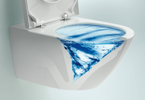 TwistFlush est un système de chasse d’eau de WC innovant qui assure un rinçage optimal tout en économisant une grande quantité d’eau. Cette chasse d’eau nettoie de manière très hygiénique et pratiquement sans laisser de résidus grâce à la puissance de son tourbillon d’eau :