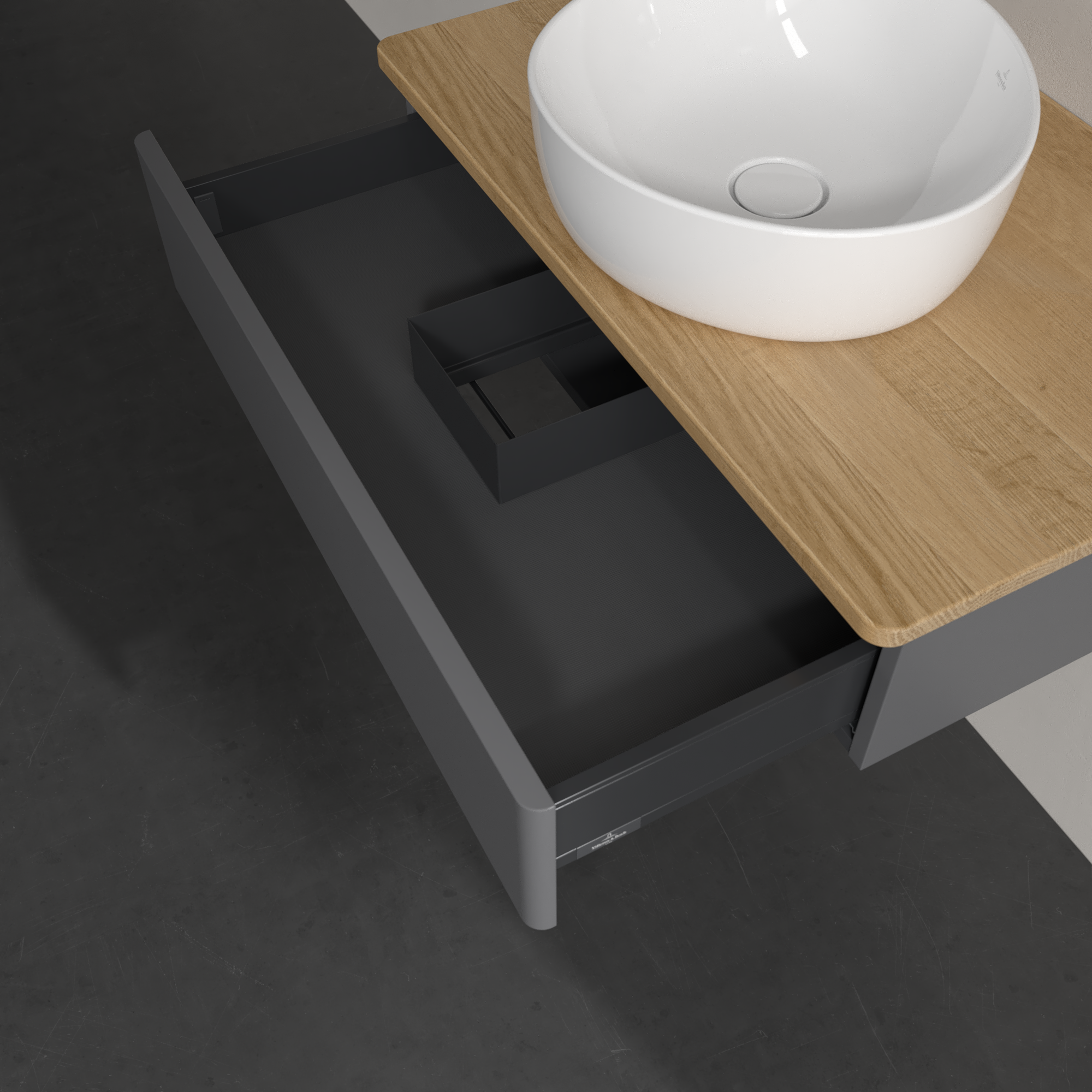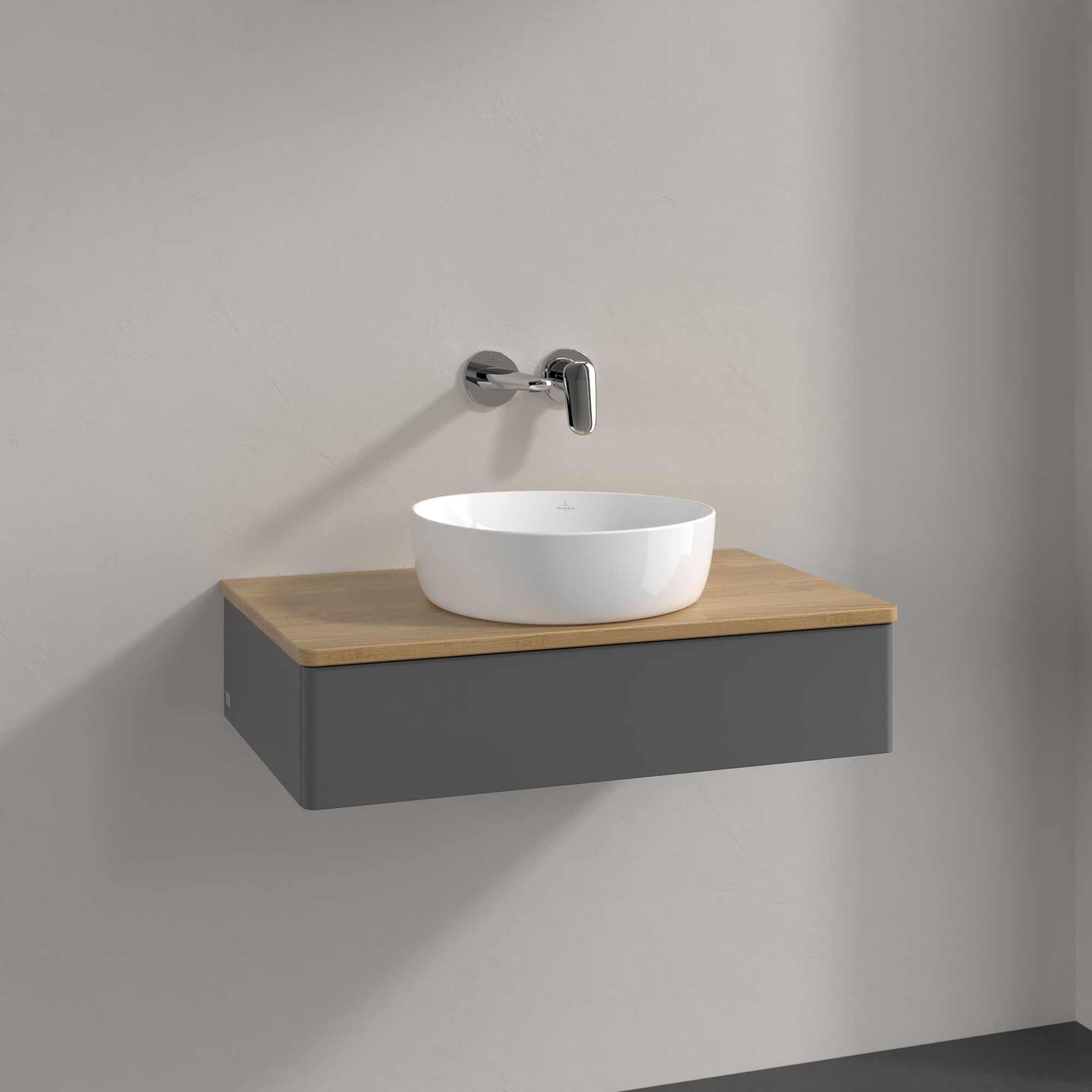 Antao Meuble sous plan, 1 tiroir sur rails, 800x190x500mm, Façade sans structure, Caisson: Anthracite Matt Lacquer, Façade: Anthracite Matt Lacquer, Plaque de recouvrement: Honey Oak