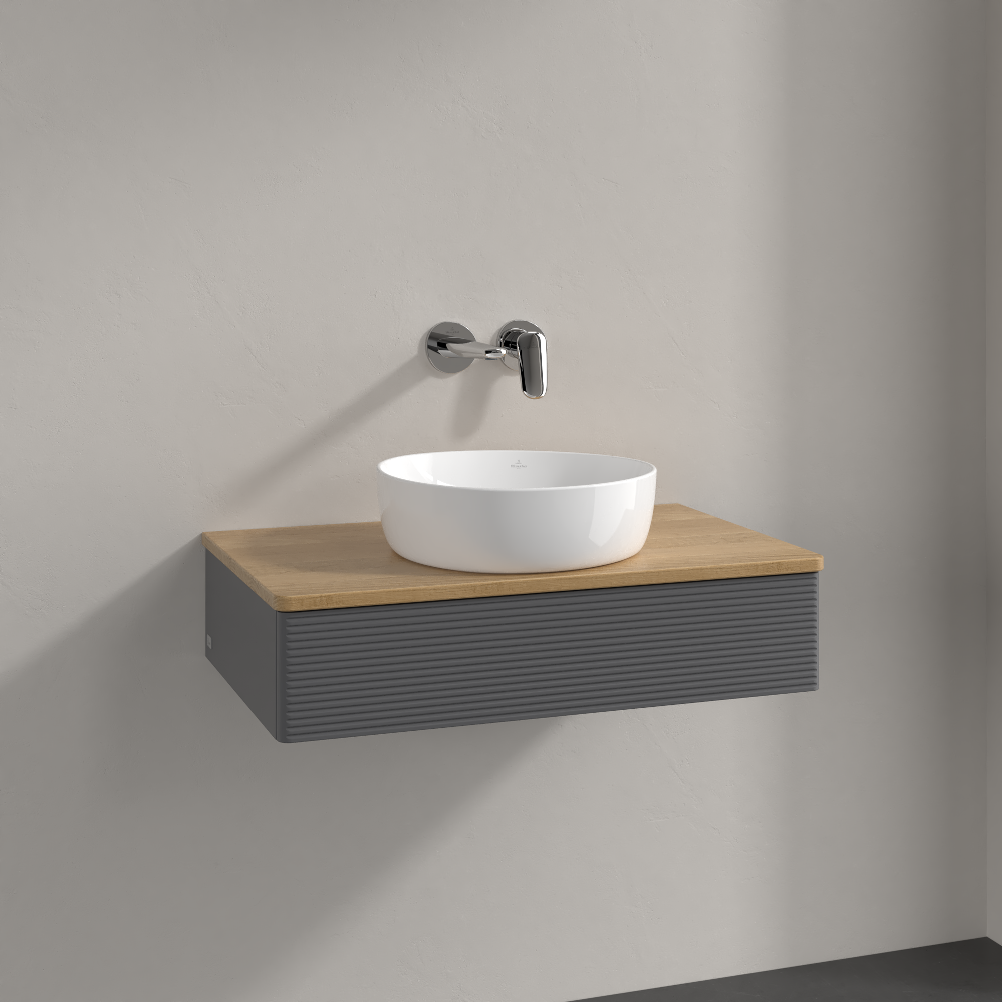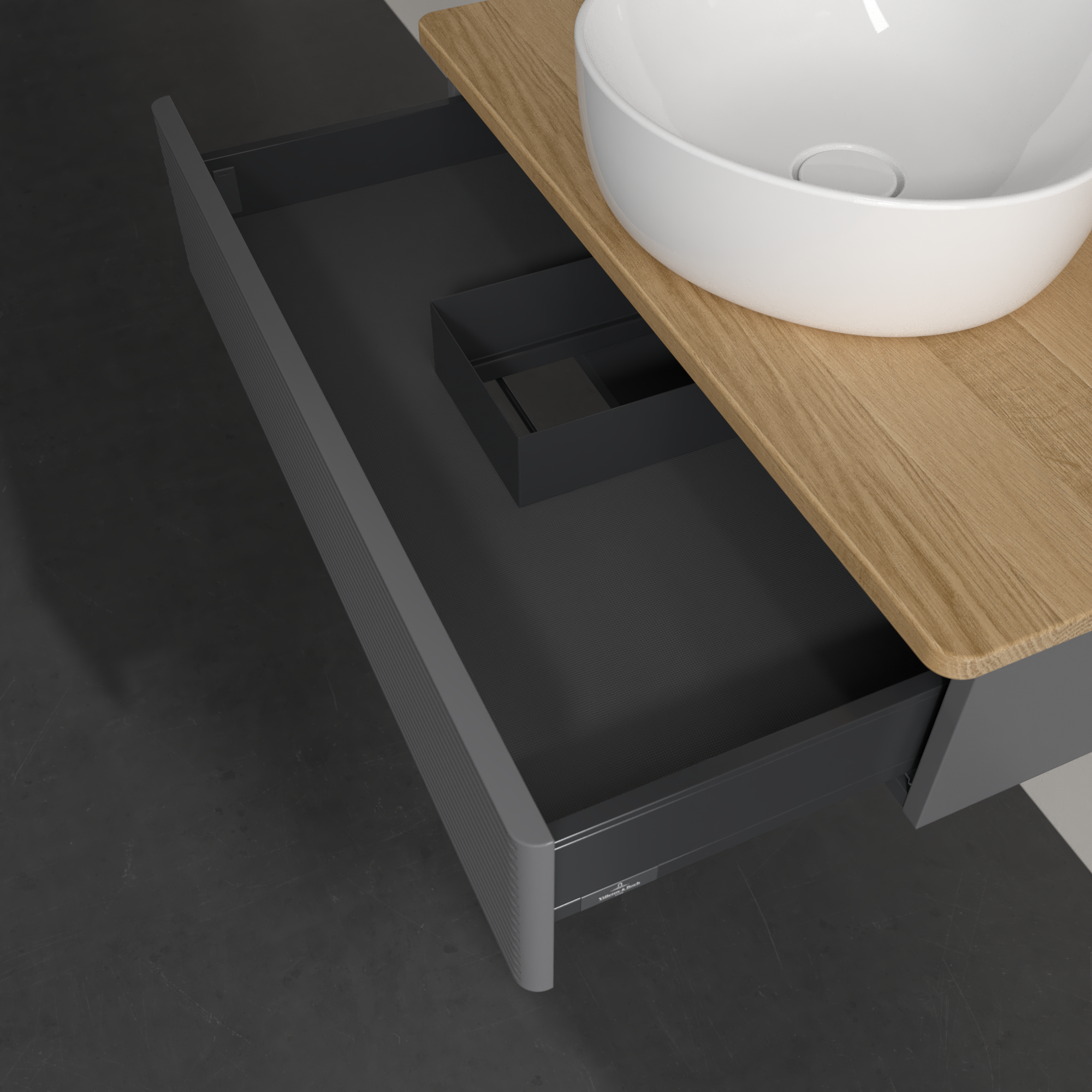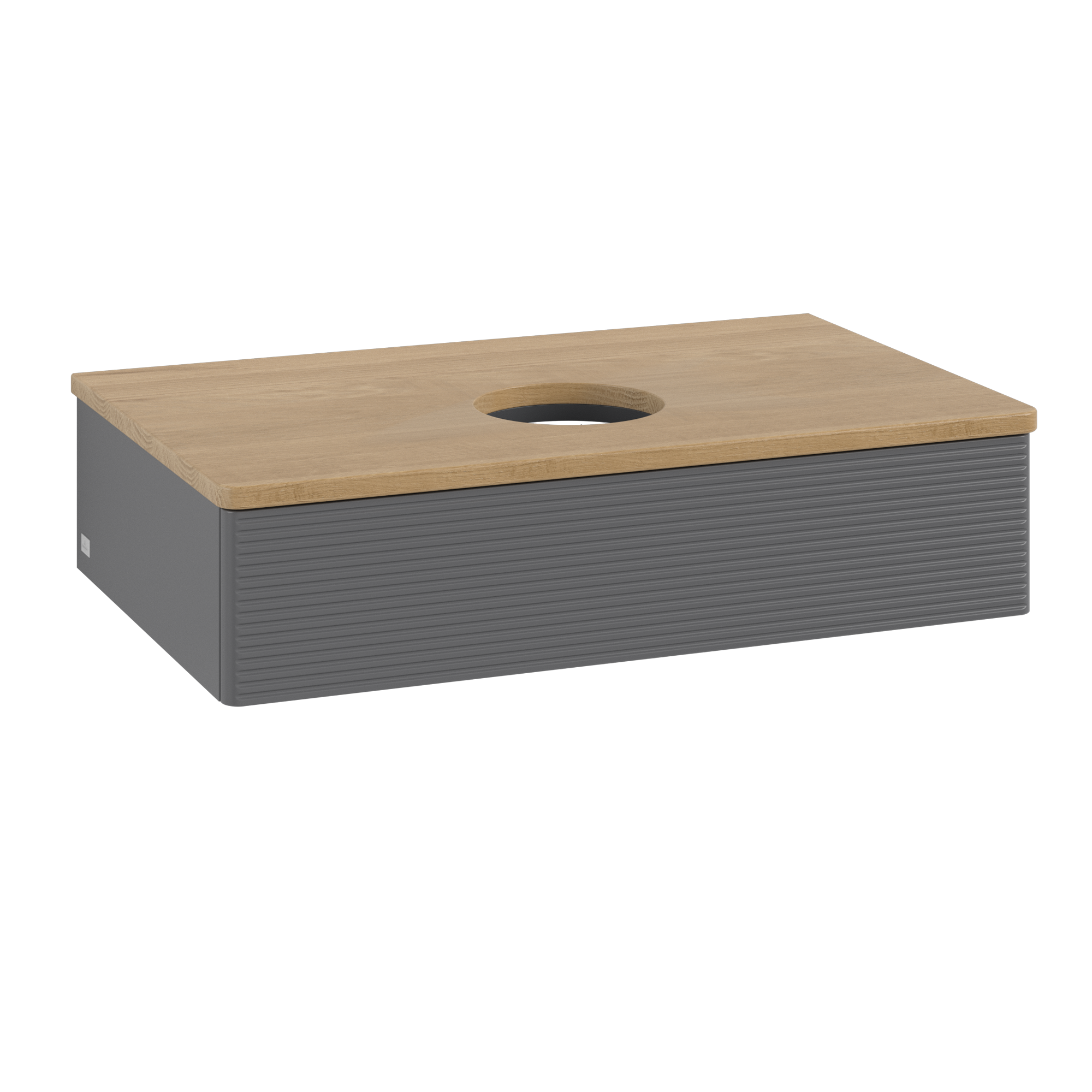 Antao Meuble sous plan, 1 tiroir sur rails, 800x190x500mm, Façade avec structure, Caisson: Anthracite Matt Lacquer, Façade: Anthracite Matt Lacquer, Plaque de recouvrement: Honey Oak