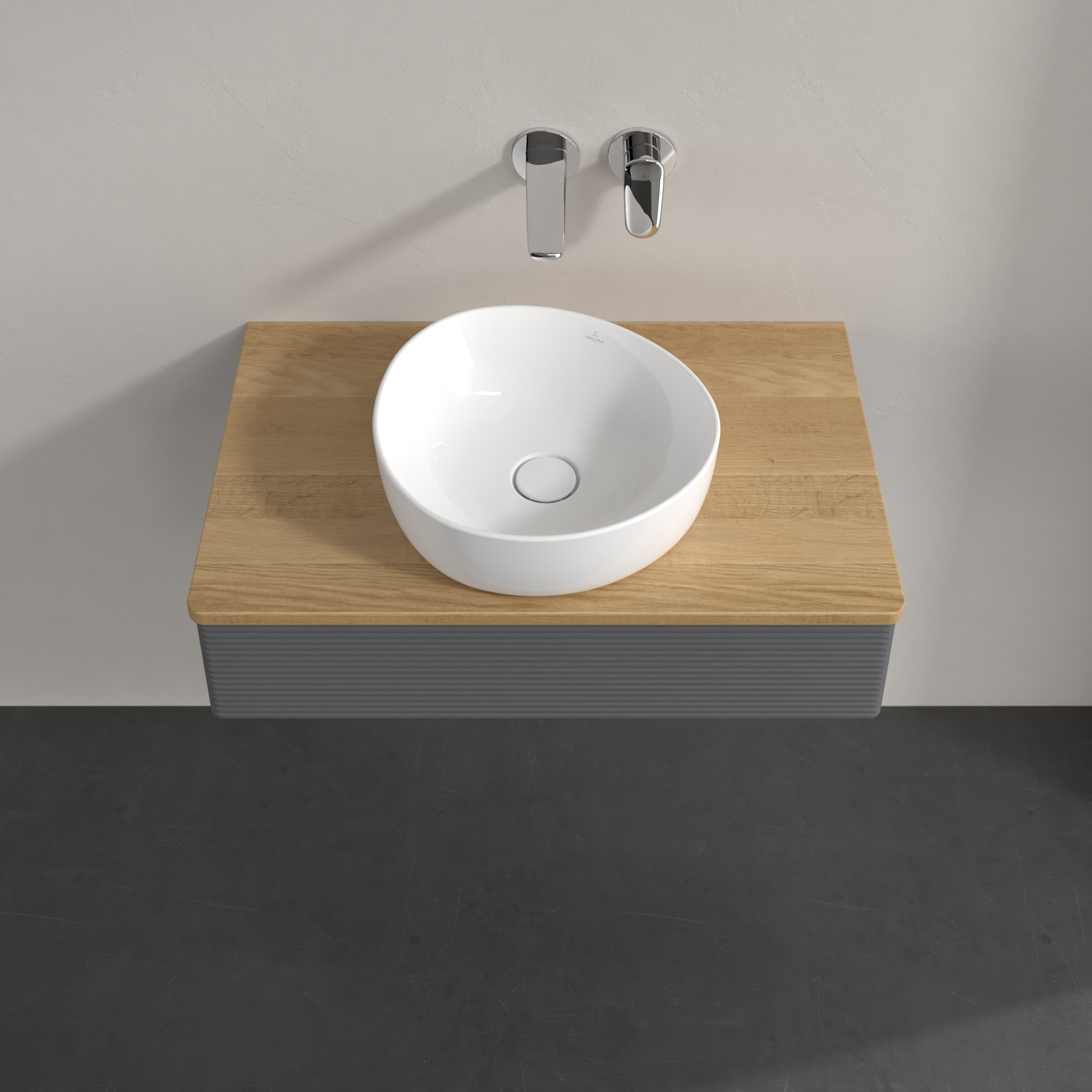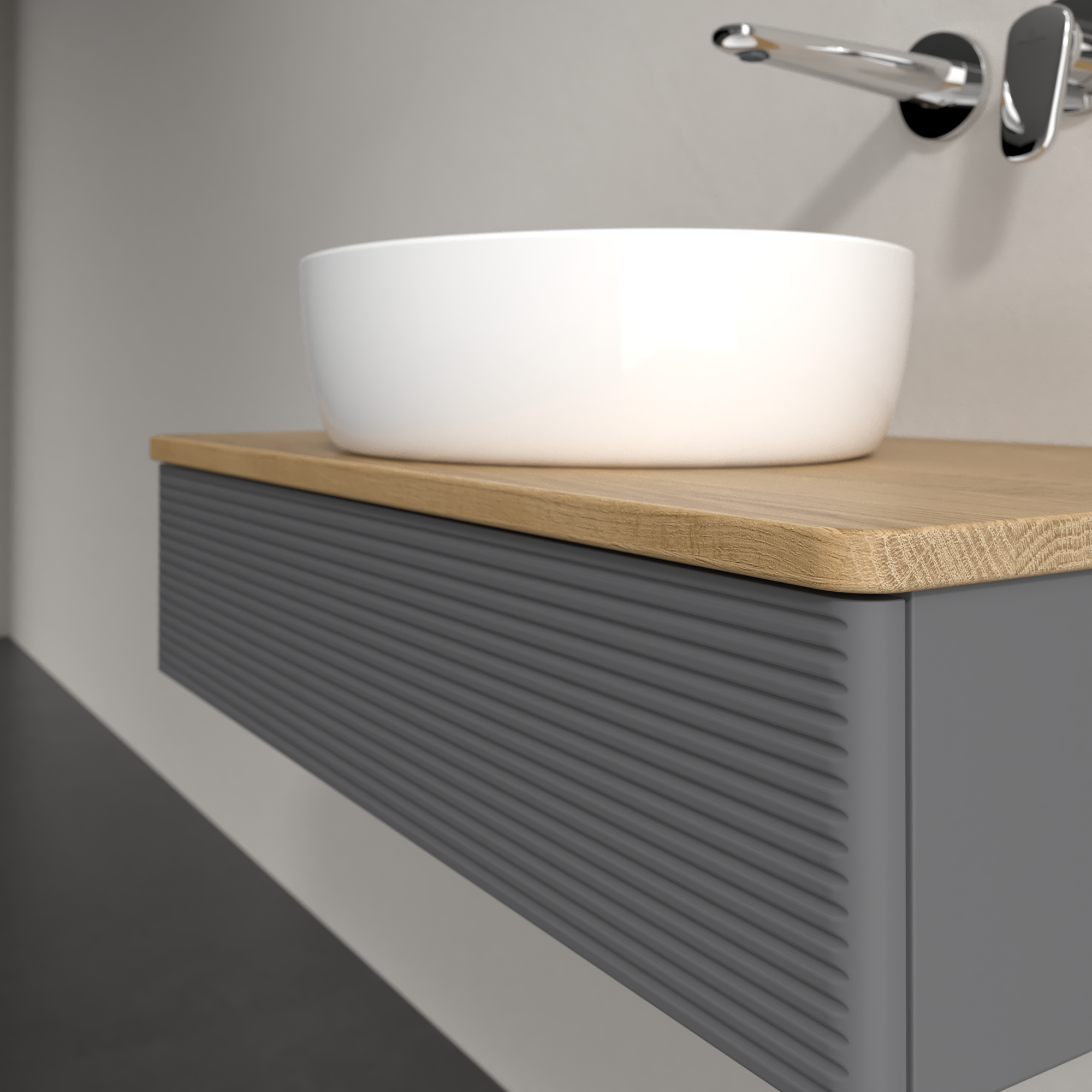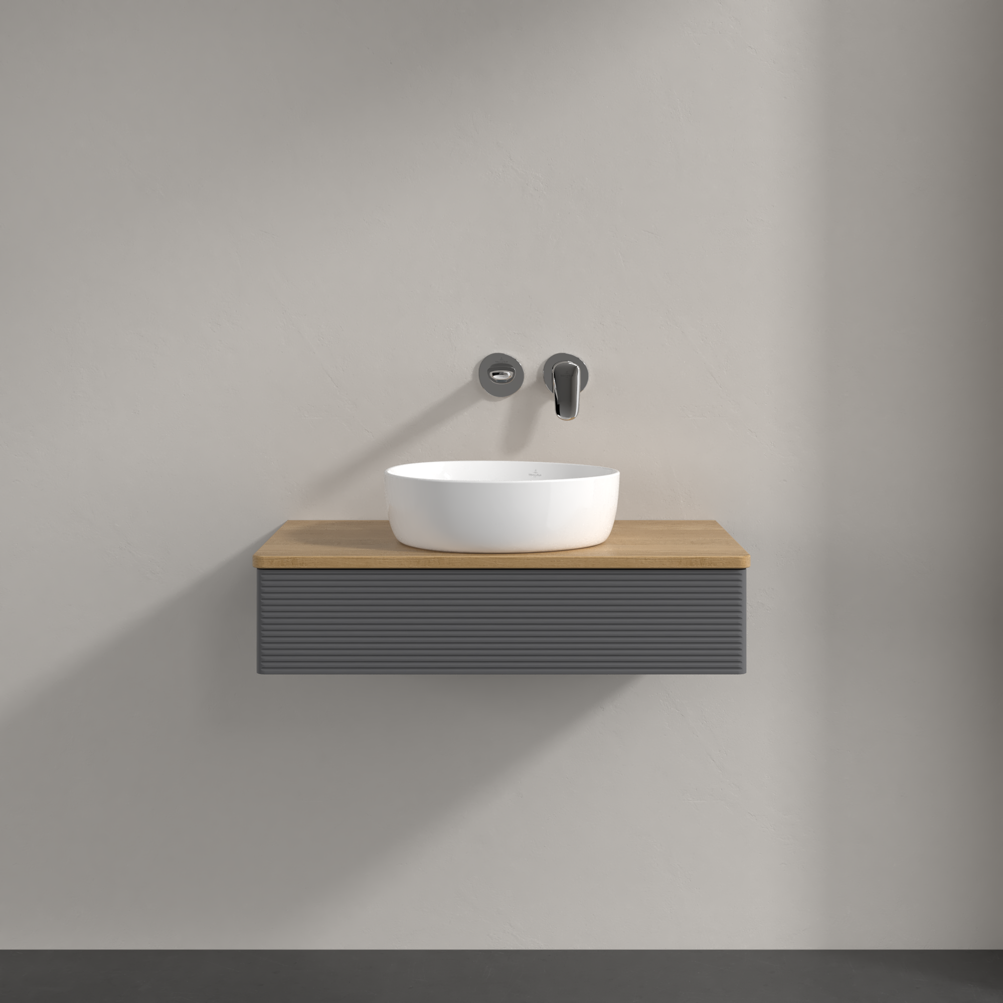 Antao Meuble sous plan, 1 tiroir sur rails, 800x190x500mm, Façade avec structure, Caisson: Anthracite Matt Lacquer, Façade: Anthracite Matt Lacquer, Plaque de recouvrement: Honey Oak