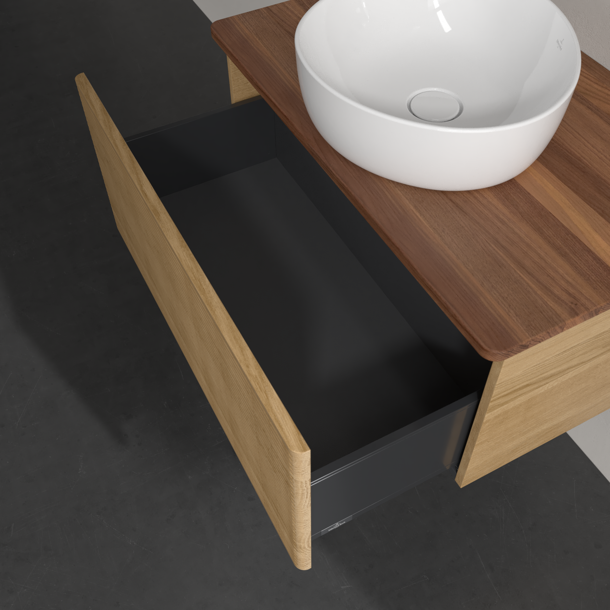 Antao Meuble sous plan, 1 tiroir sur rails, 800x360x500mm, Façade avec structure, Caisson: Honey Oak, Façade: Honey Oak, Plaque de recouvrement: Warm Walnut