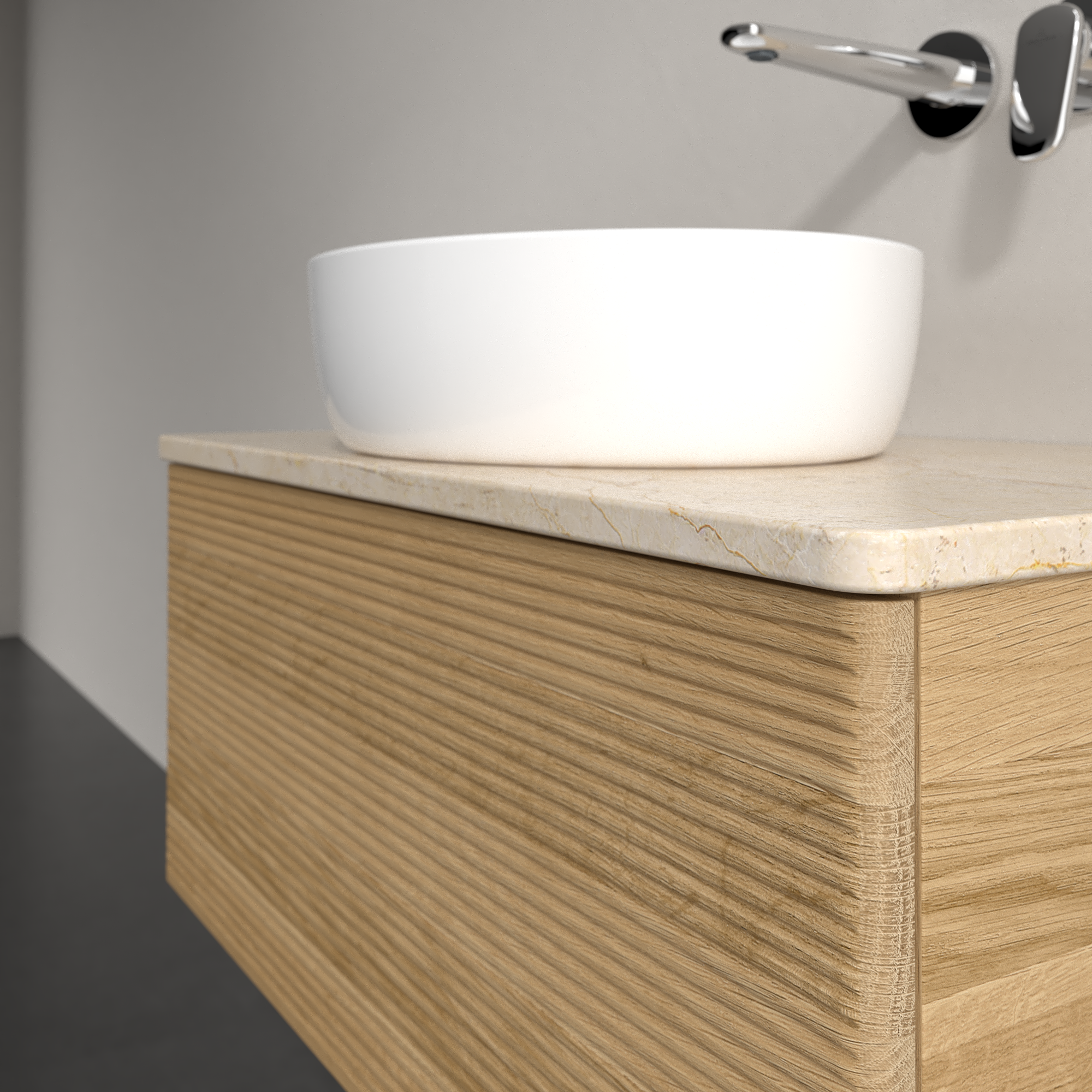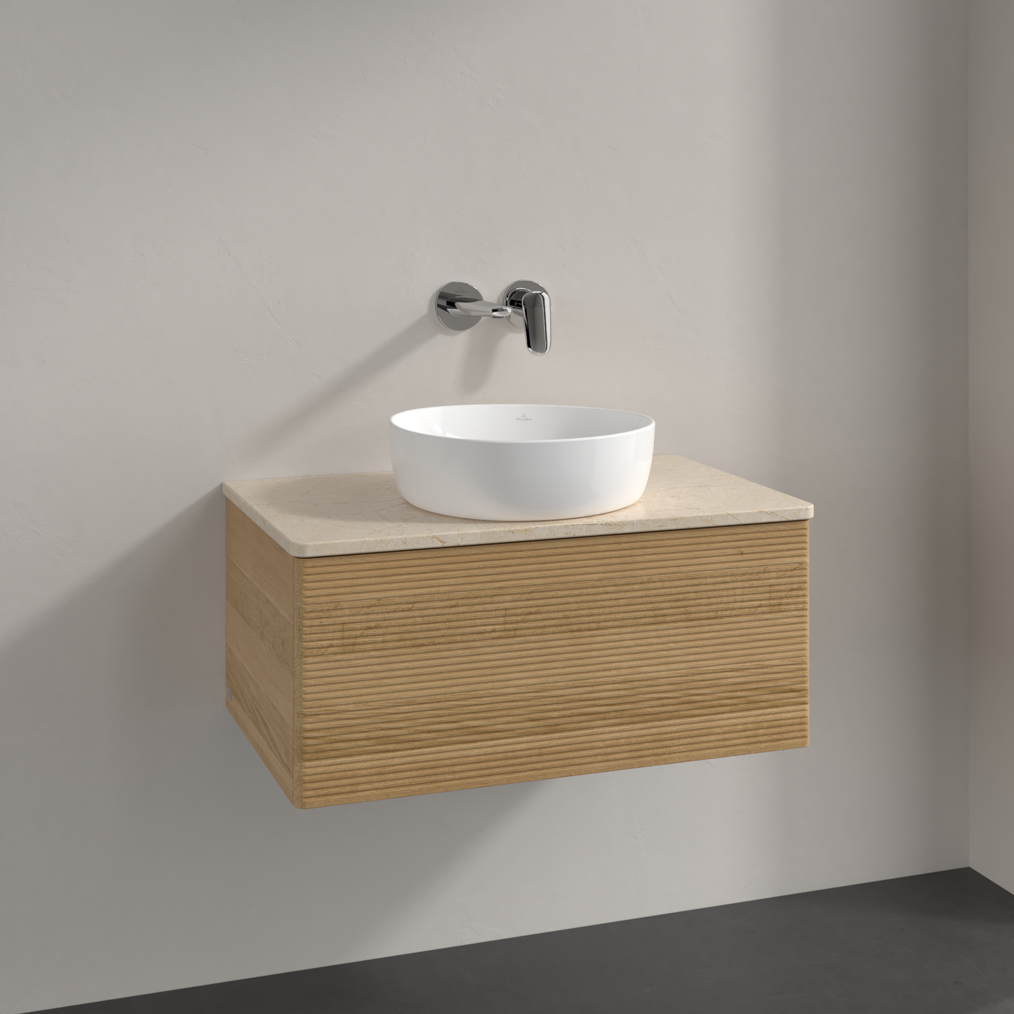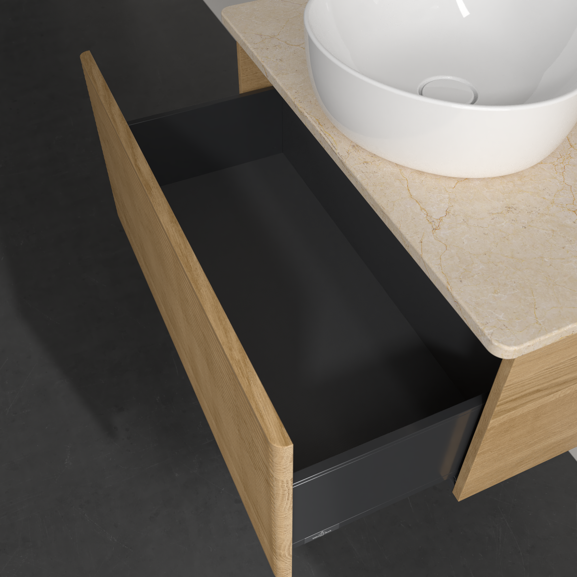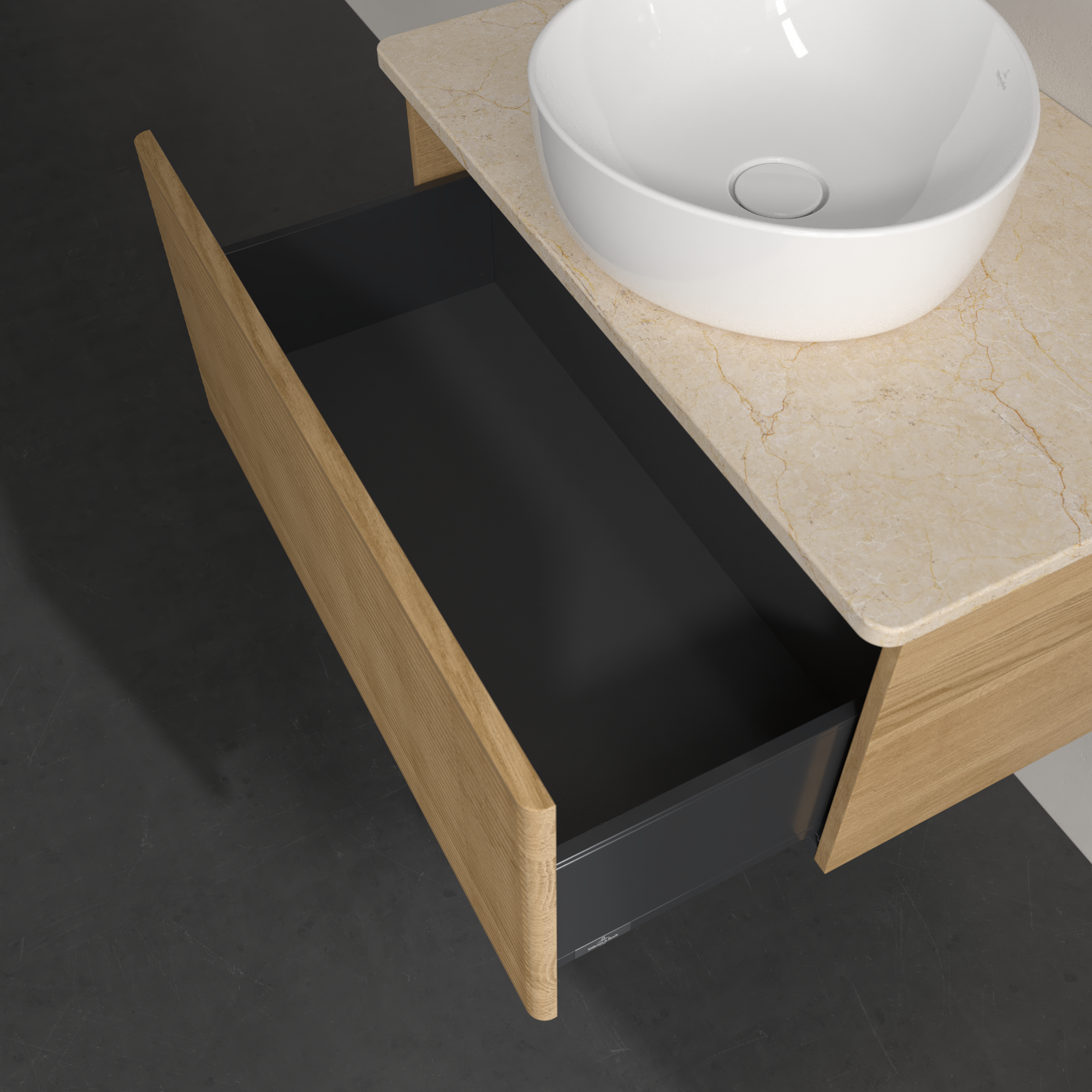 Antao Meuble sous plan, 1 tiroir sur rails, 800x360x500mm, Façade avec structure, Caisson: Honey Oak, Façade: Honey Oak, Plaque de recouvrement: Botticino