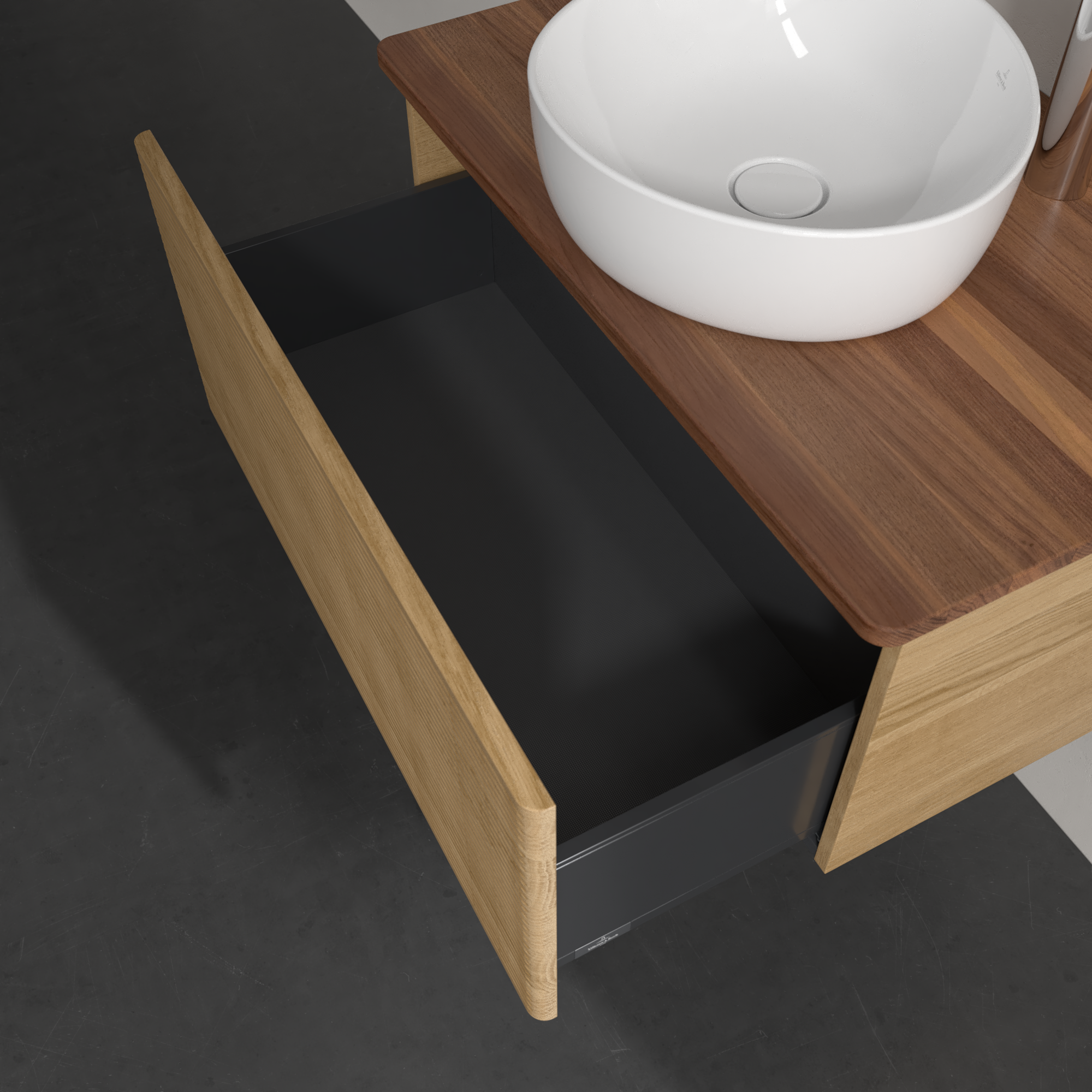 Antao Meuble sous plan, 1 tiroir sur rails, 800x360x500mm, Façade avec structure, Caisson: Honey Oak, Façade: Honey Oak, Plaque de recouvrement: Warm Walnut
