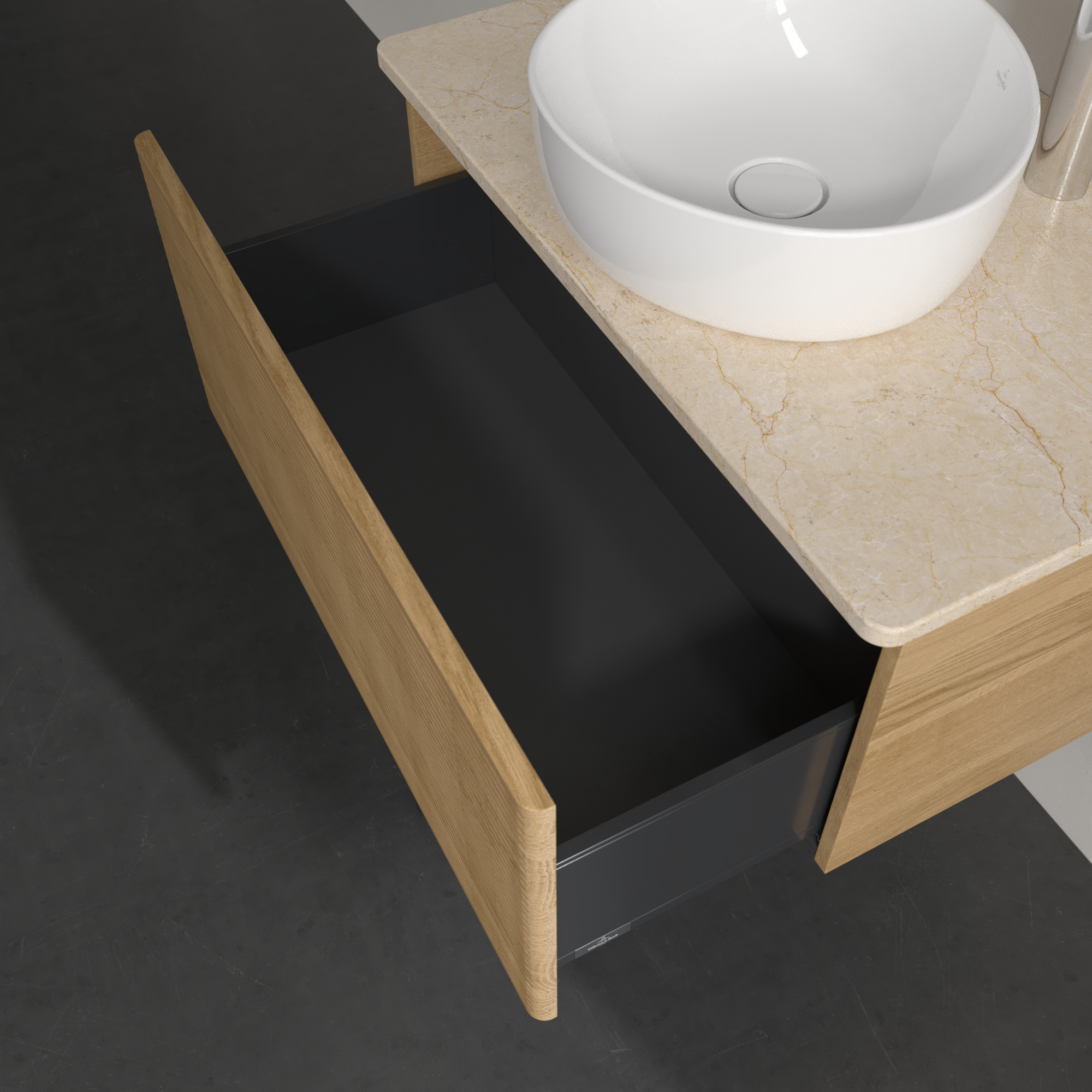 Antao Meuble sous plan, 1 tiroir sur rails, 800x360x500mm, Façade avec structure, Caisson: Honey Oak, Façade: Honey Oak, Plaque de recouvrement: Botticino