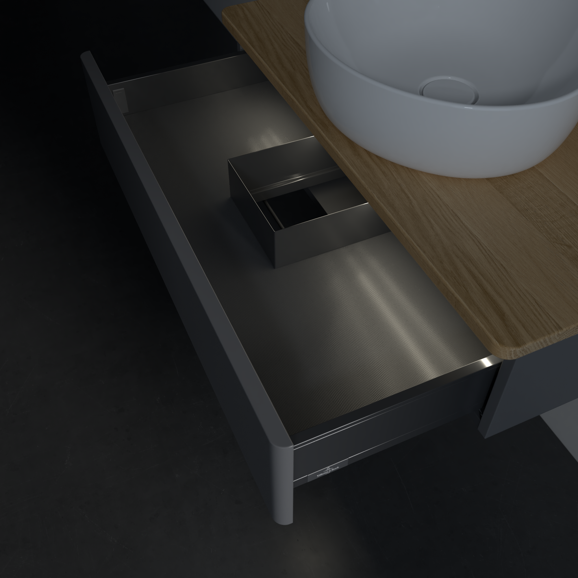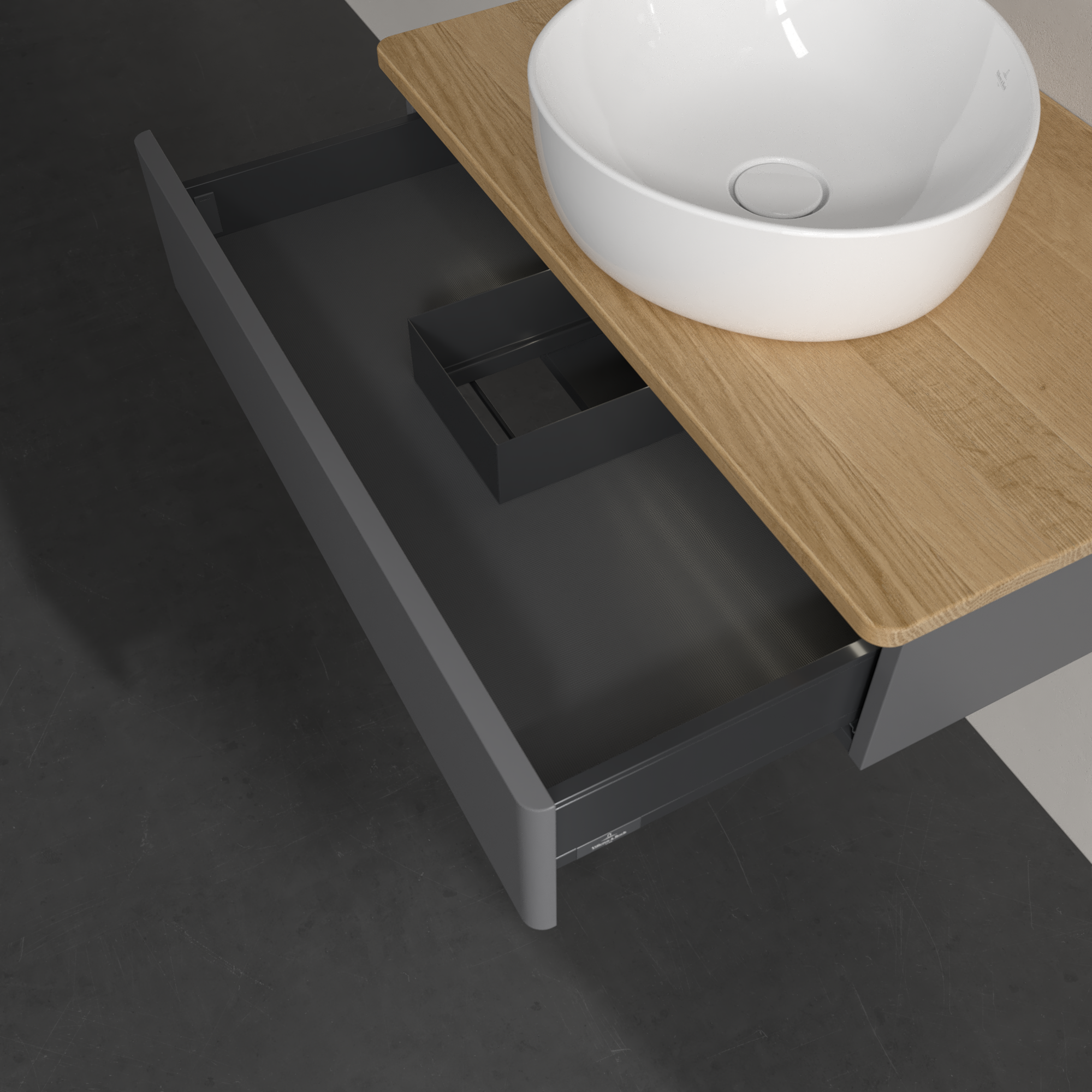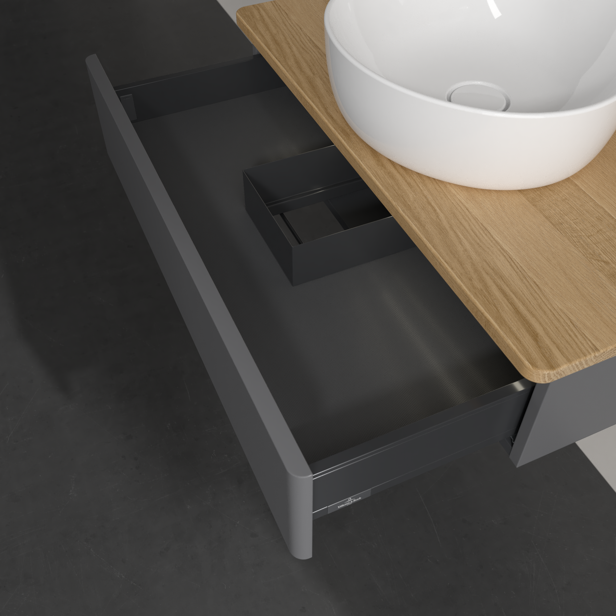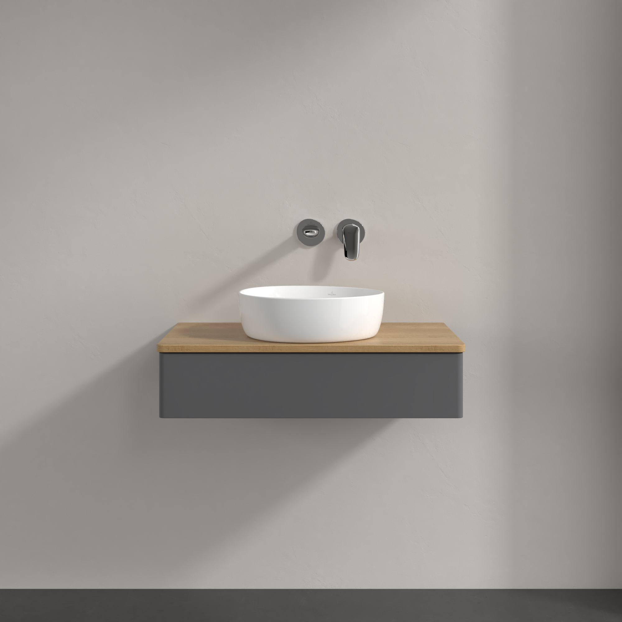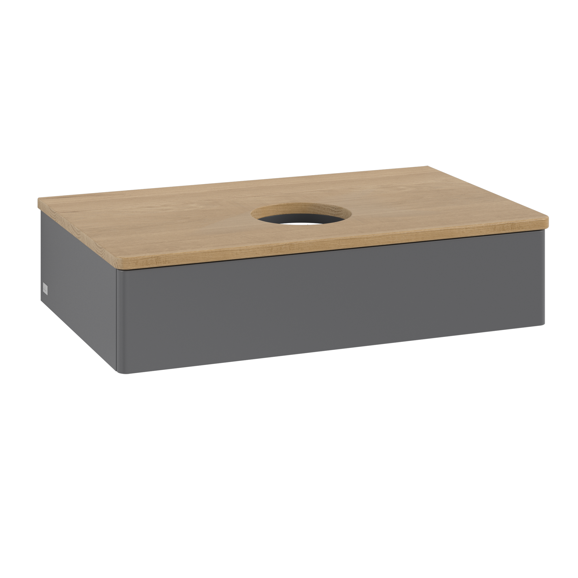 Antao Meuble sous plan, avec éclairage, 1 tiroir sur rails, 800x190x500mm, Façade sans structure, Caisson: Anthracite Matt Lacquer, Façade: Anthracite Matt Lacquer, Plaque de recouvrement: Honey Oak