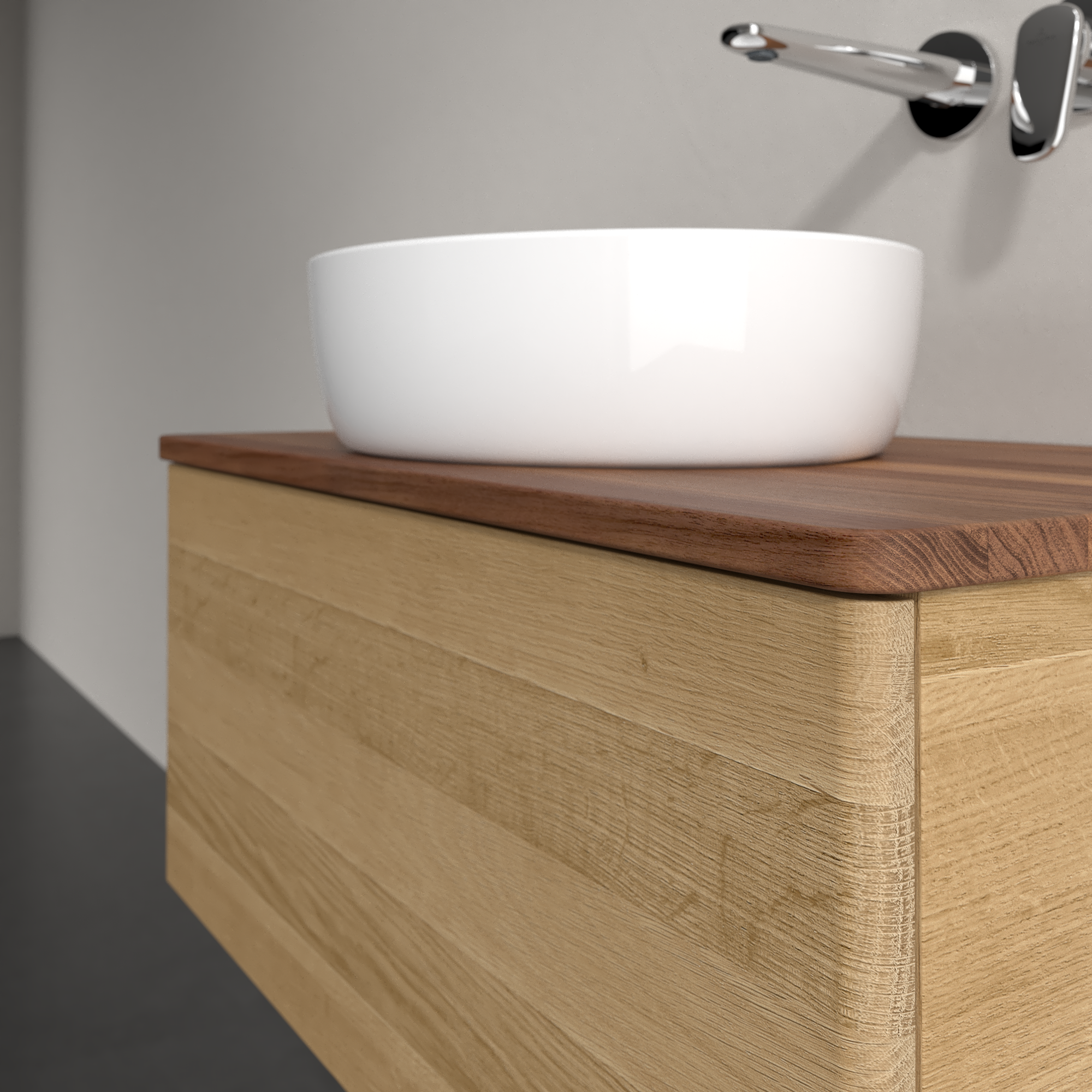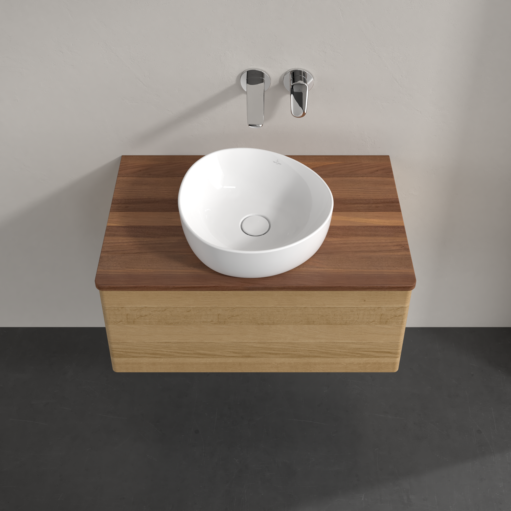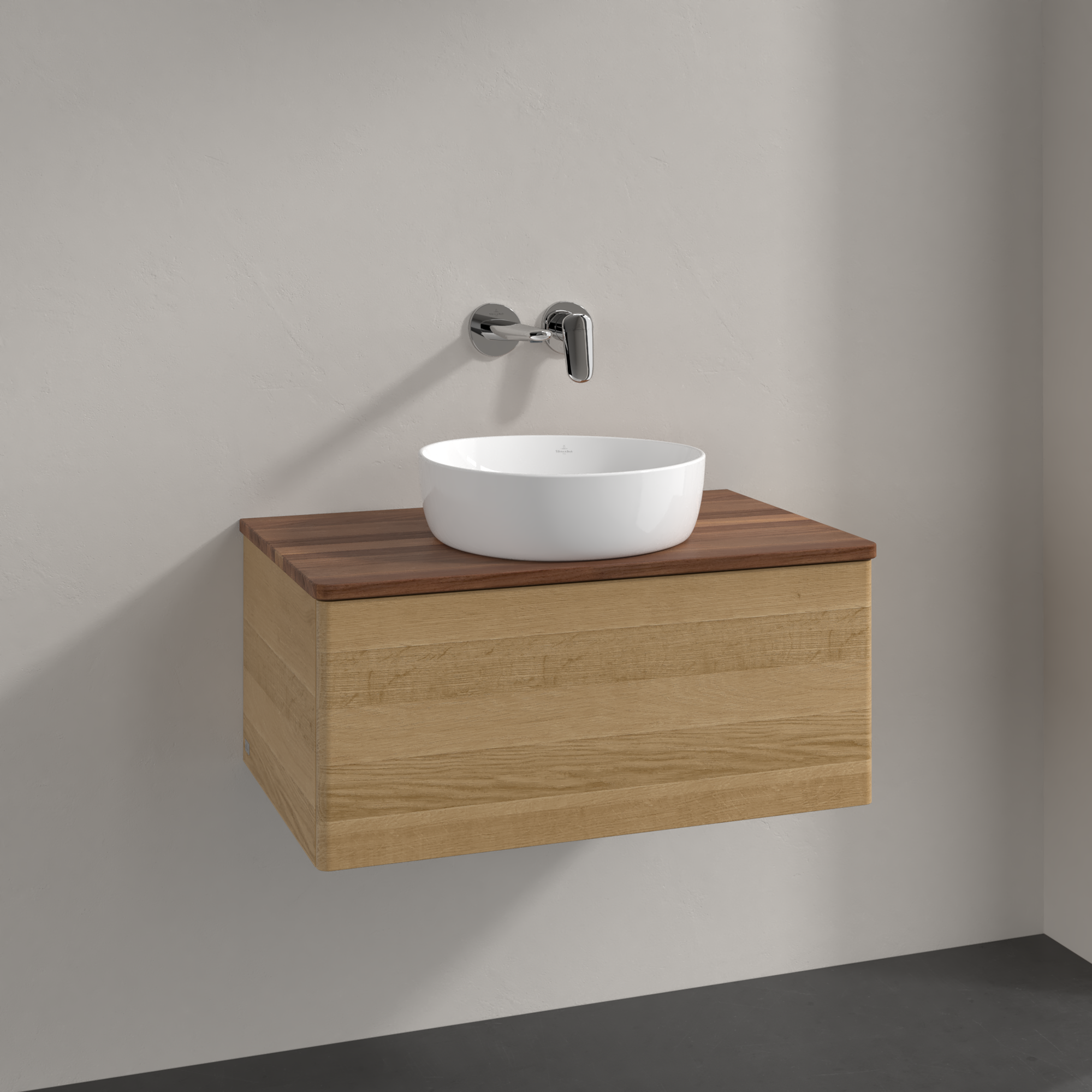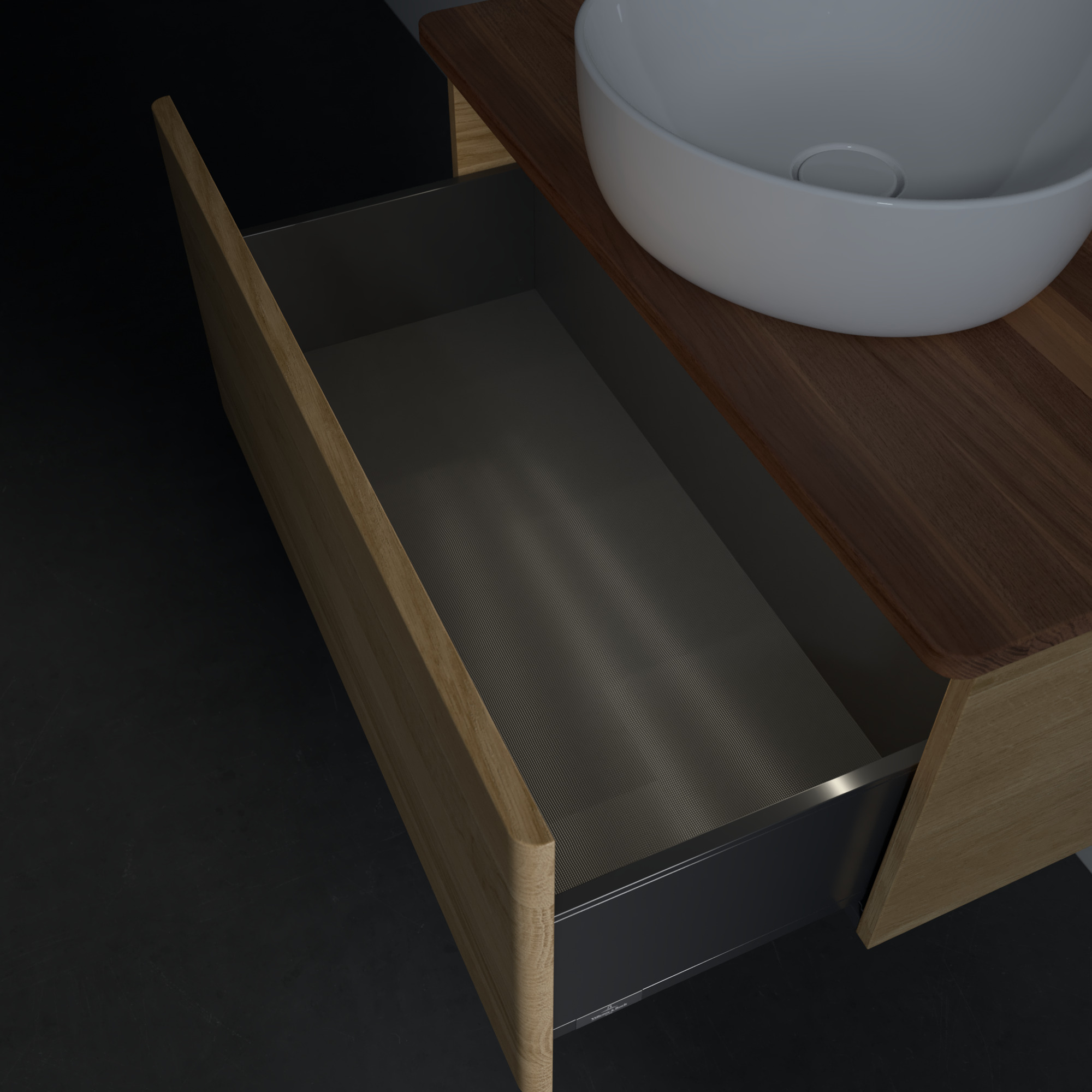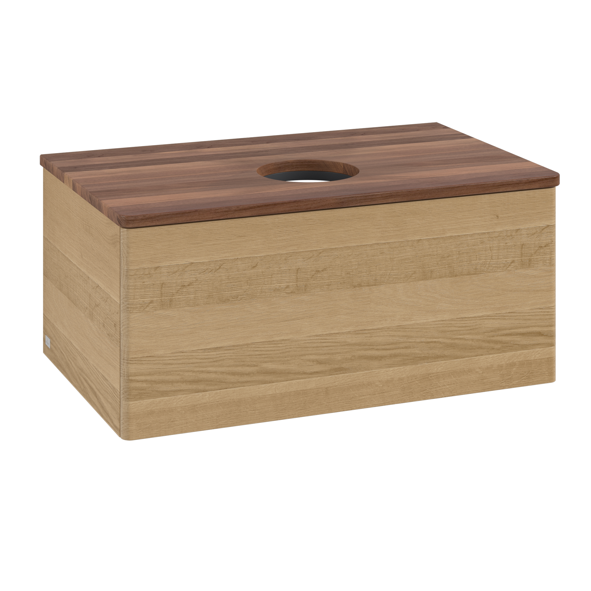 Antao Meuble sous plan, avec éclairage, 1 tiroir sur rails, 800x360x500mm, Façade sans structure, Caisson: Honey Oak, Façade: Honey Oak, Plaque de recouvrement: Warm Walnut
