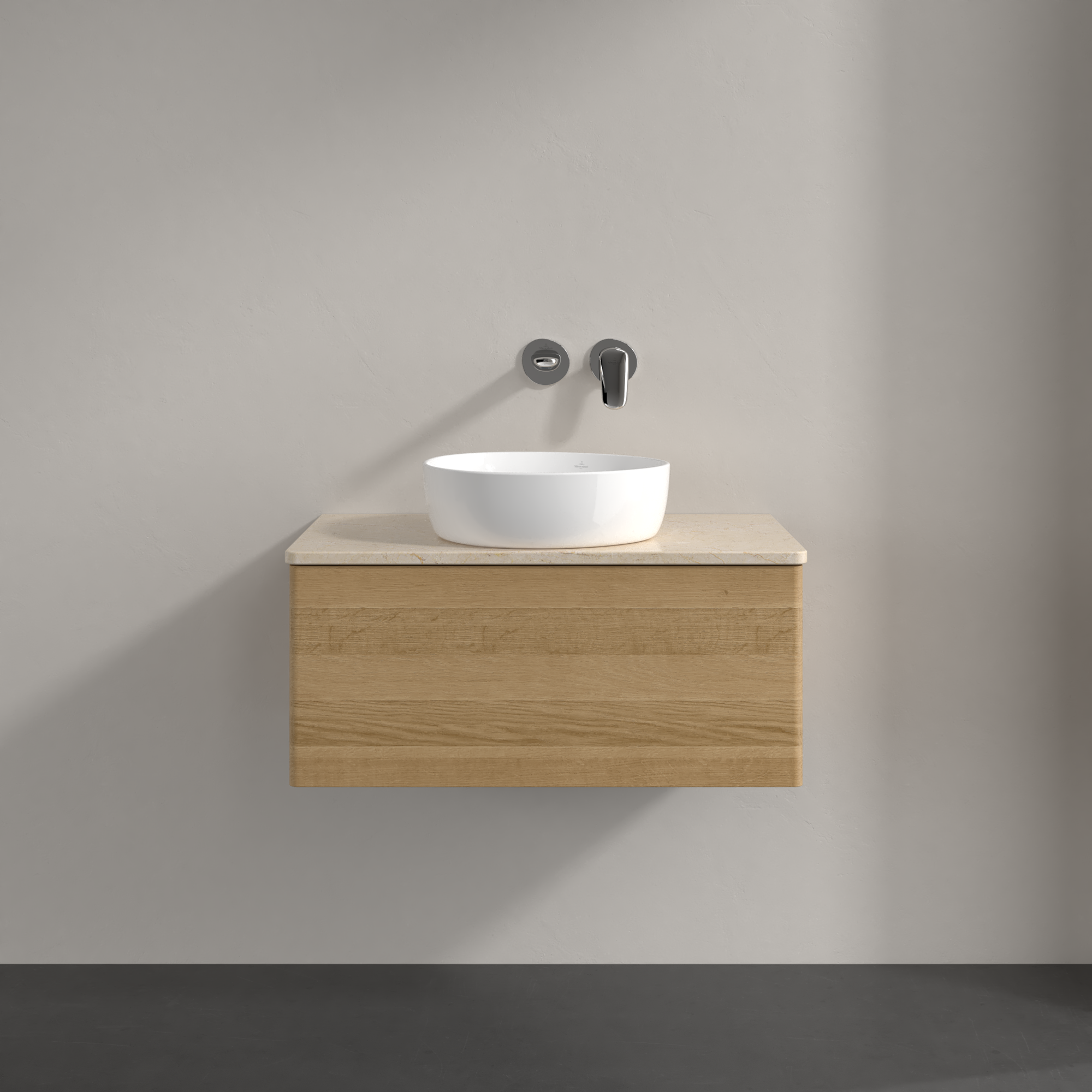 Antao Meuble sous plan, avec éclairage, 1 tiroir sur rails, 800x360x500mm, Façade sans structure, Caisson: Honey Oak, Façade: Honey Oak, Plaque de recouvrement: Botticino