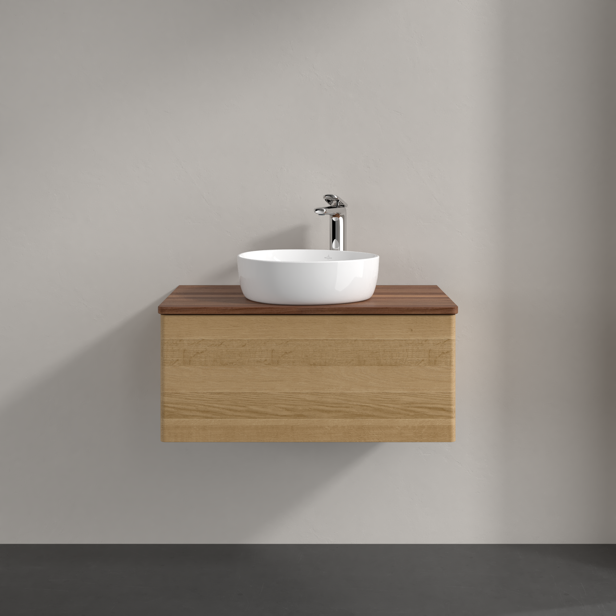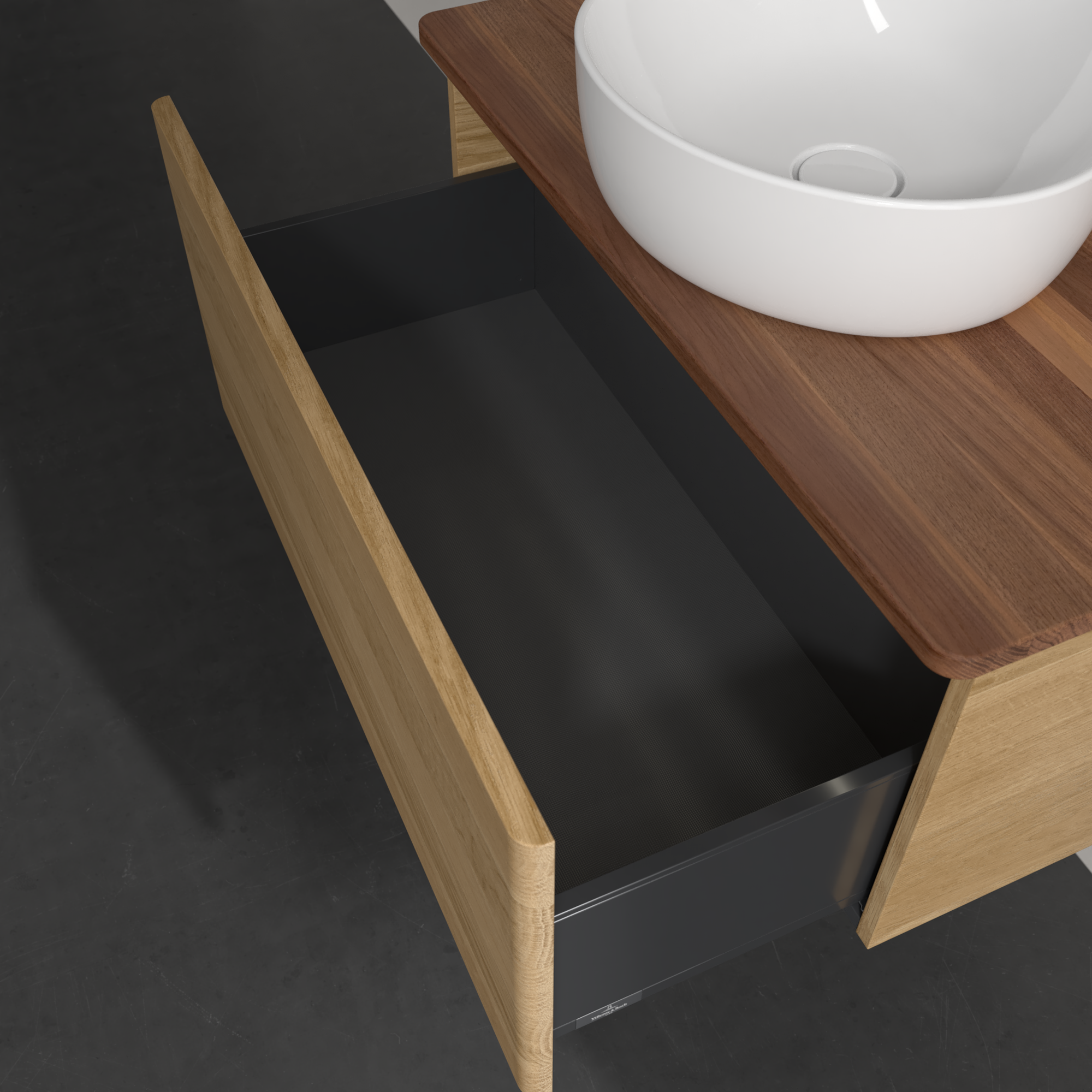 Antao Meuble sous plan, avec éclairage, 1 tiroir sur rails, 800x360x500mm, Façade sans structure, Caisson: Honey Oak, Façade: Honey Oak, Plaque de recouvrement: Warm Walnut