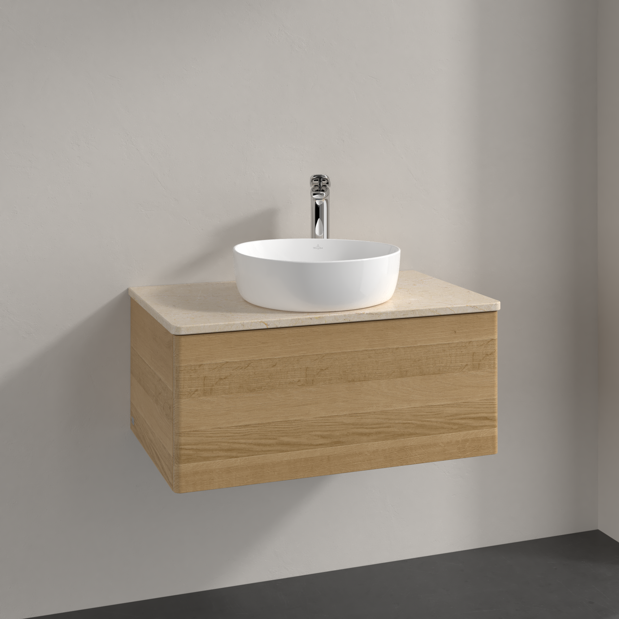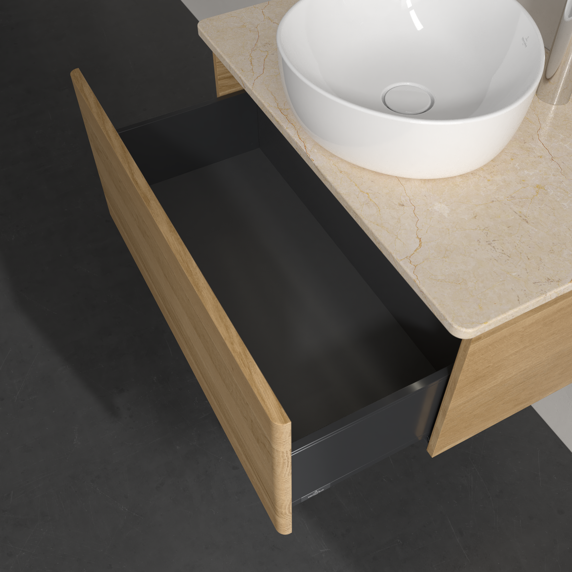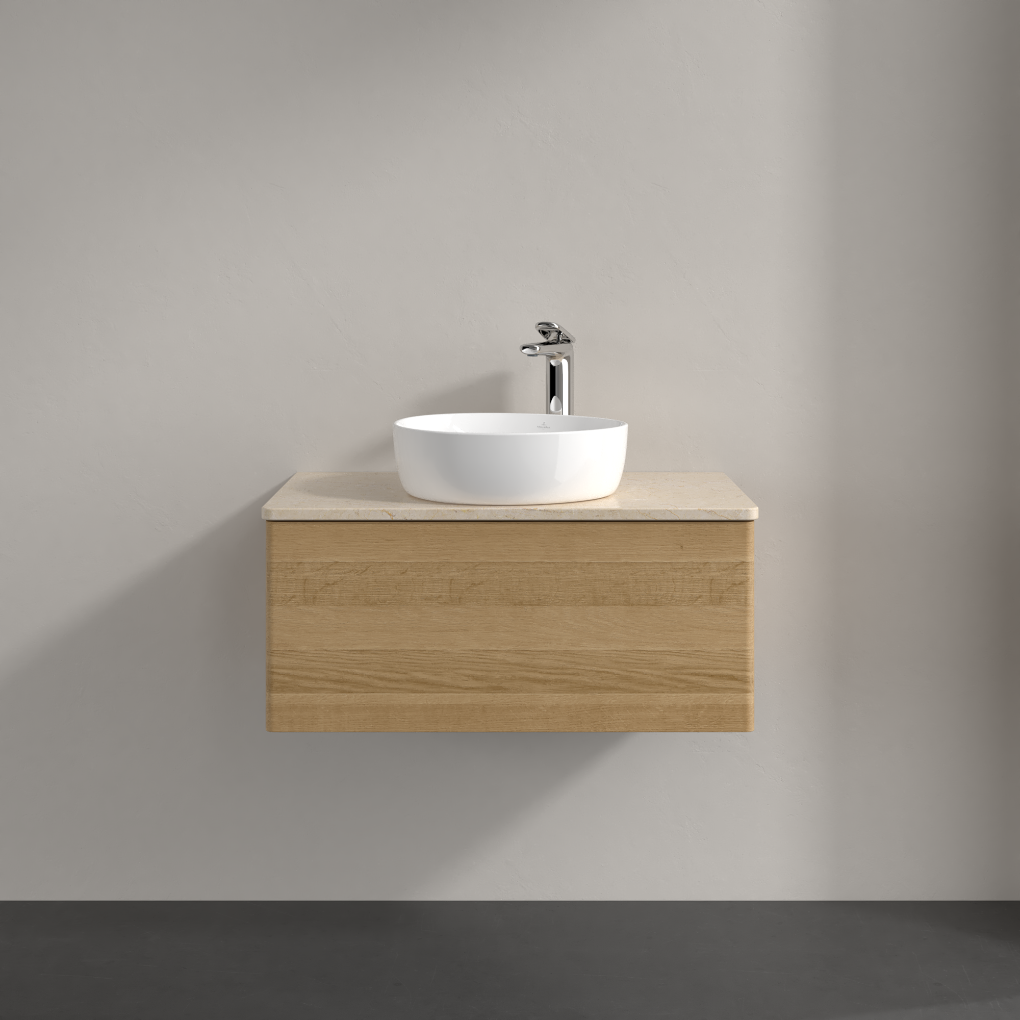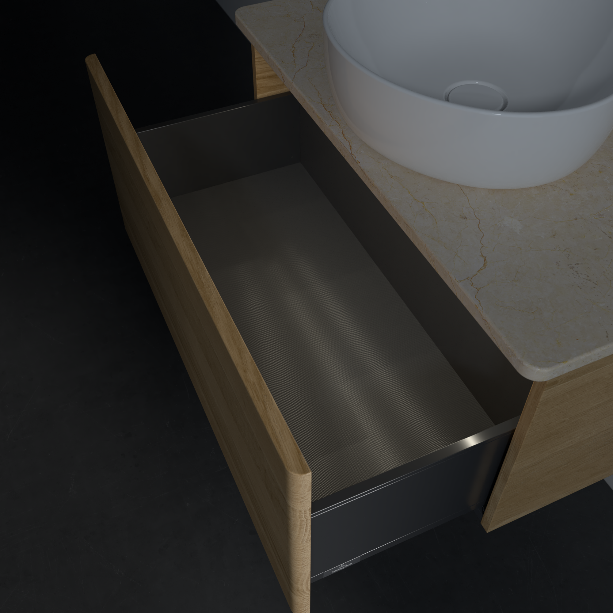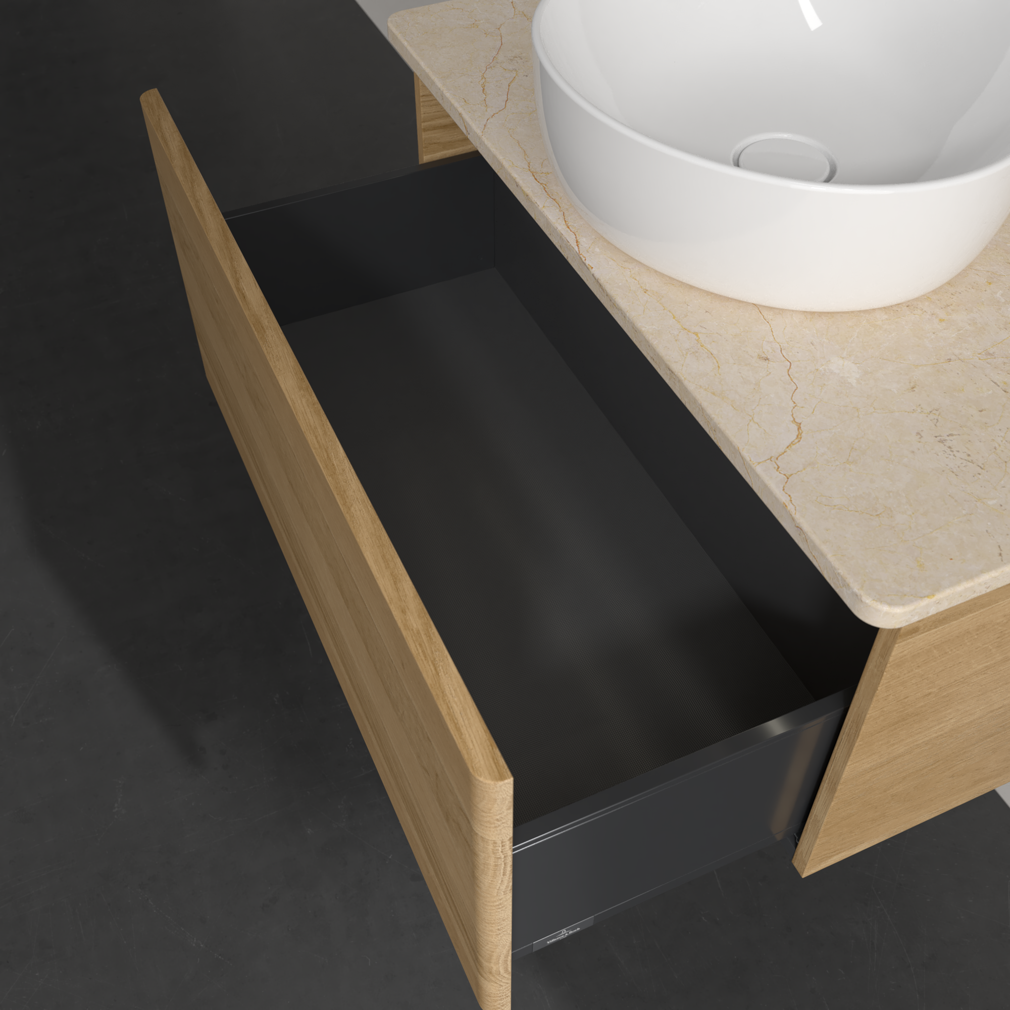 Antao Meuble sous plan, avec éclairage, 1 tiroir sur rails, 800x360x500mm, Façade sans structure, Caisson: Honey Oak, Façade: Honey Oak, Plaque de recouvrement: Botticino