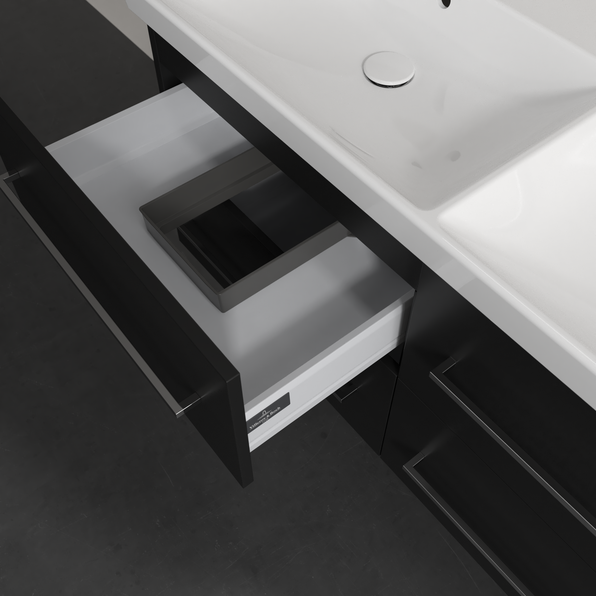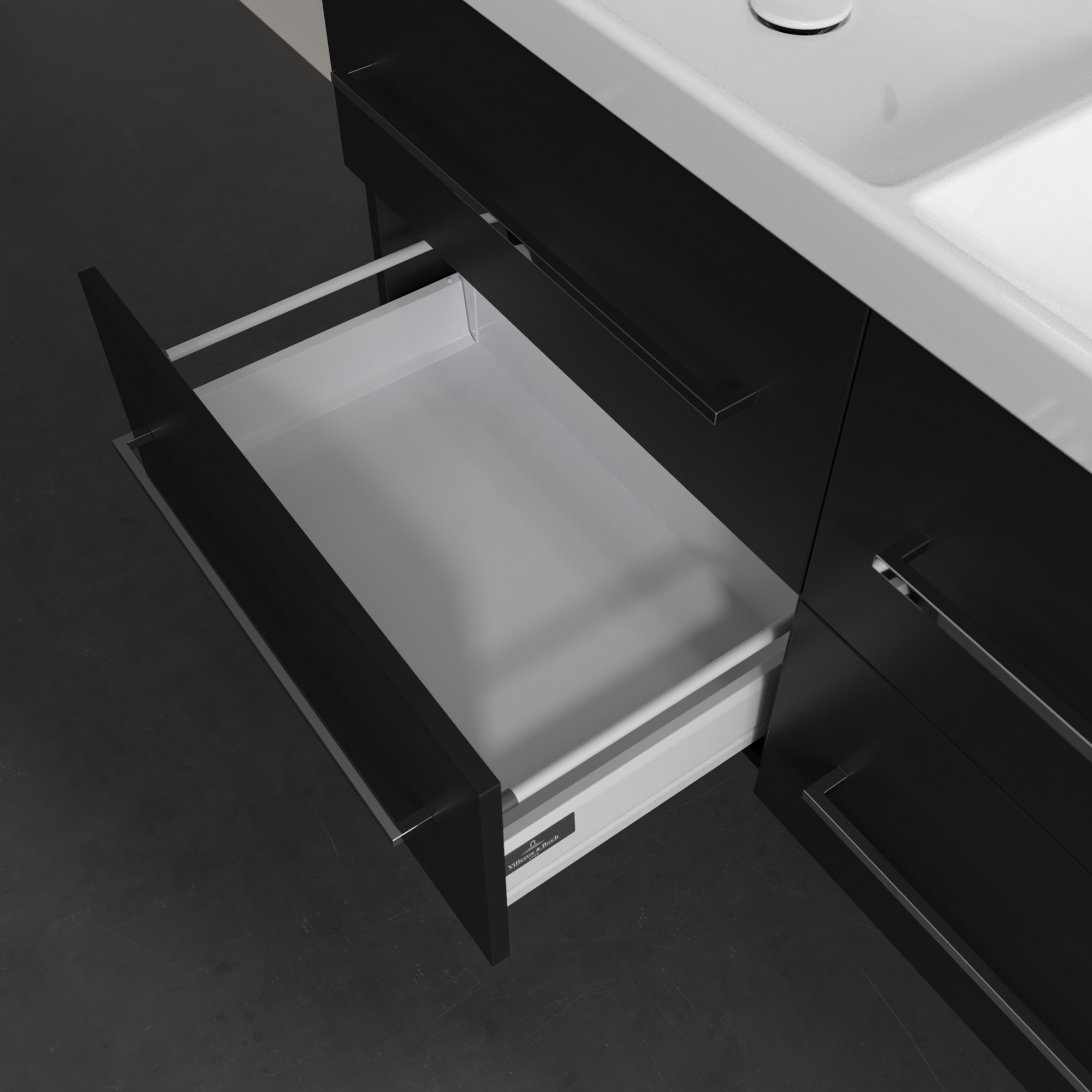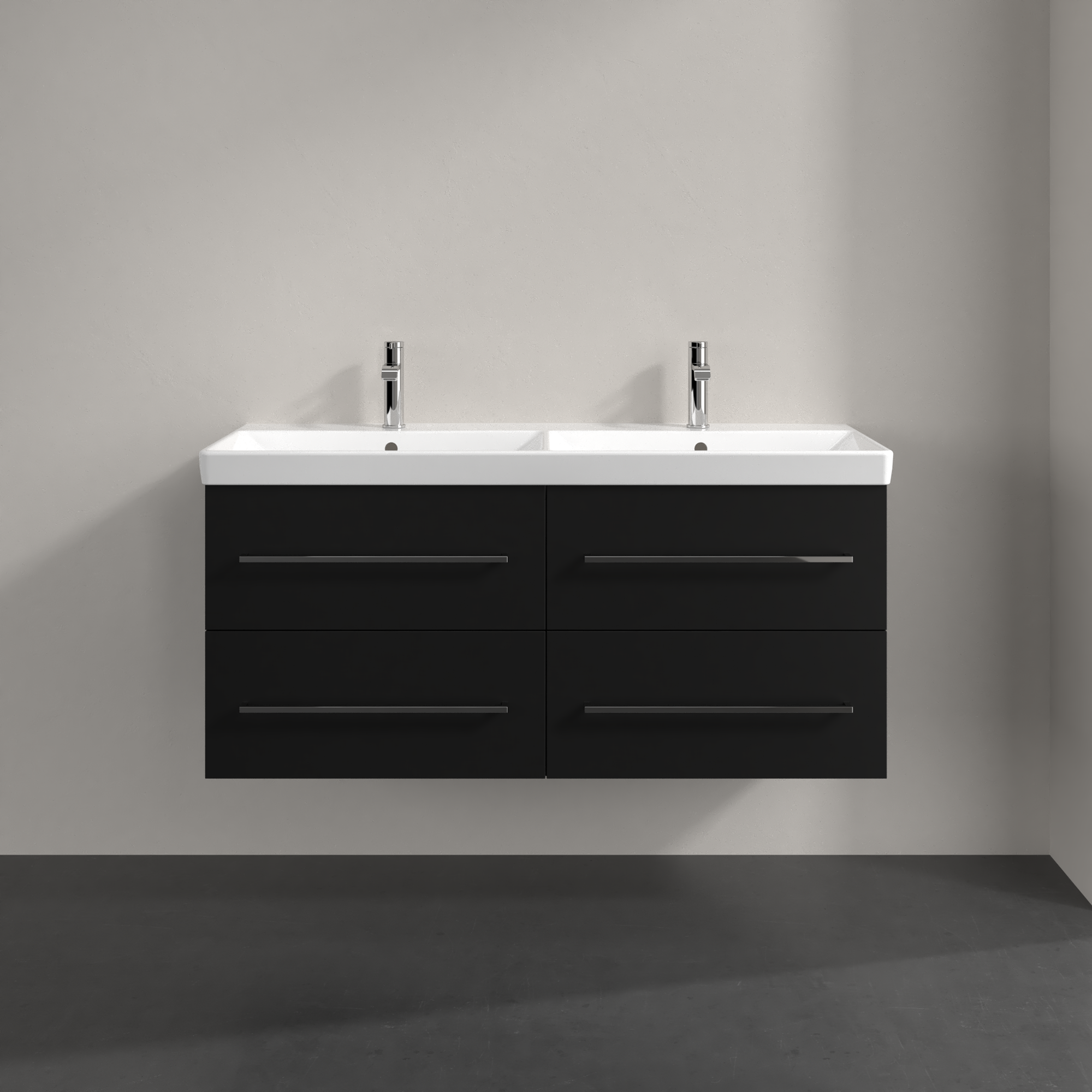Avento Meuble sous plan, 4 tiroirs sur rails, 1180x514x484mm, Caisson: Volcano Black, Façade: Volcano Black
