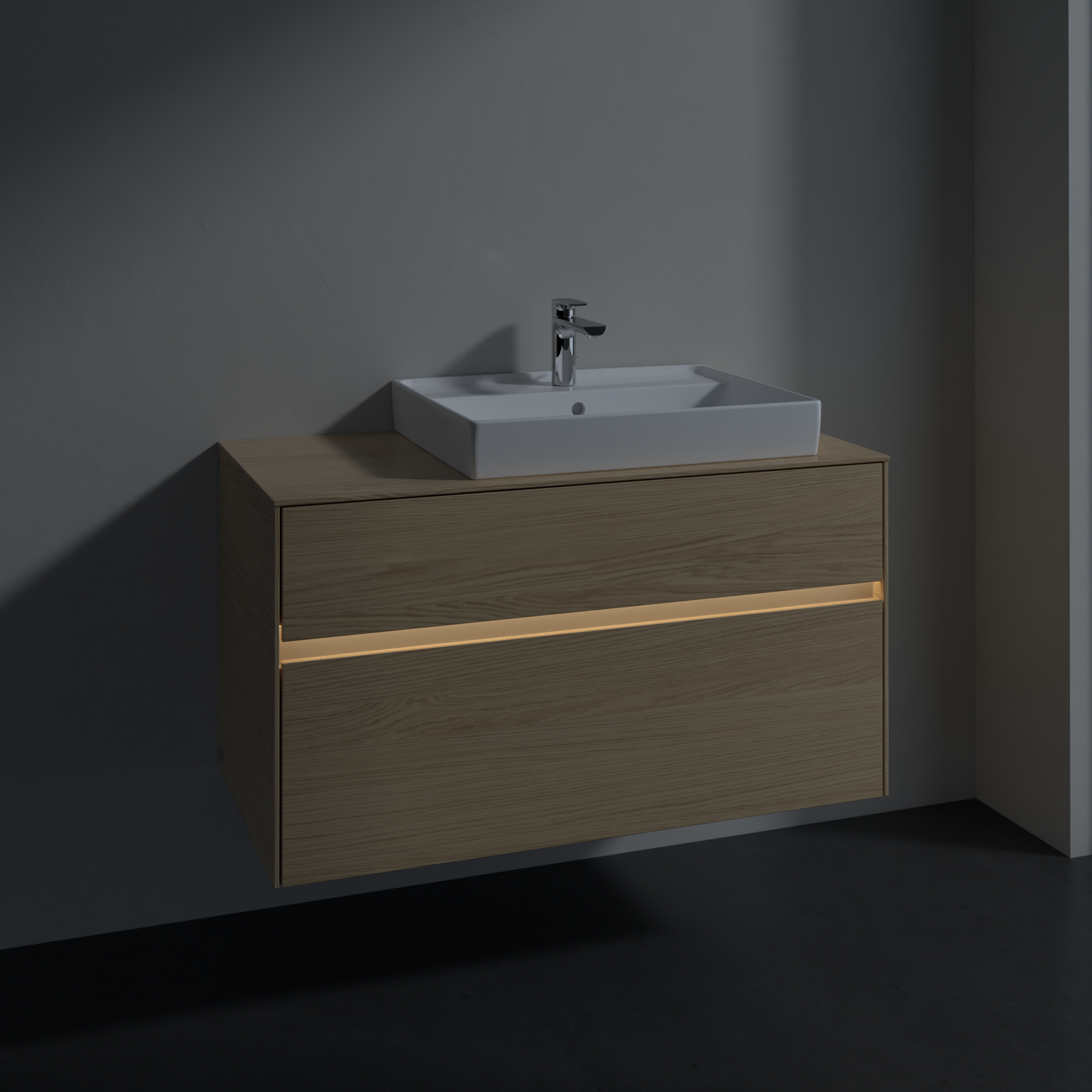 Collaro Meuble sous plan, avec éclairage, 2 tiroirs sur rails, 1000x548x500mm, Caisson: Nordic Oak, Façade: Nordic Oak