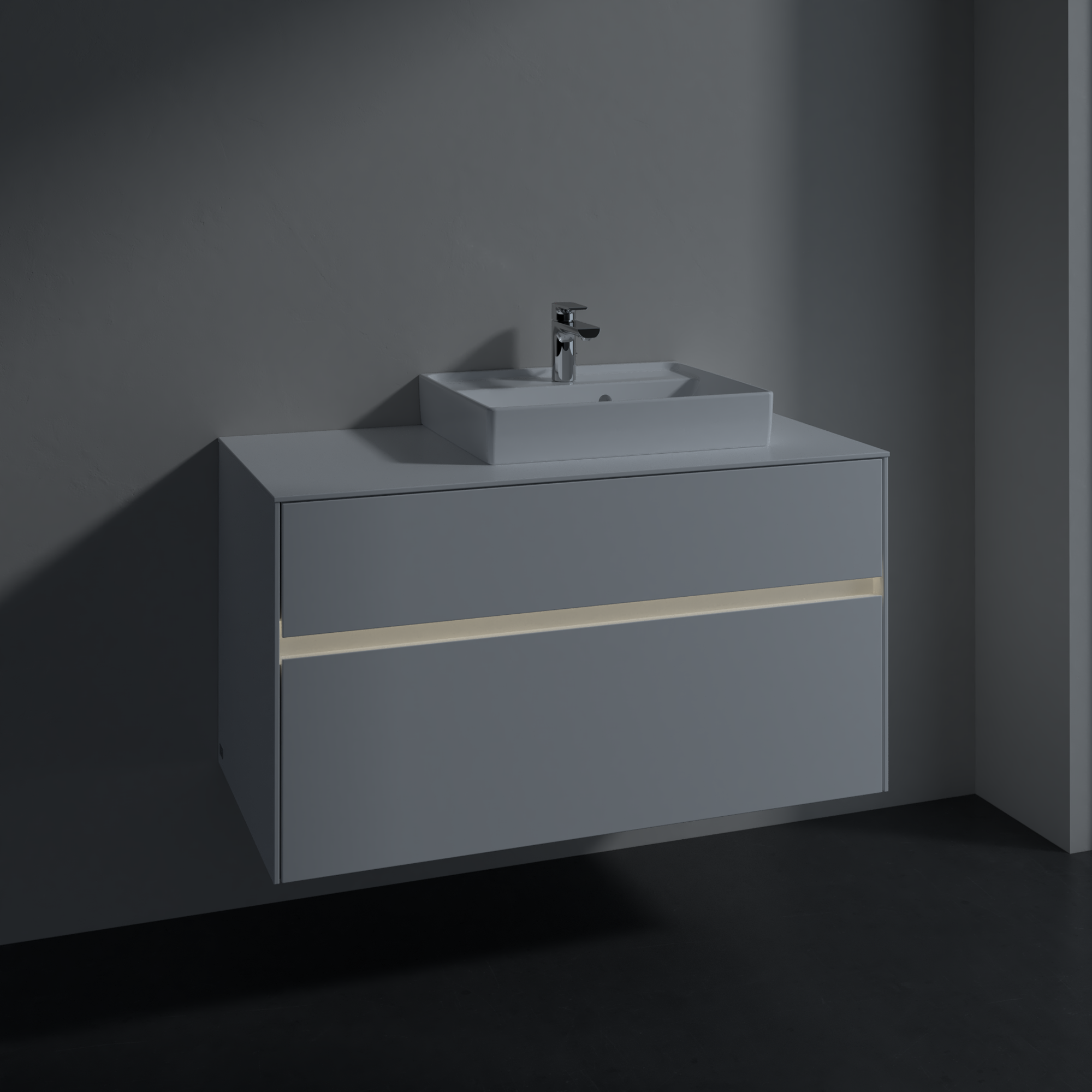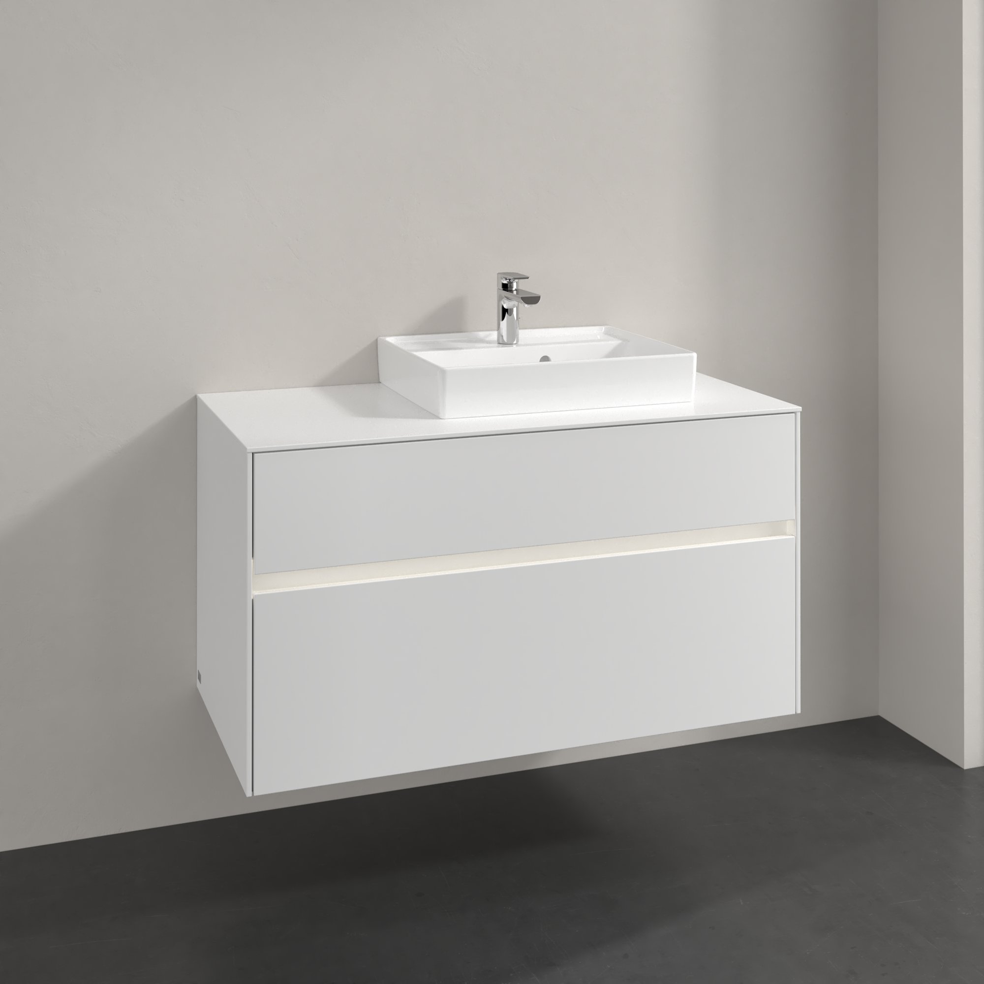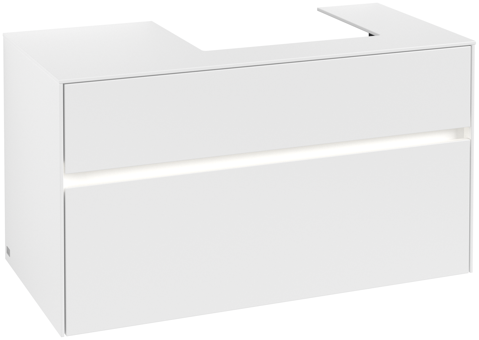 Collaro Meuble sous plan, avec éclairage, 2 tiroirs sur rails, 1000x548x500mm, Caisson: White Matt, Façade: White Matt