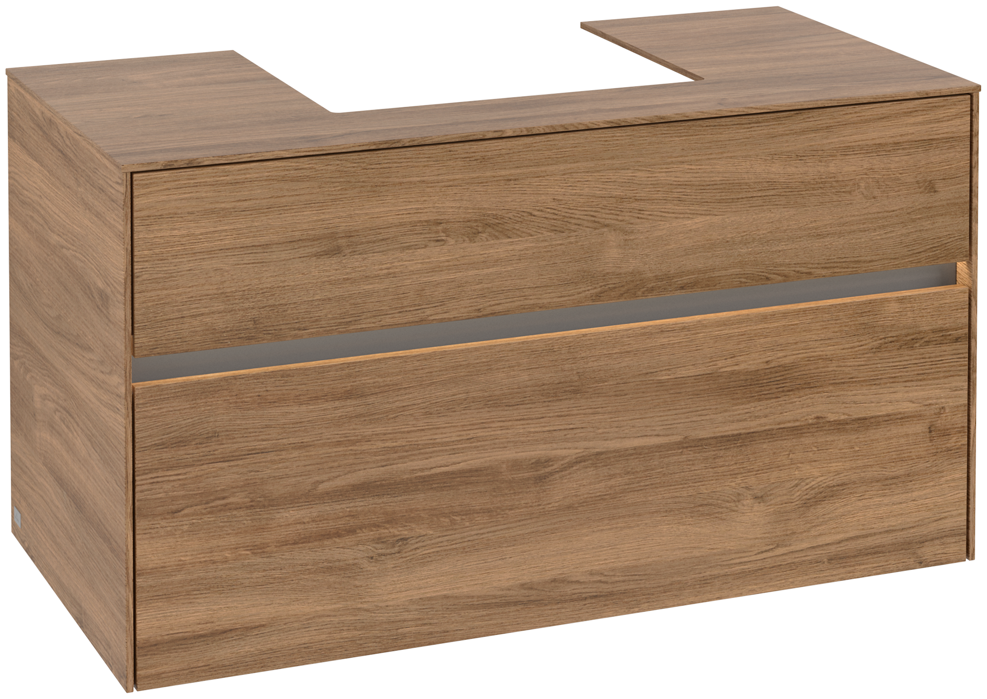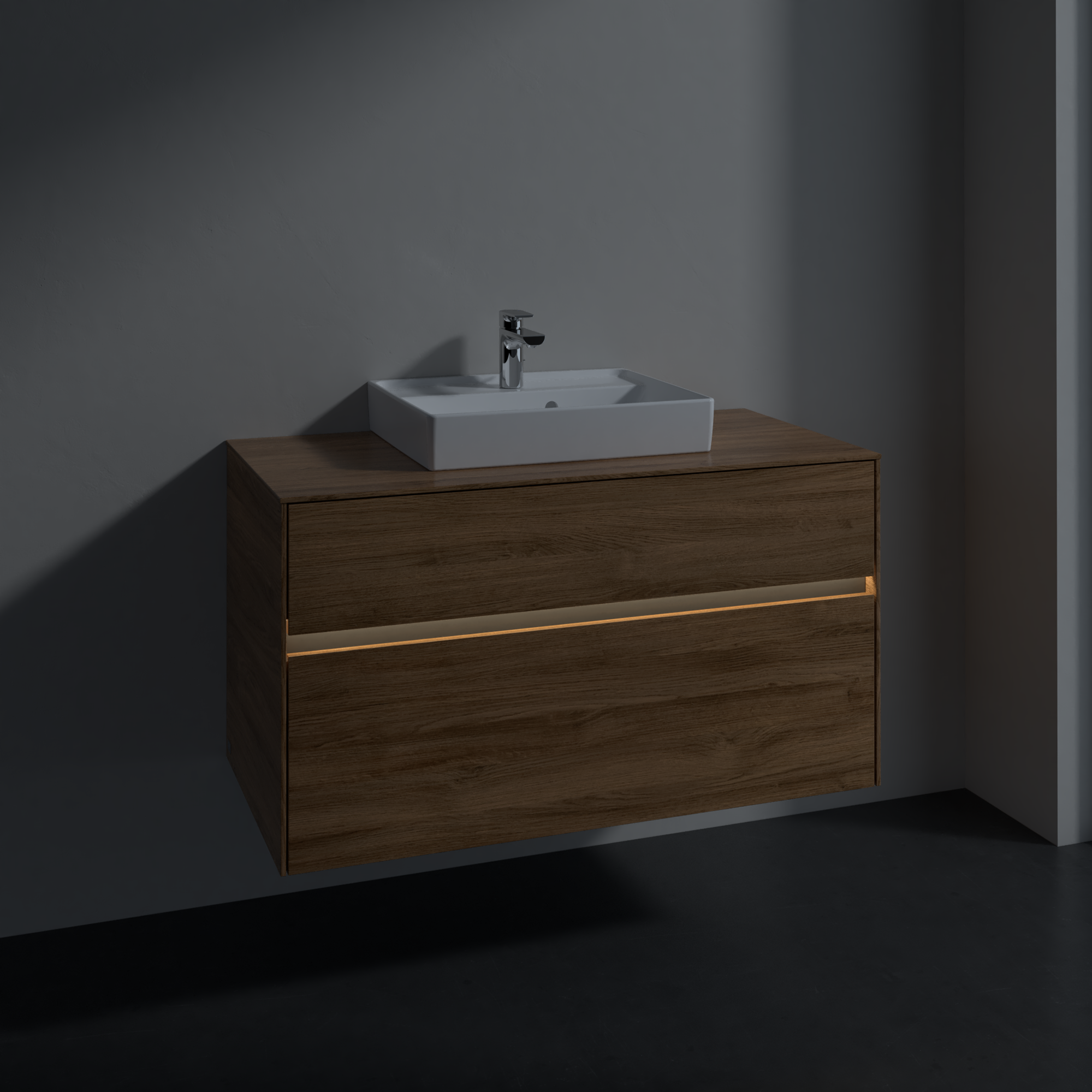 Collaro Meuble sous plan, avec éclairage, 2 tiroirs sur rails, 1000x548x500mm, Caisson: Oak Kansas, Façade: Oak Kansas