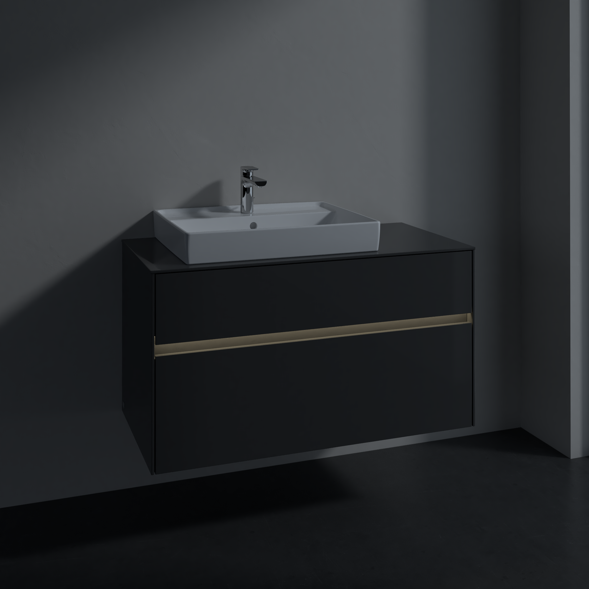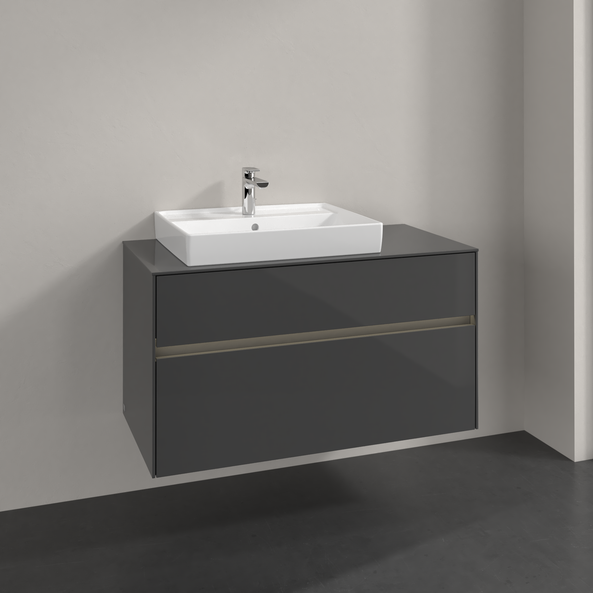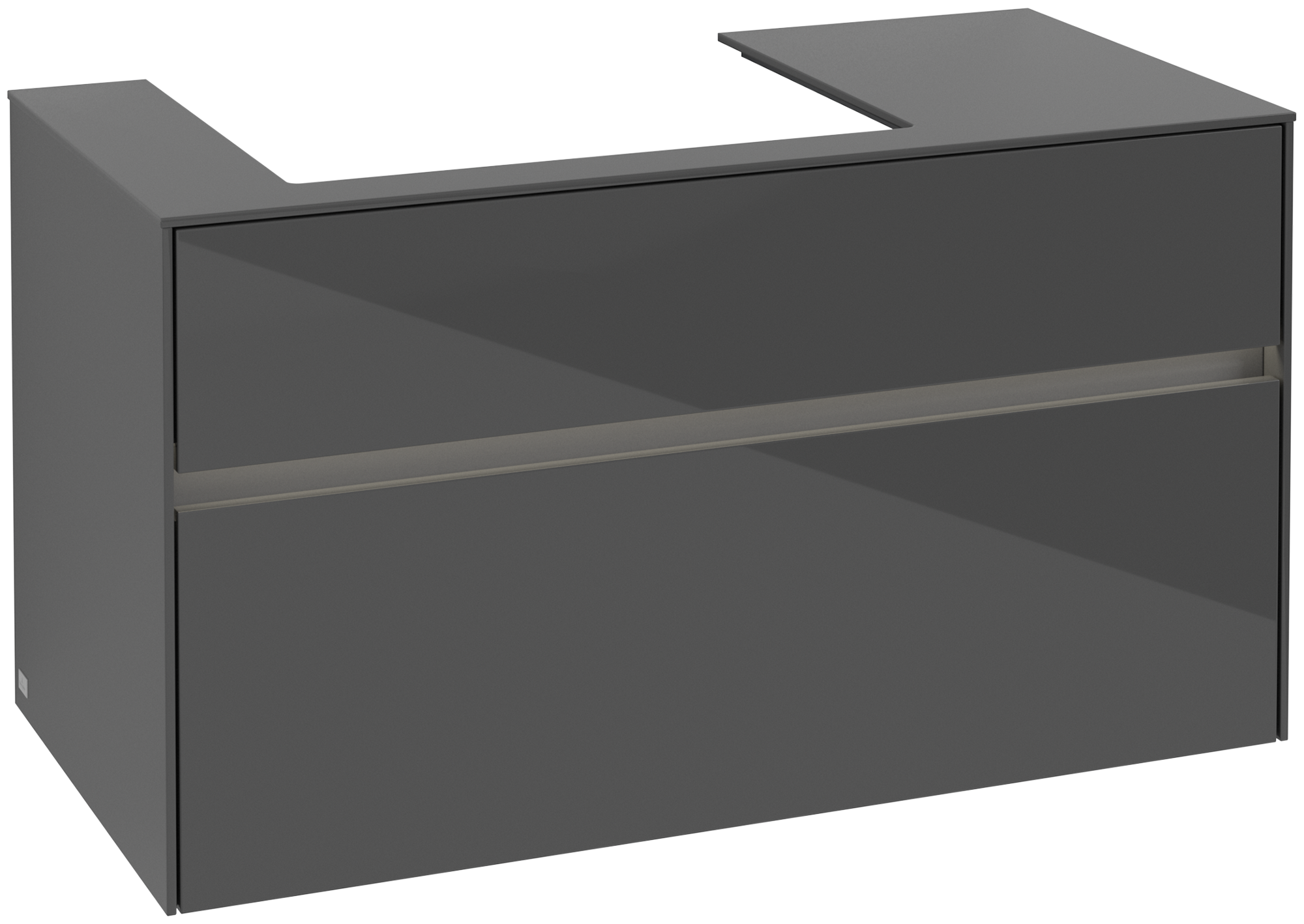 Collaro Meuble sous plan, avec éclairage, 2 tiroirs sur rails, 1000x548x500mm, Caisson: Glossy Grey, Façade: Glossy Grey