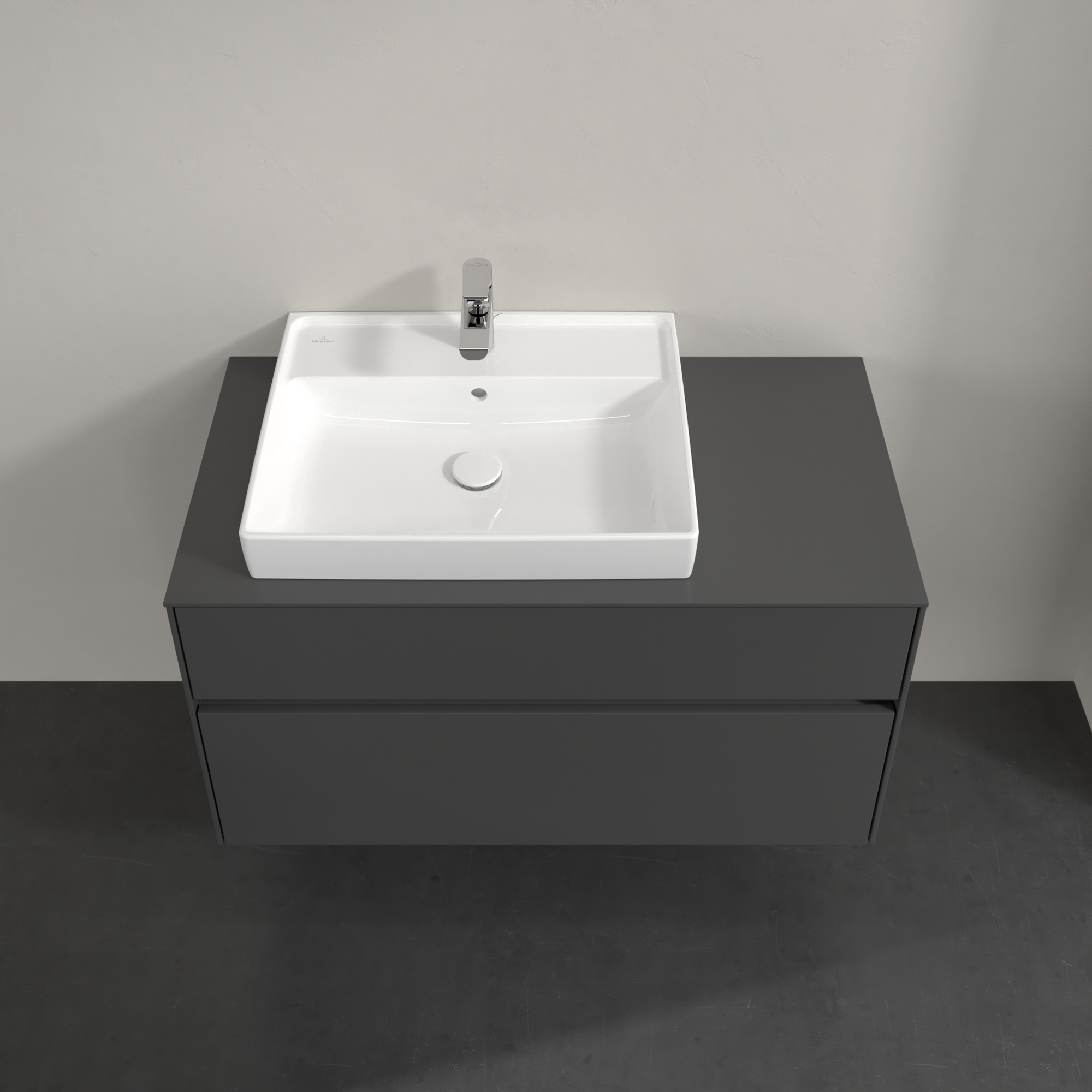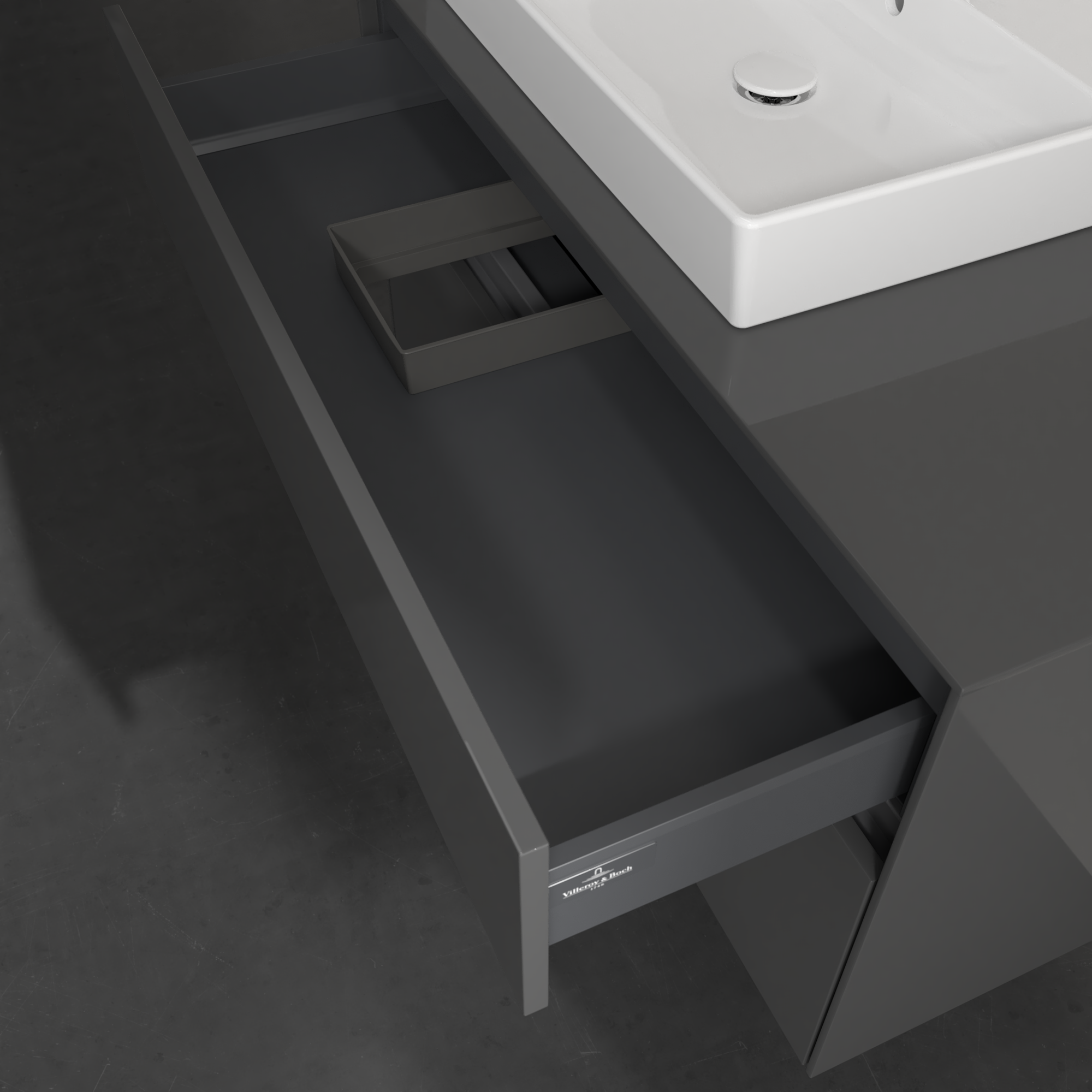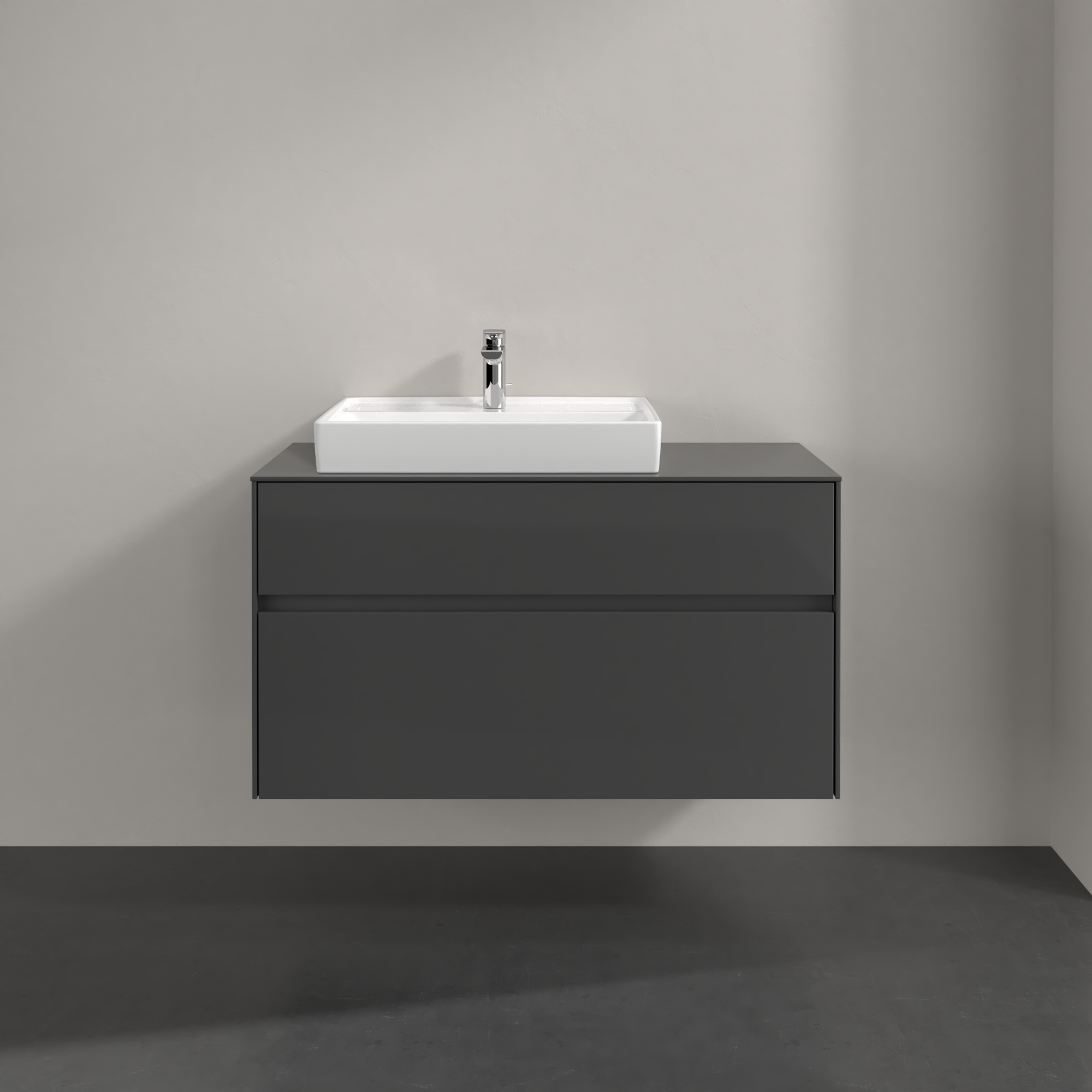Collaro Meuble sous plan, avec éclairage, 2 tiroirs sur rails, 1000x548x500mm, Caisson: Glossy Grey, Façade: Glossy Grey