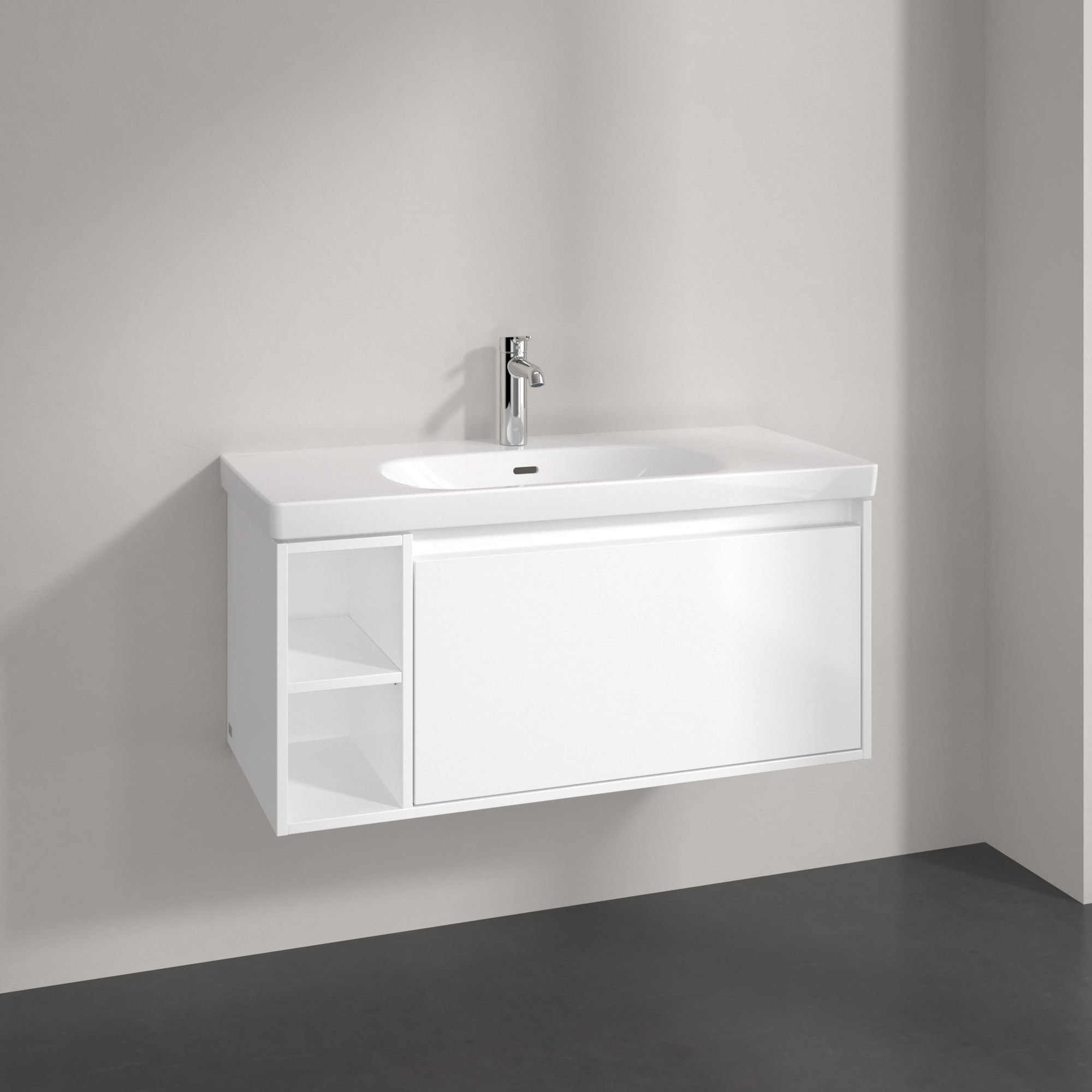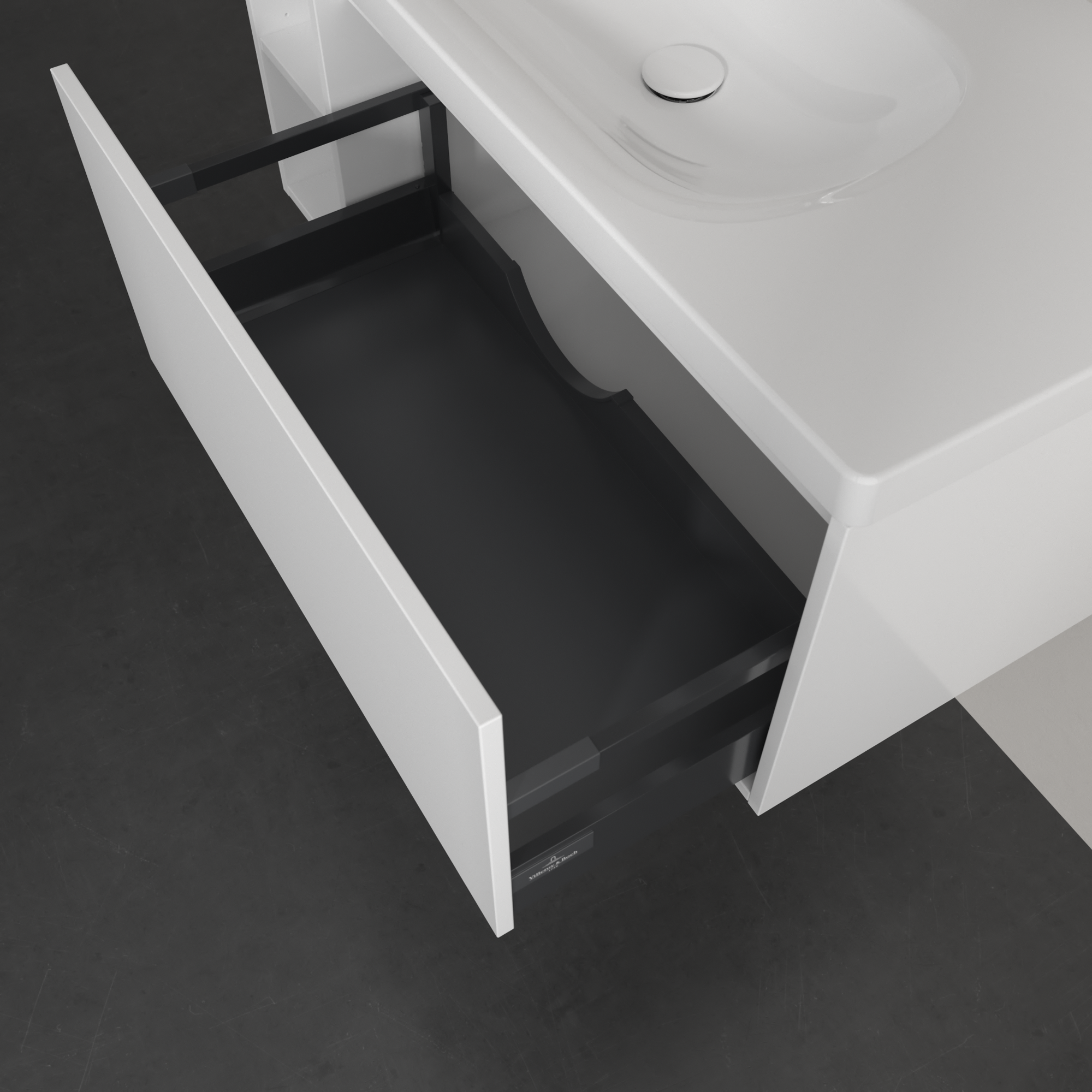 Skyla Meuble sous plan, 1 tiroir sur rails, 2 tiroirs sur rails, 972x436x439mm, Caisson: Brilliant White, Façade: Brilliant White