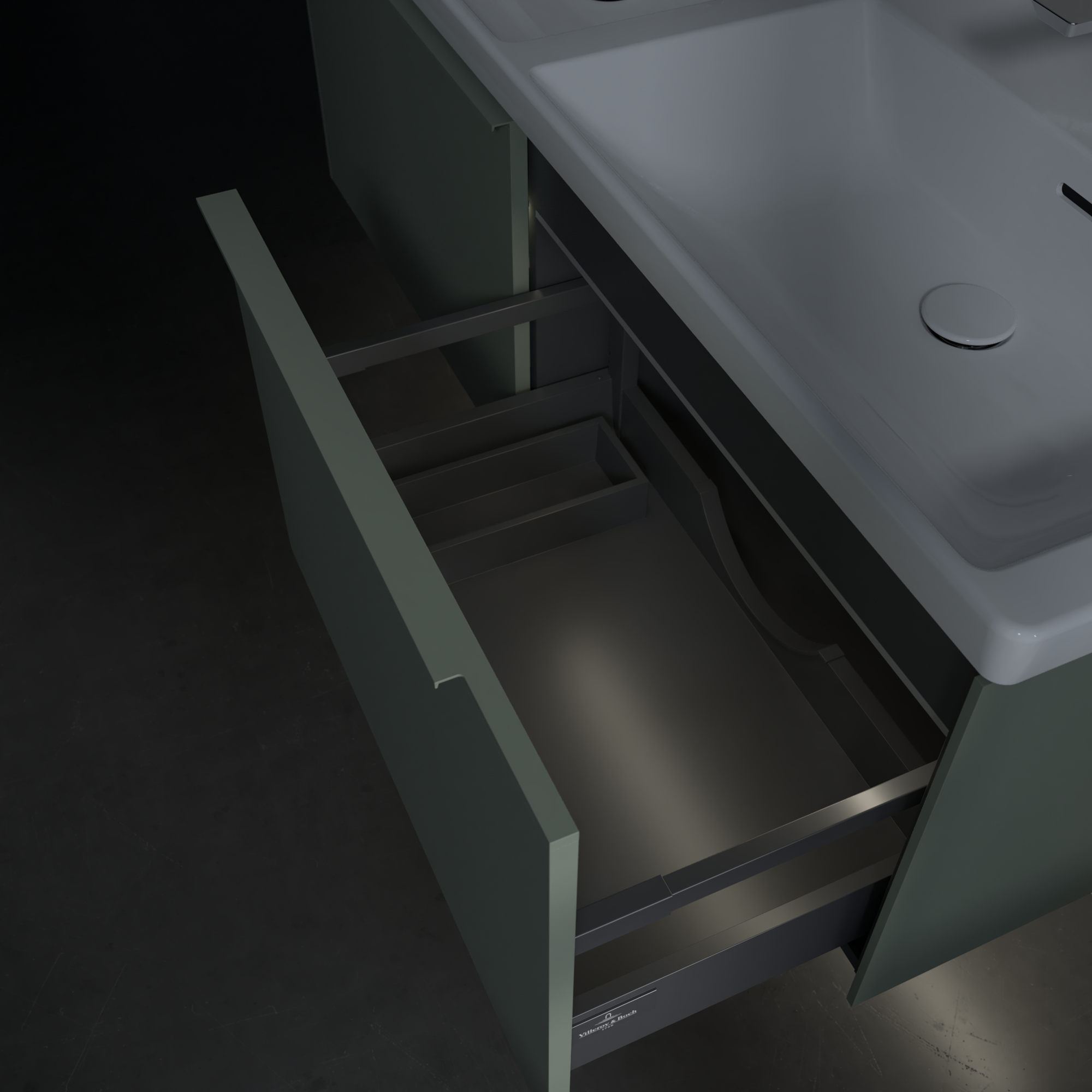 Subway 3.0 Meuble sous plan, avec éclairage, 2 tiroirs sur rails, 1272x429x462mm, Caisson: Soft Green, Façade: Soft Green