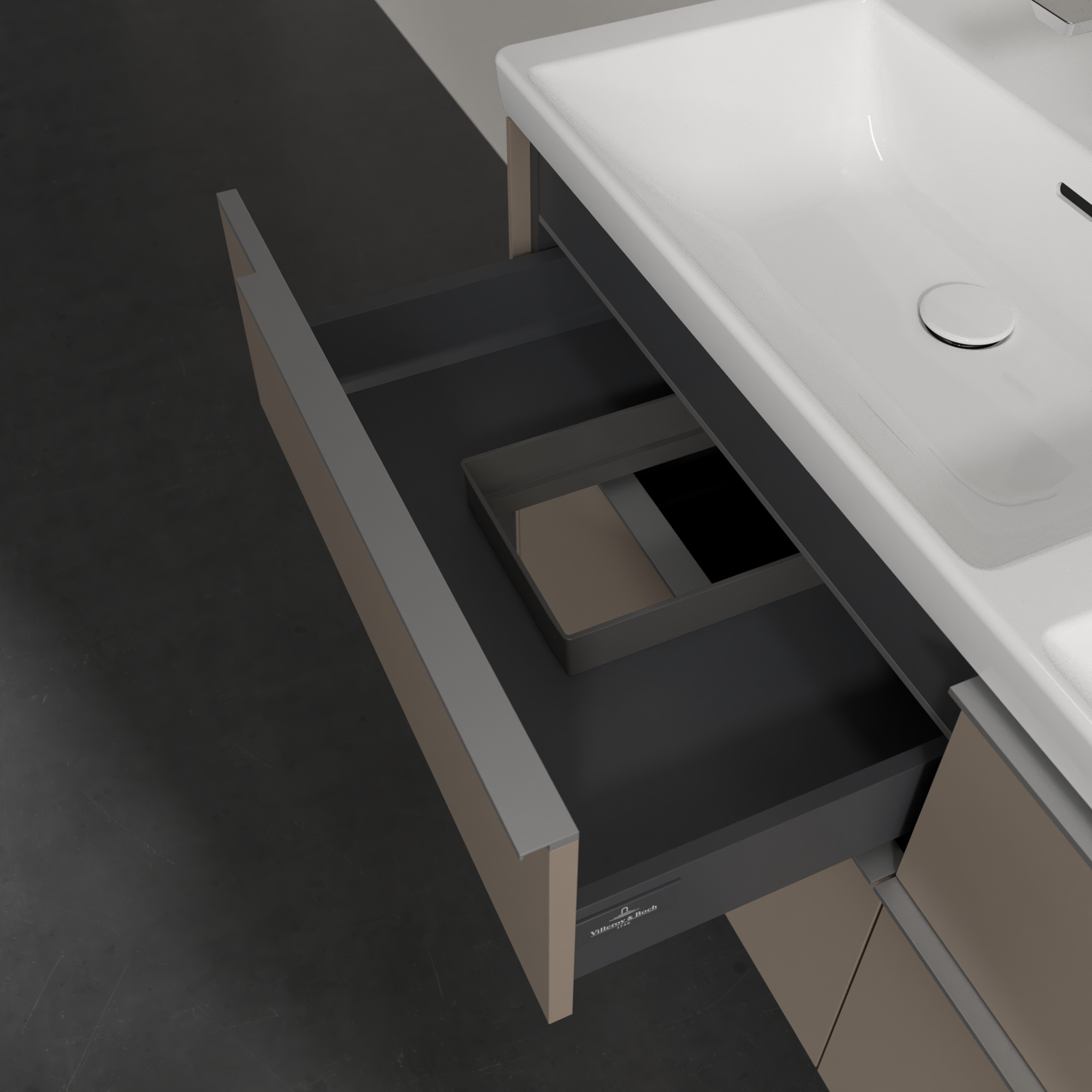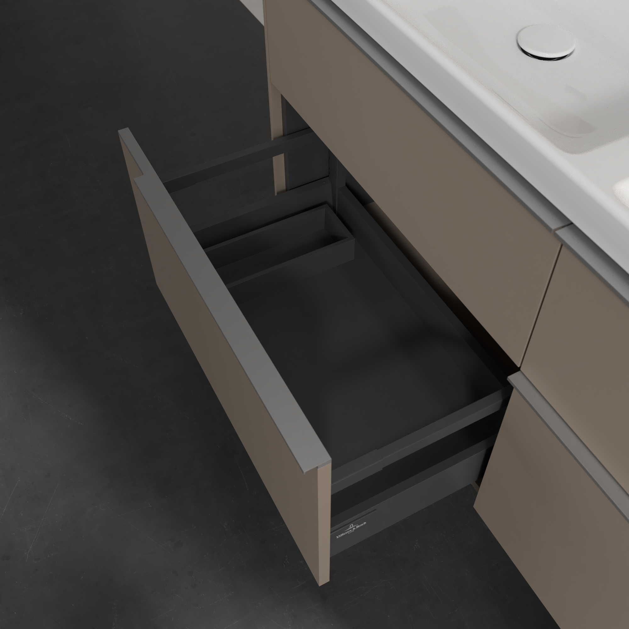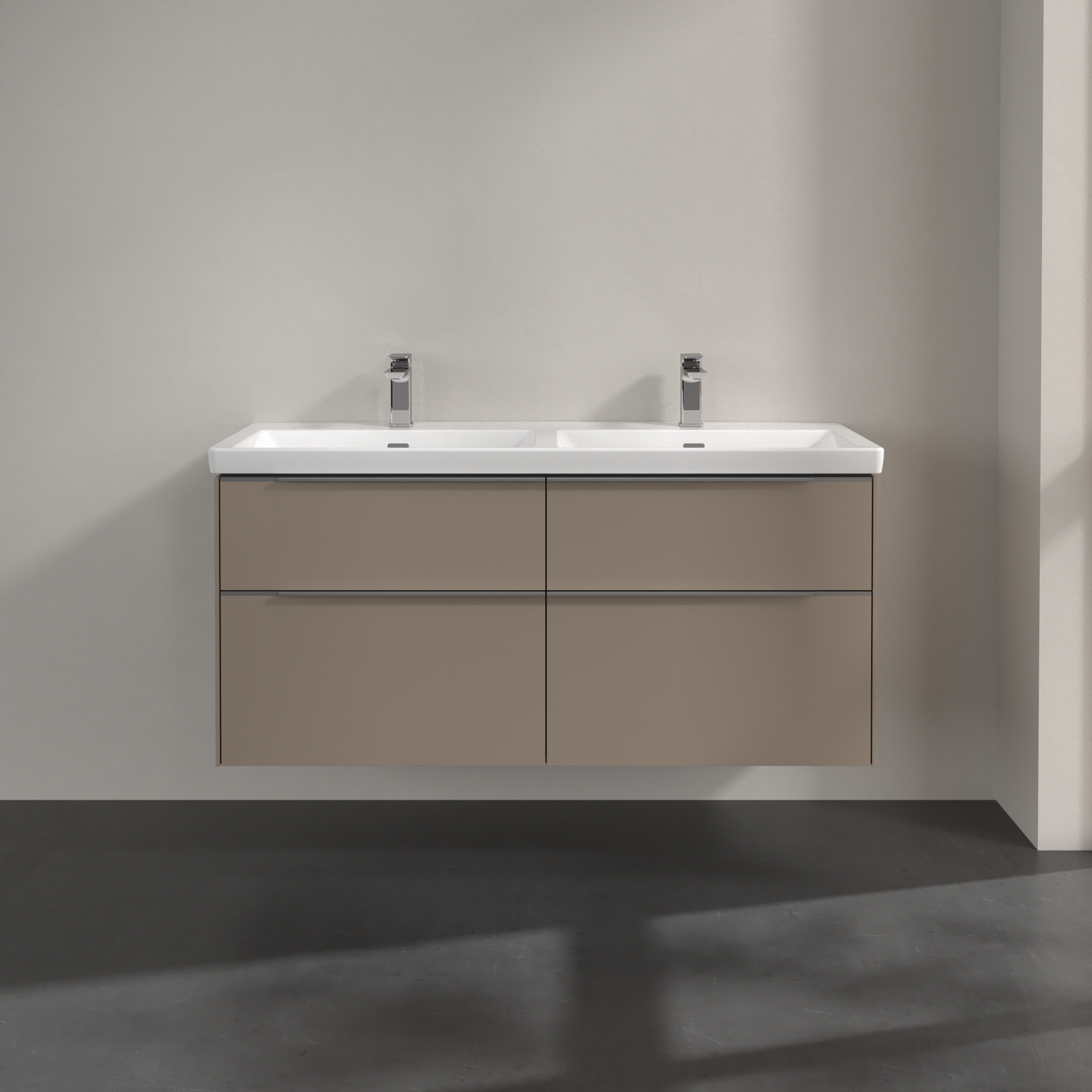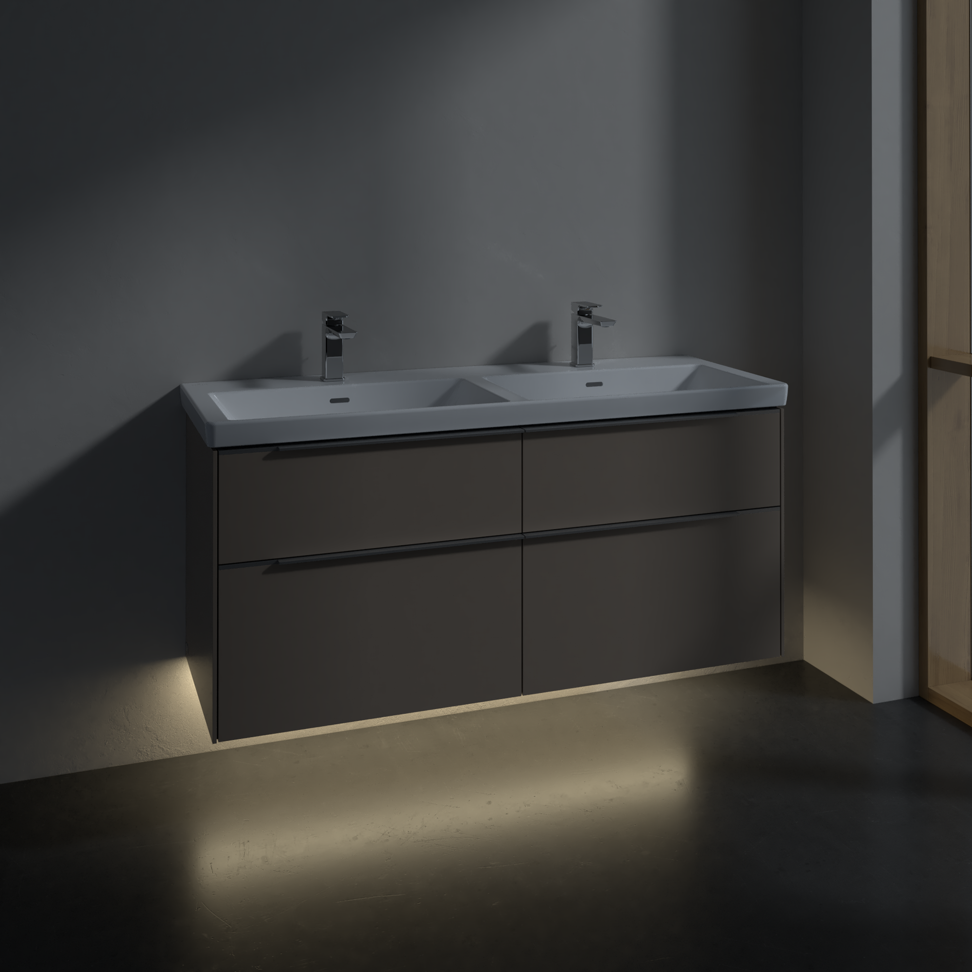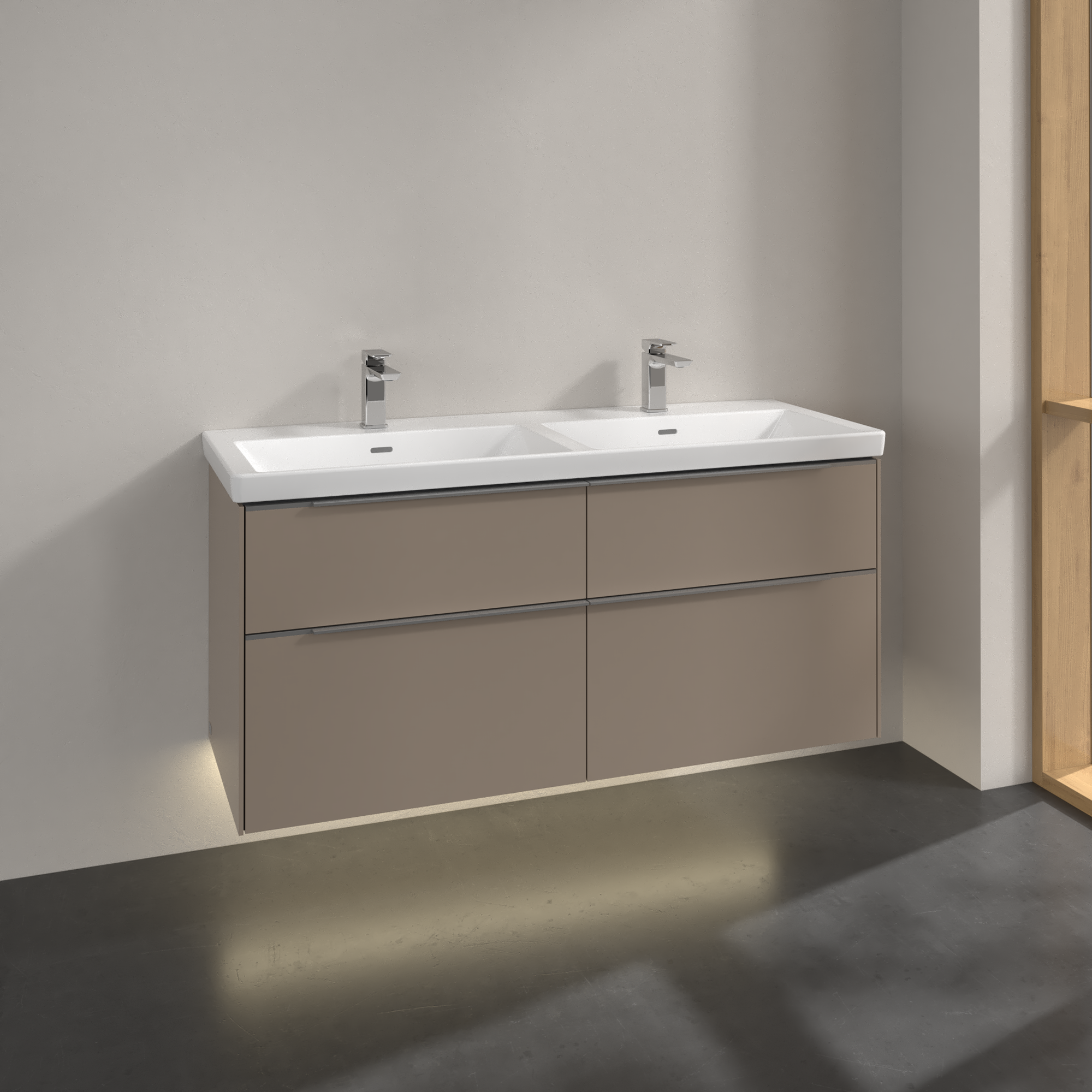 Subway 3.0 Meuble sous plan, avec éclairage, 4 tiroirs sur rails, 1272x576x462mm, Caisson: Taupe, Façade: Taupe