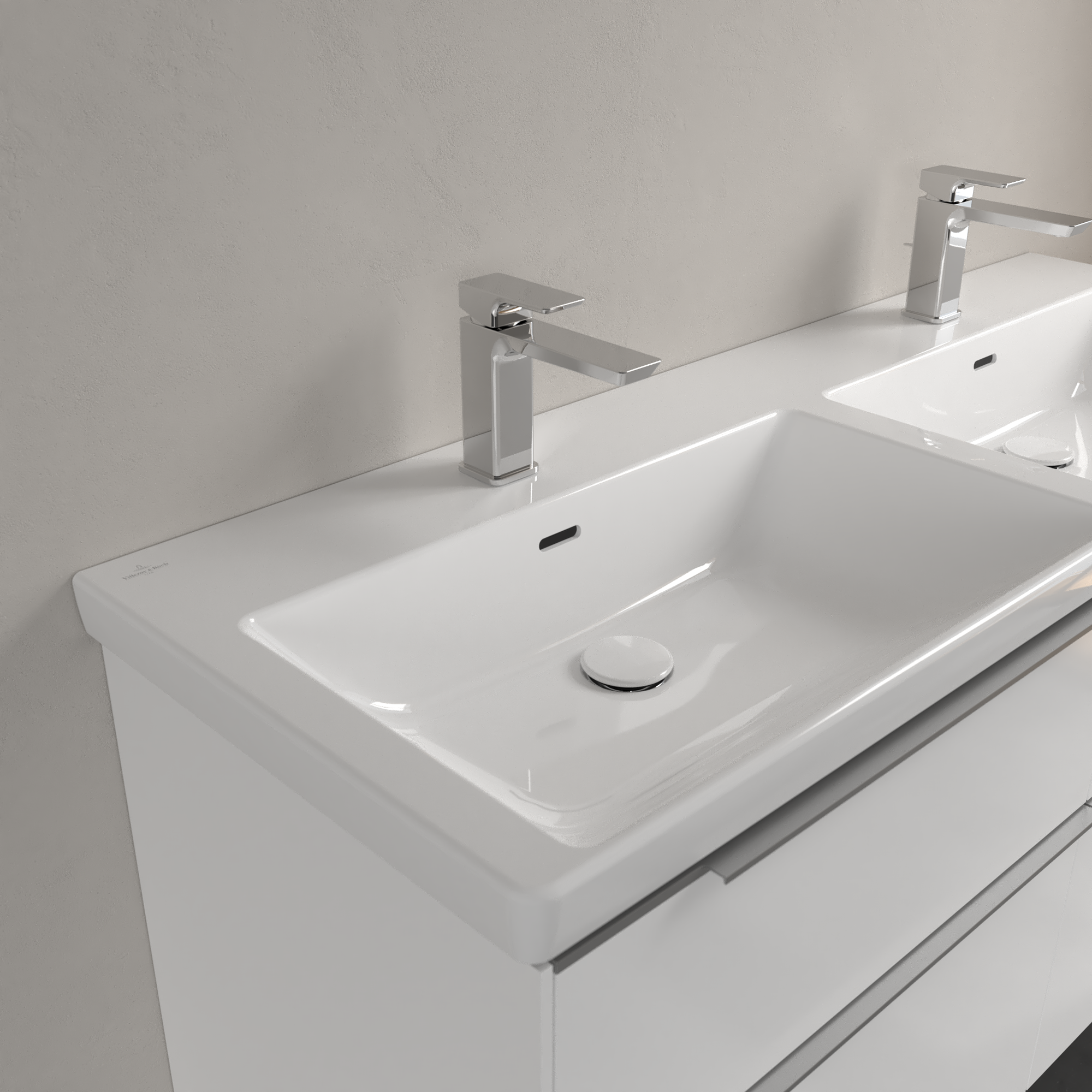 Subway 3.0 Plan de toilette double, 1300x475x165mm, avec trop-plein, Blanc