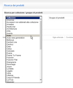 1SELEZIONE PRODOTTO Aprite la ricerca prodotto e selezionate una collezione o un gruppo di prodotti.