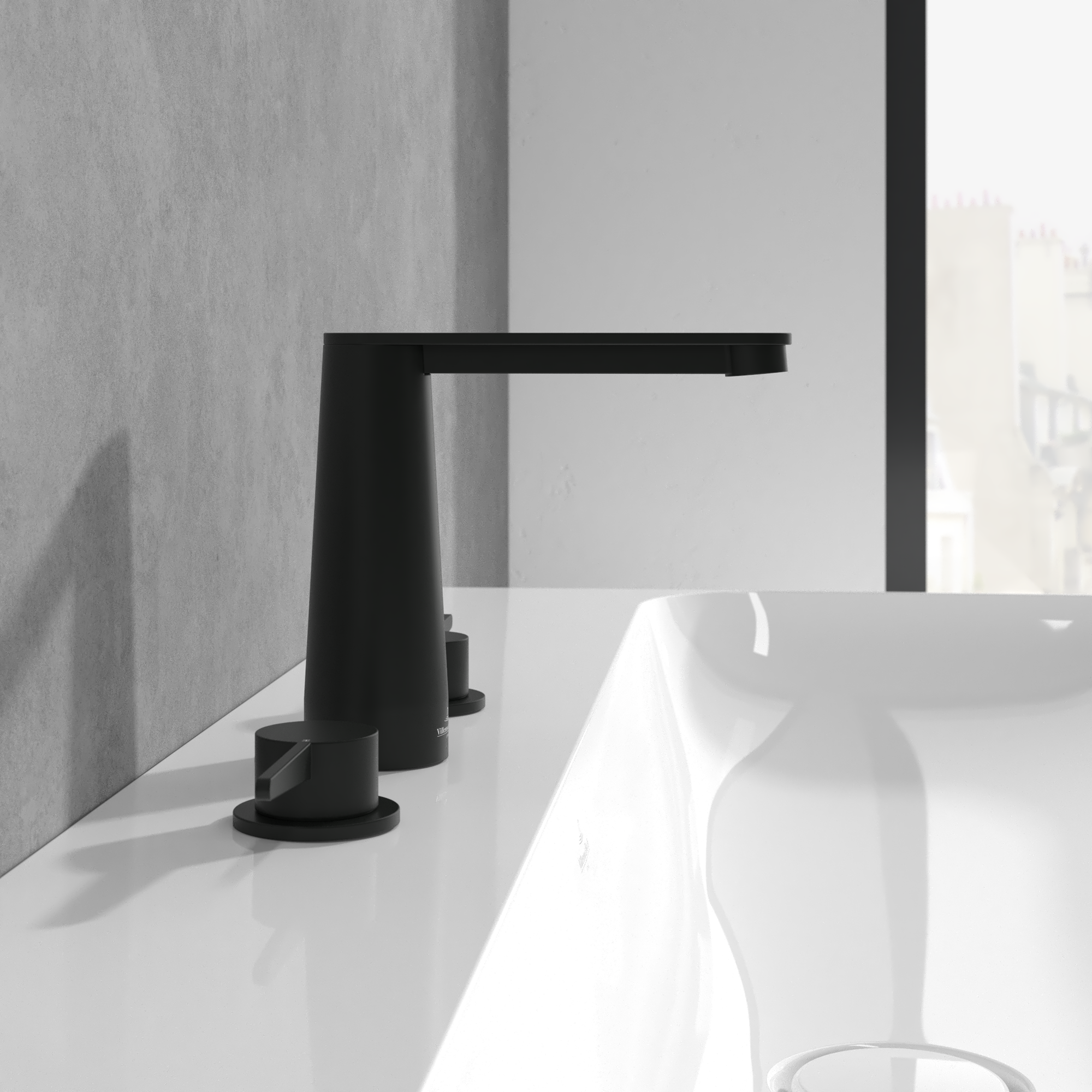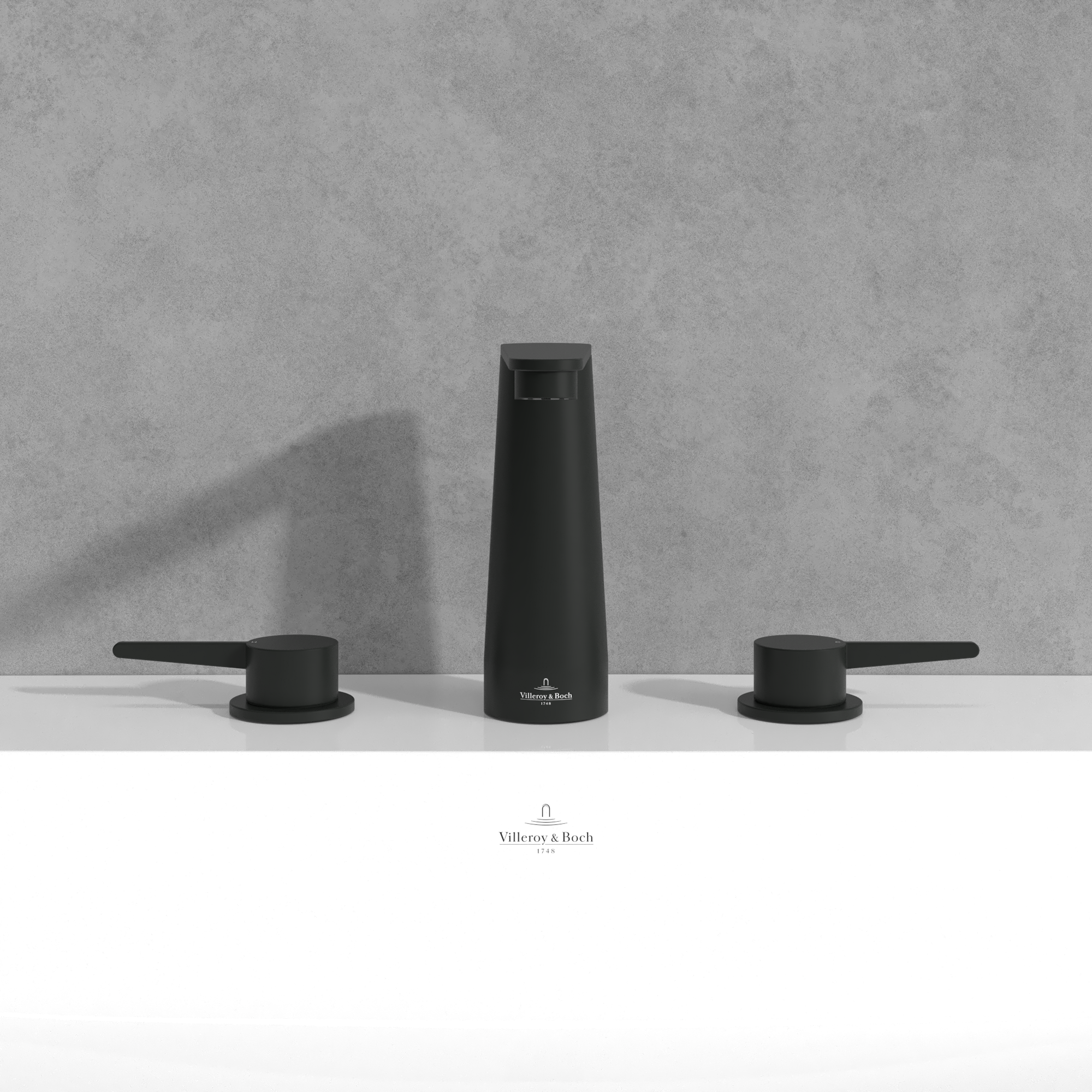 Conum Batteria tre fori per lavabo, Senza piletta di scarico a saltarello, Matt Black