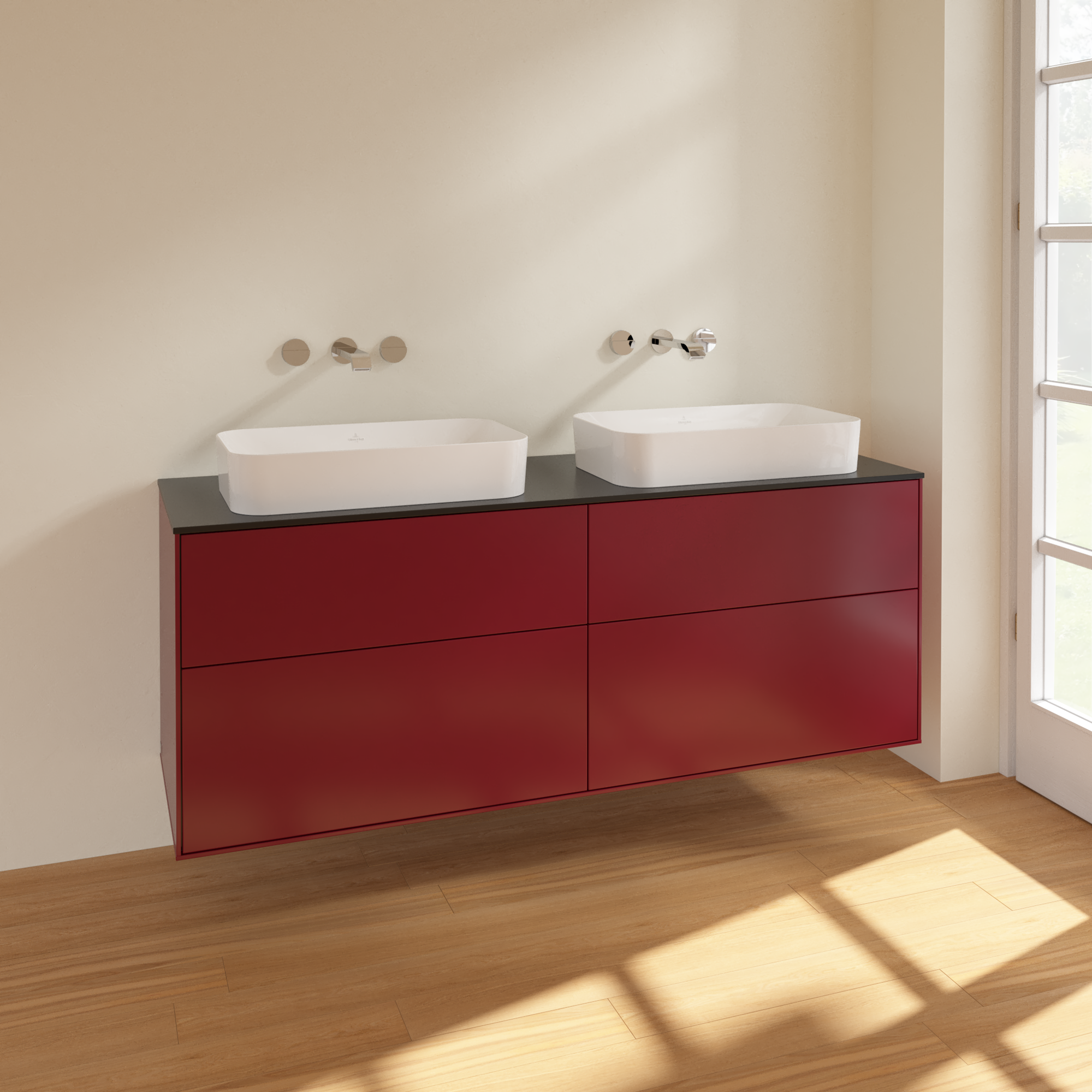 Finion Mobile sottolavabo, 4 vani estraibili, 1600x603x501mm, Corpo: Peony Matt Lacquer, Fronte: Peony Matt Lacquer, Piastra di copertura: Glass Black Matt